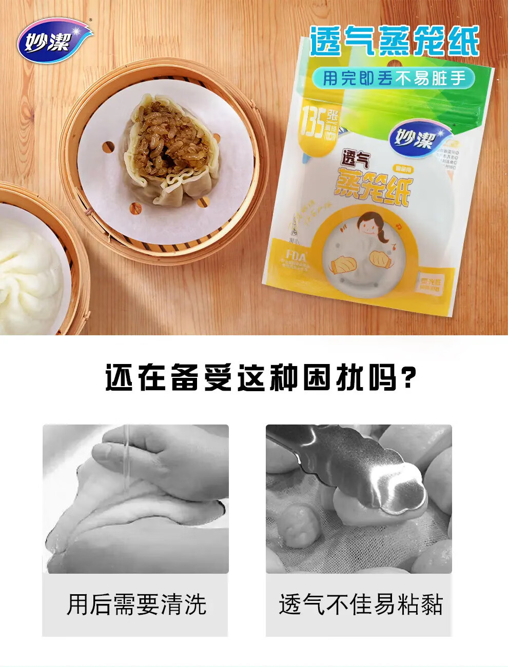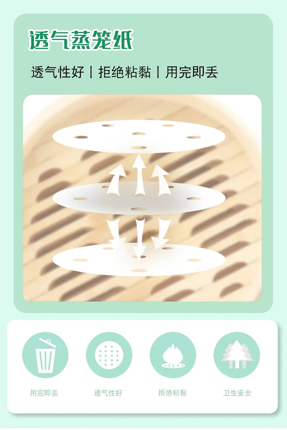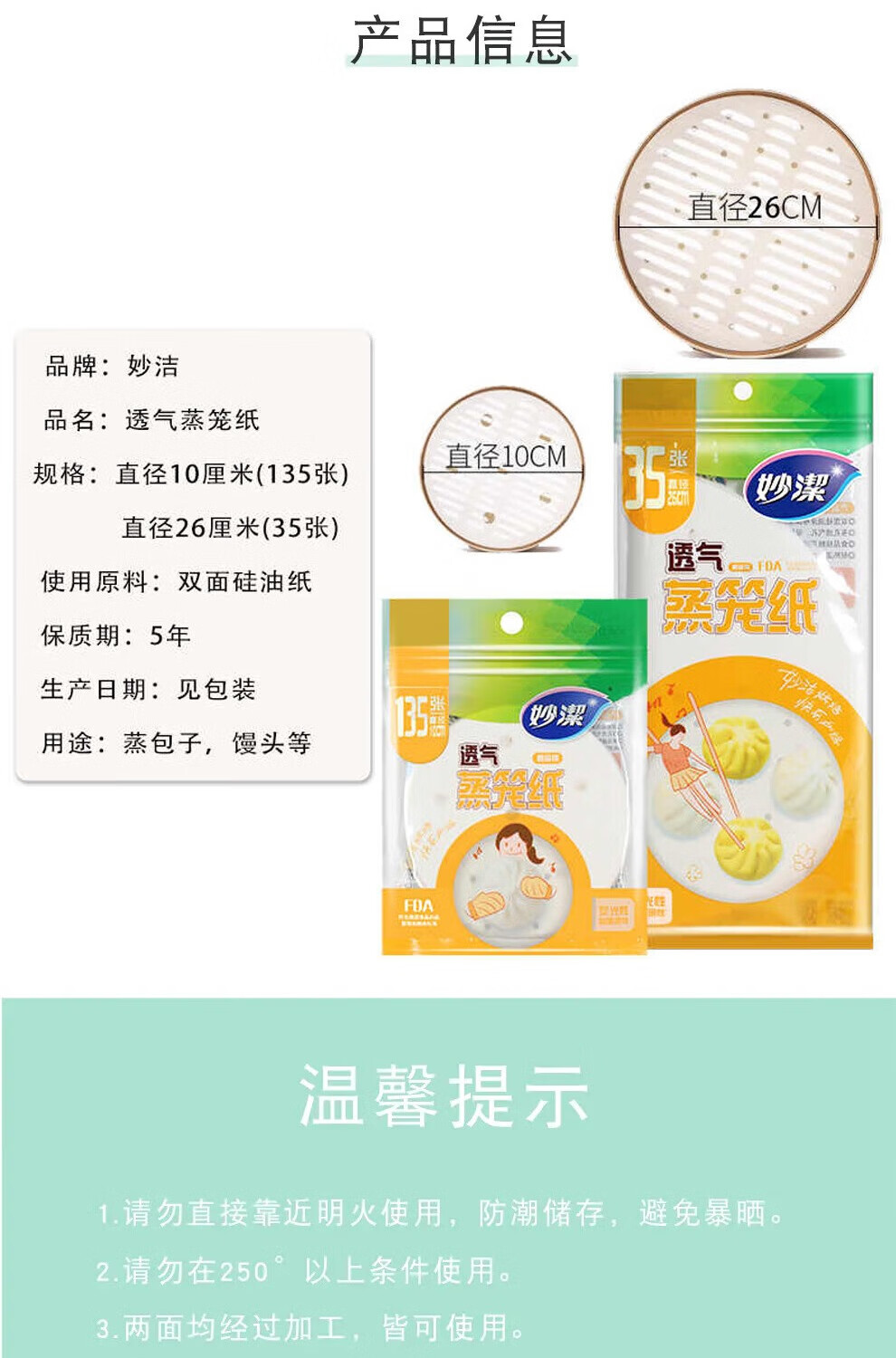 妙洁蒸笼纸食品专用一次性蒸纸圆形家用包子馒头烘焙纸小笼包蒸馒头 小号5包675张(直径10cm)