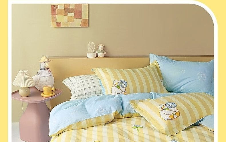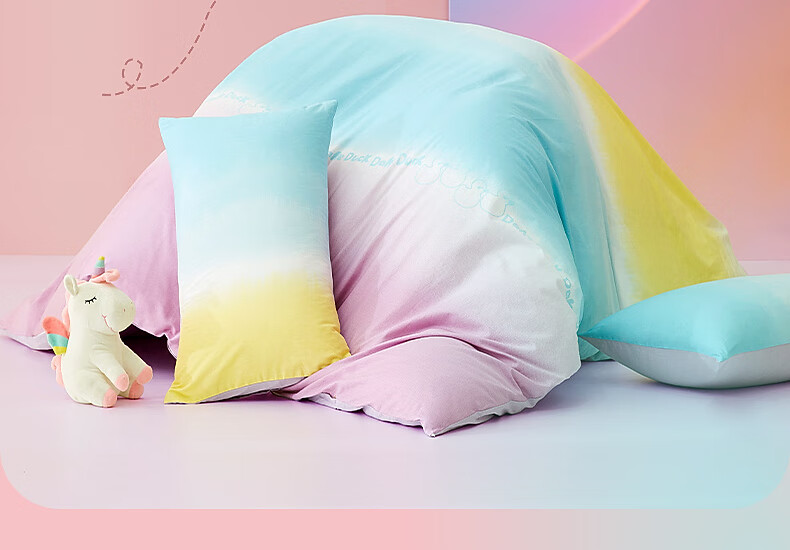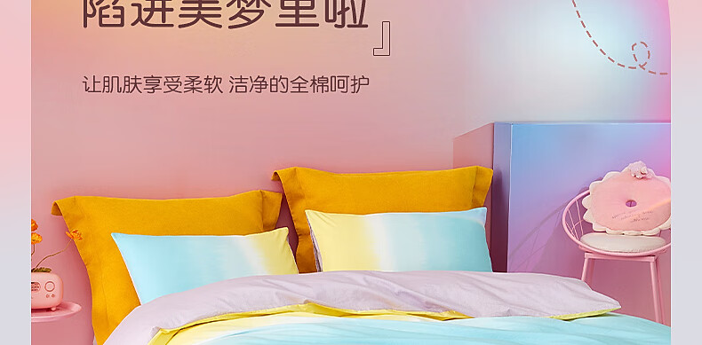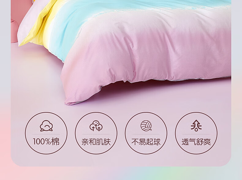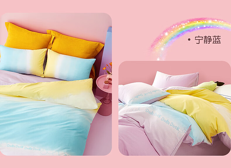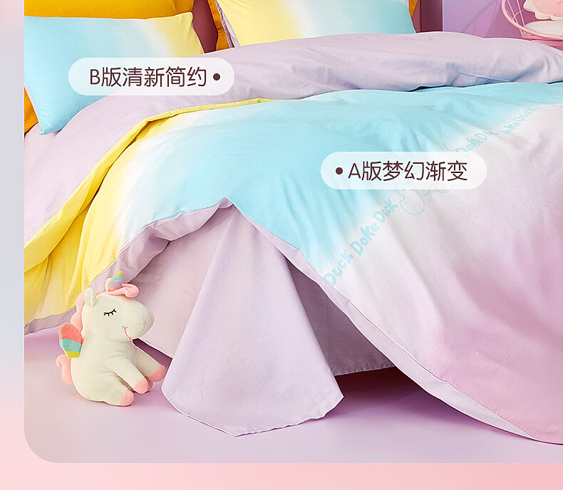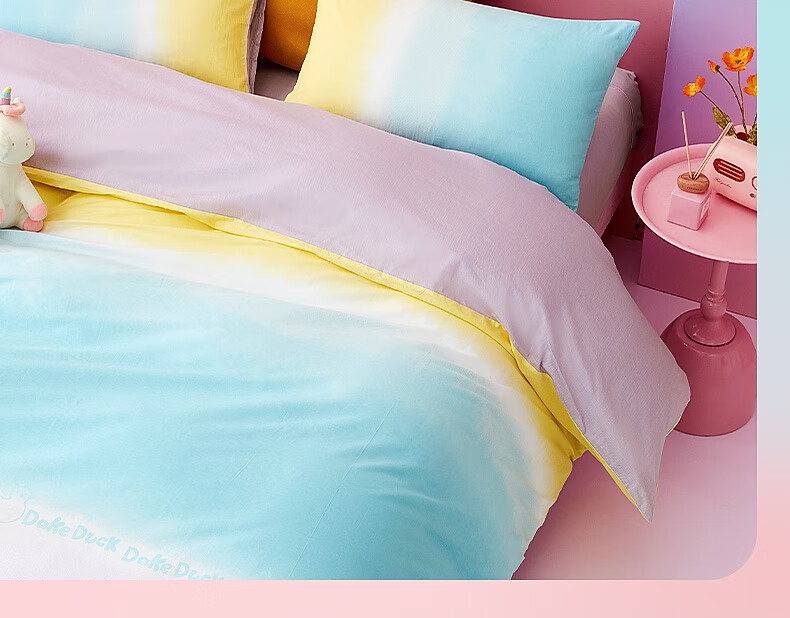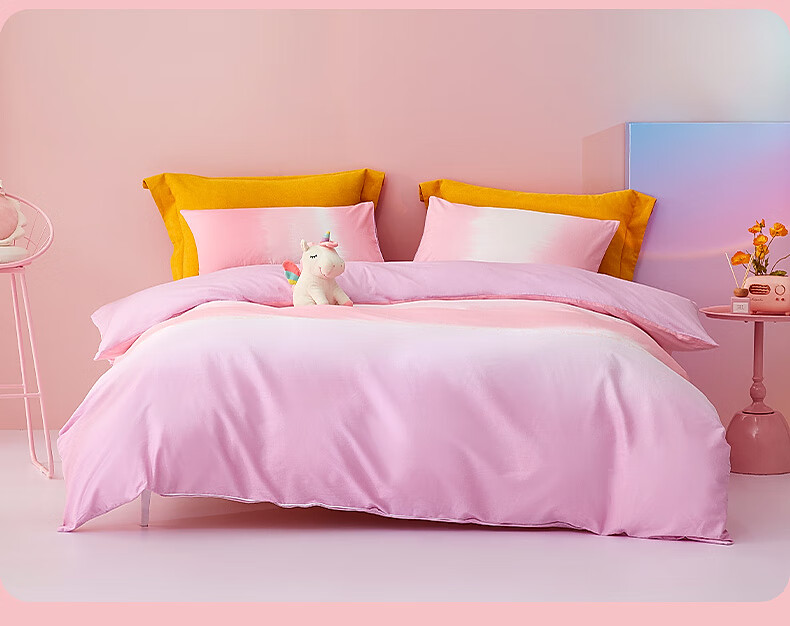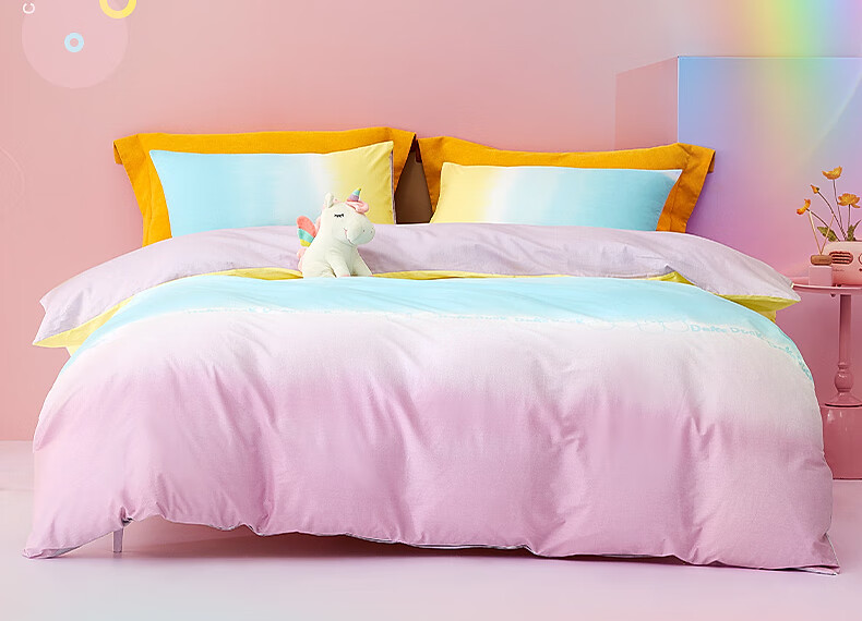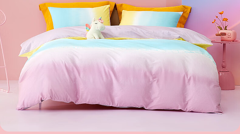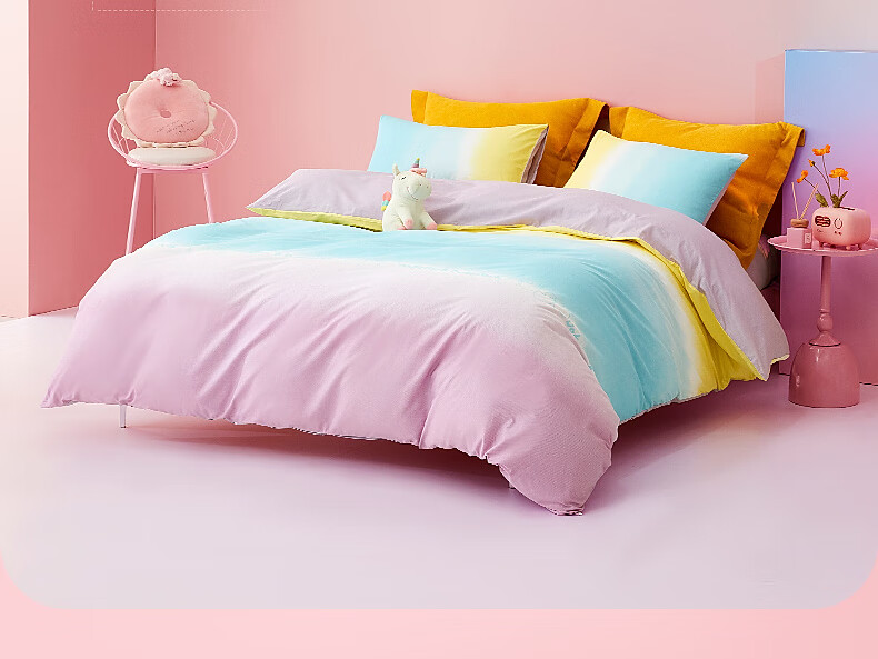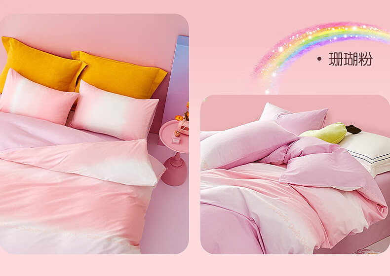 Bliss Home Textiles (bliss) four-piece set of pure cotton sheets for bed, summer rainbow duck (coral pink) 1.8 bed recommended with 220*240cm quilt core