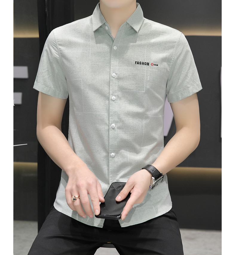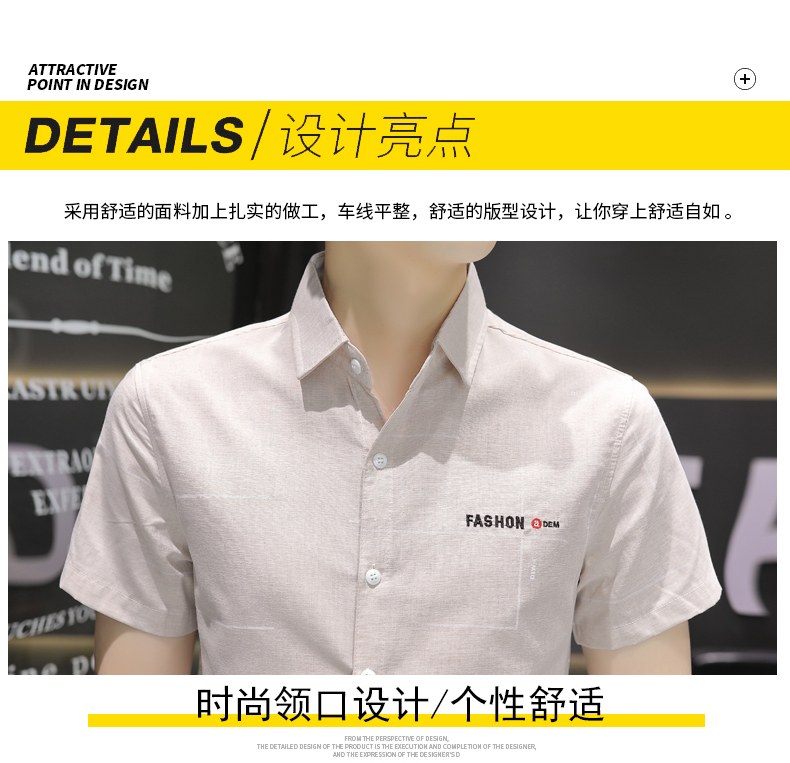 皮尔卡丹纯棉衬衫男短袖薄款休闲帅气韩版修身潮流半袖衬衣服夏季男士衬衣 846卡其 常规 2XL