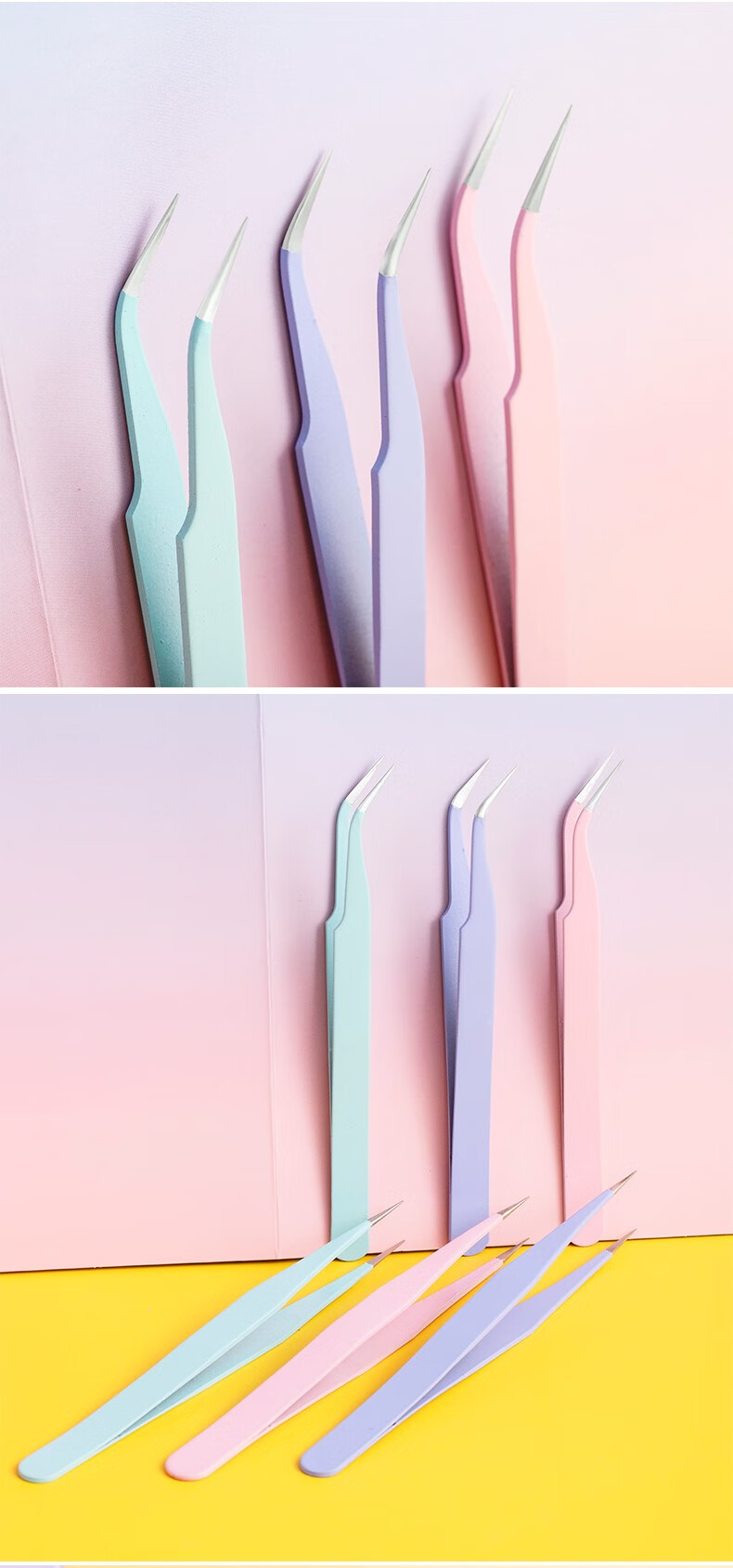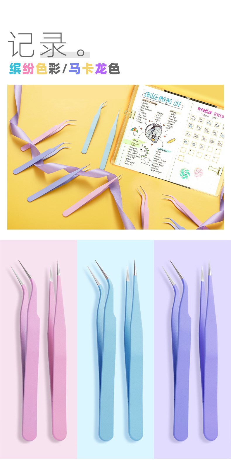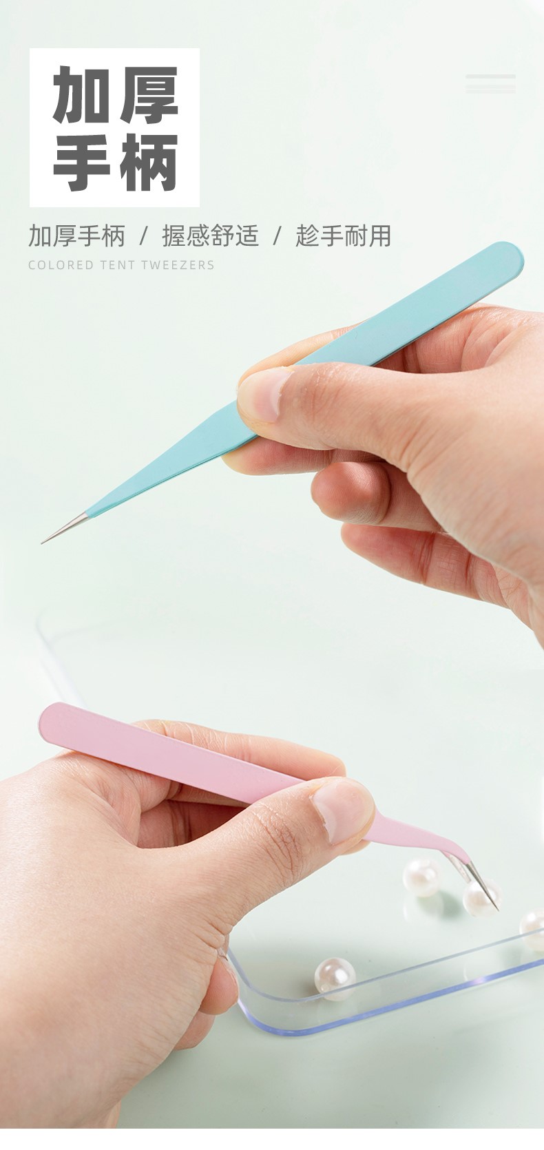 Jiudaoai Double Eyelid Sticker Special Tweezers for Grafting False Eyelashes Curler Handbook Small Tweezers Special Small Eyebrow Clips for Trimming Eyebrows Elbow Blue Straight Head 1 PC