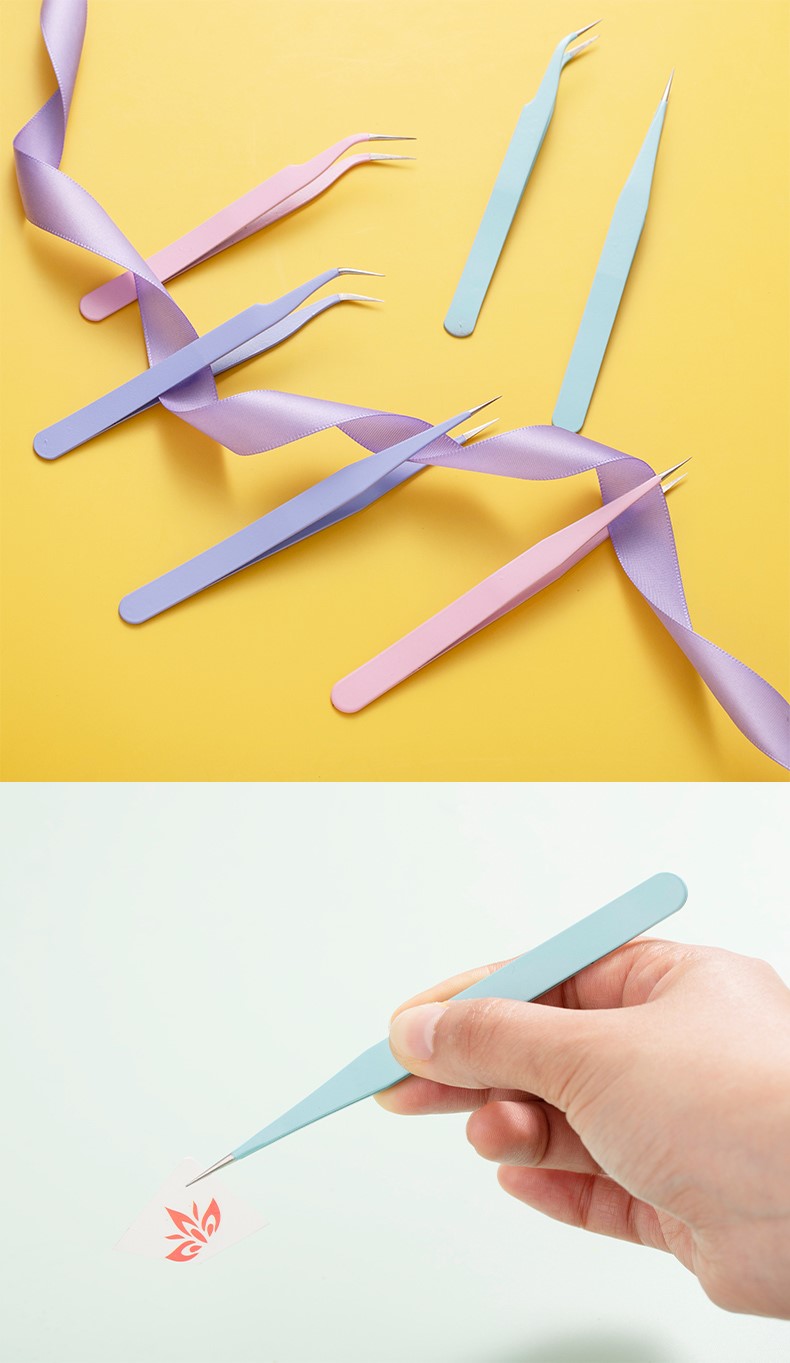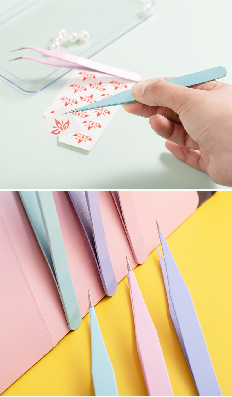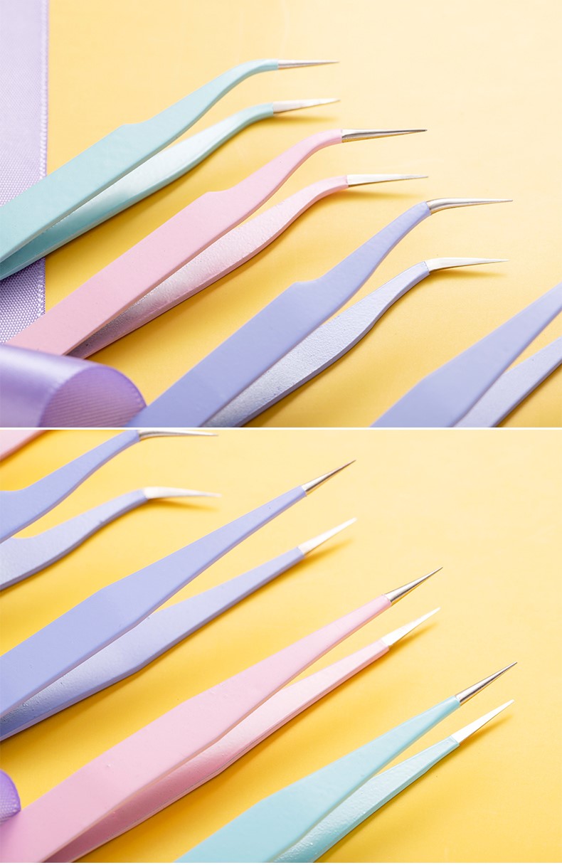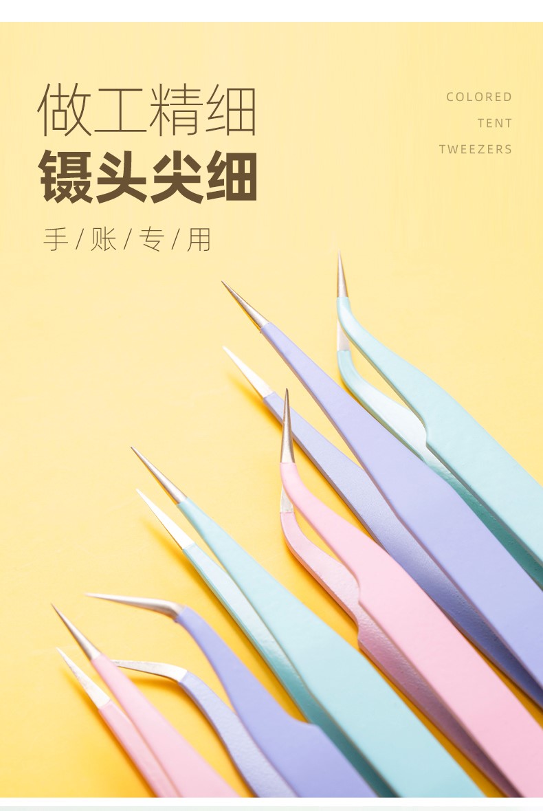 Jiudaoai Double Eyelid Sticker Special Tweezers for Grafting False Eyelashes Curler Handbook Small Tweezers Special Small Eyebrow Clips for Trimming Eyebrows Elbow Blue Straight Head 1 PC