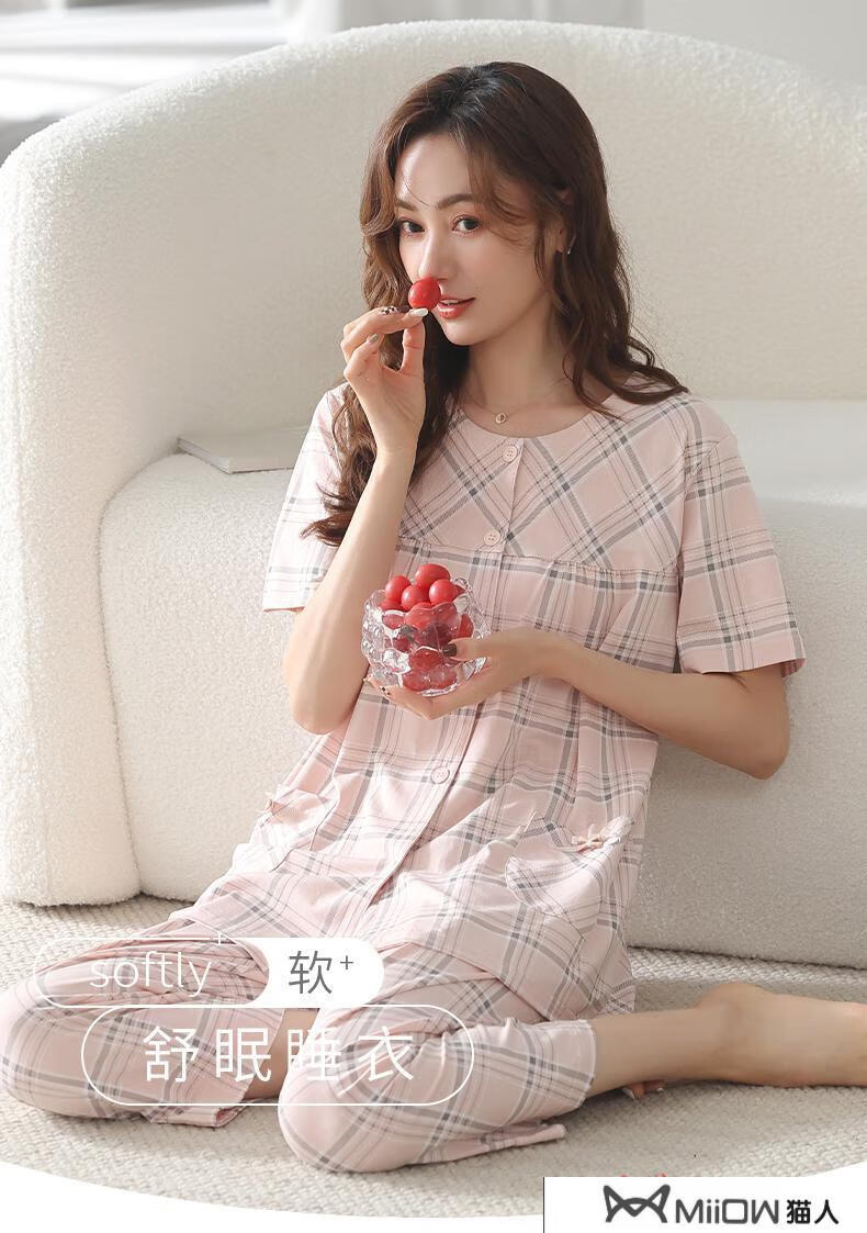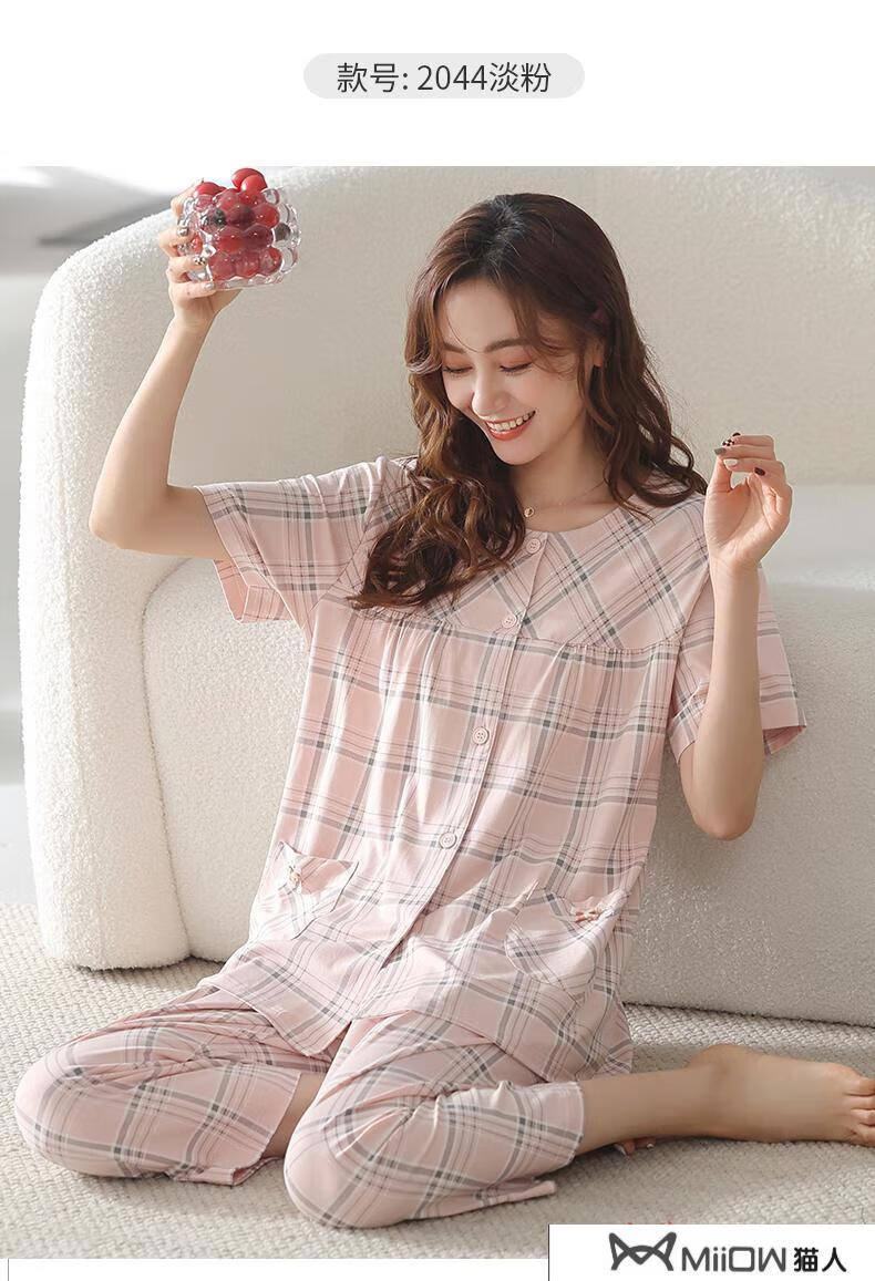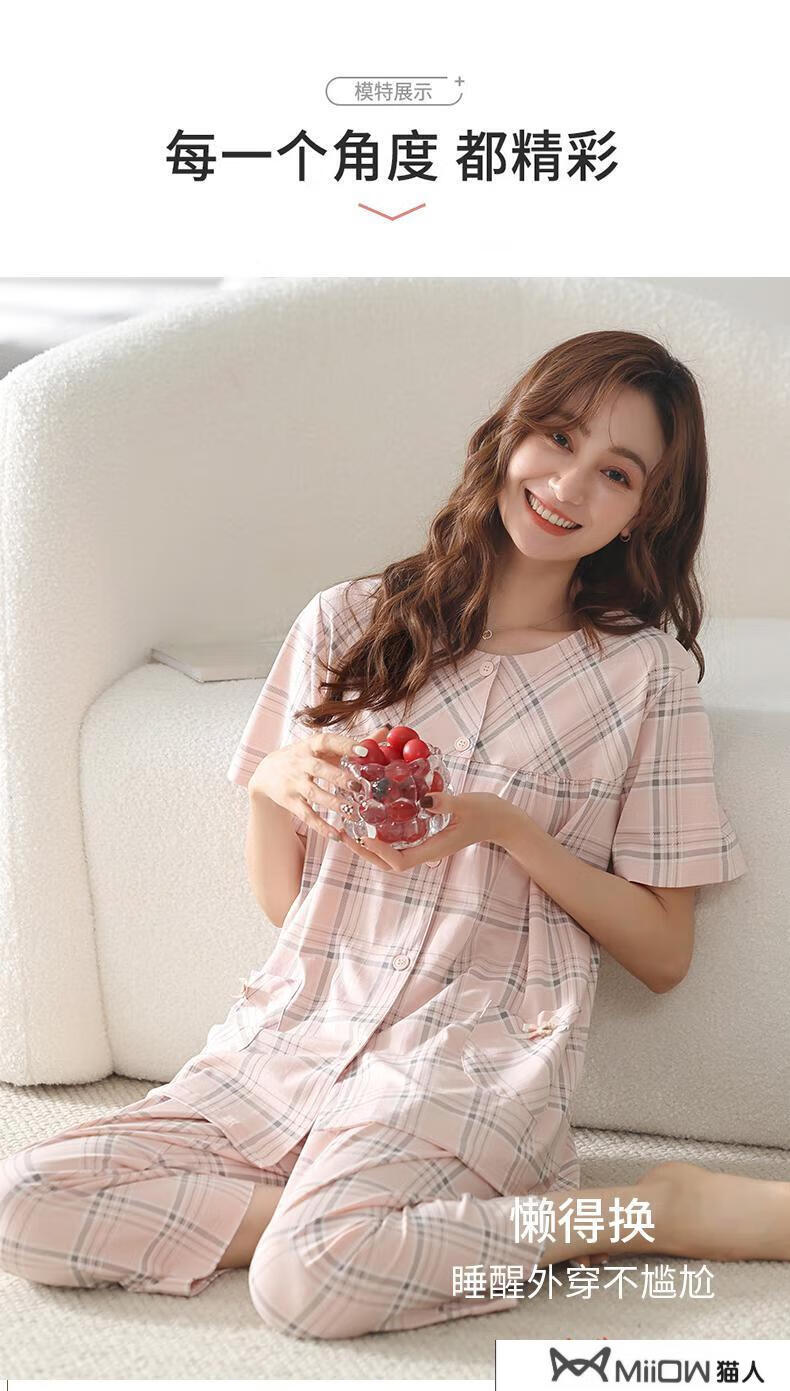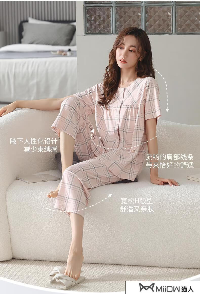 MiiOW brand high-end new product pajamas for women summer thin pure cotton short-sleeved cropped pants summer cotton casual large size M9903 M (recommended weight 80Jin Jin is equal to 0.5kg -100Jin Jin is equal to 0.5kg)