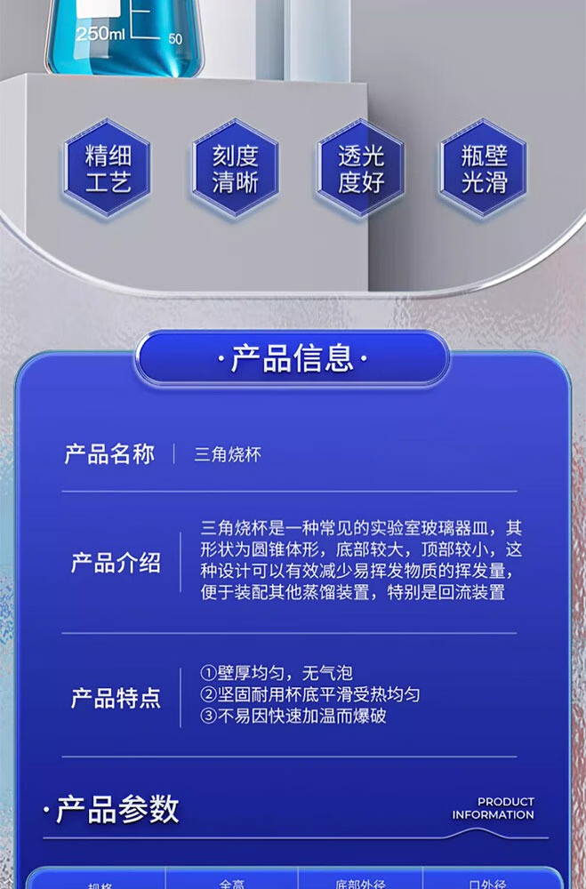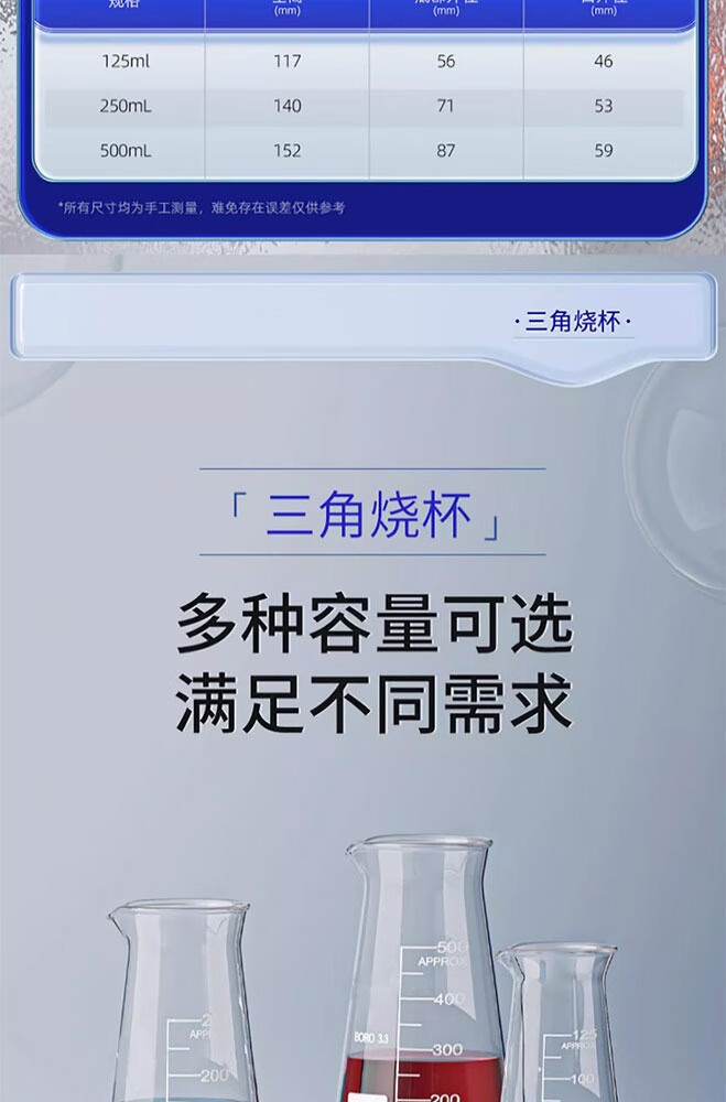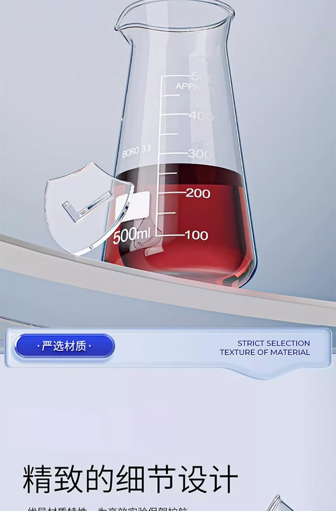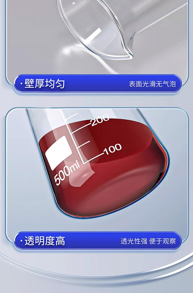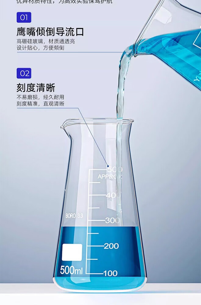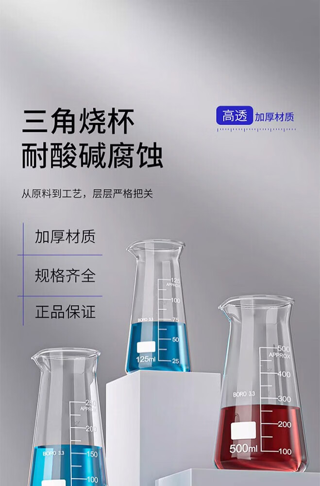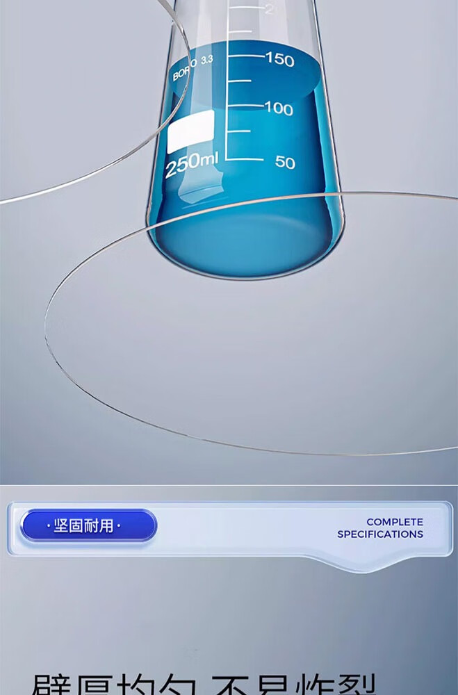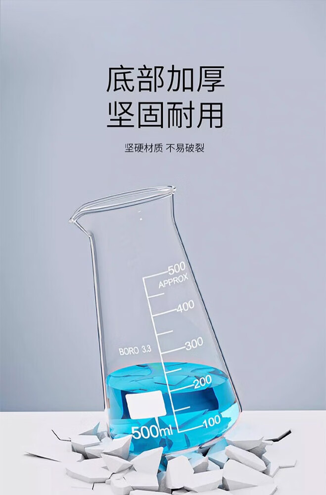 Dreieckiges Becherglas, Glasbecher mit hohem Borosilikatgehalt, Messbecher, Hochtemperatur-Widerstandsheizexperiment, konischer Becher 125 ml, 250 ml, 500 ml, kleiner Mund 250 ml