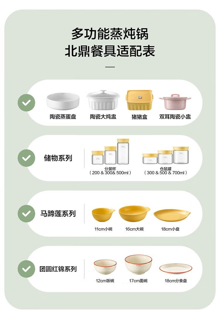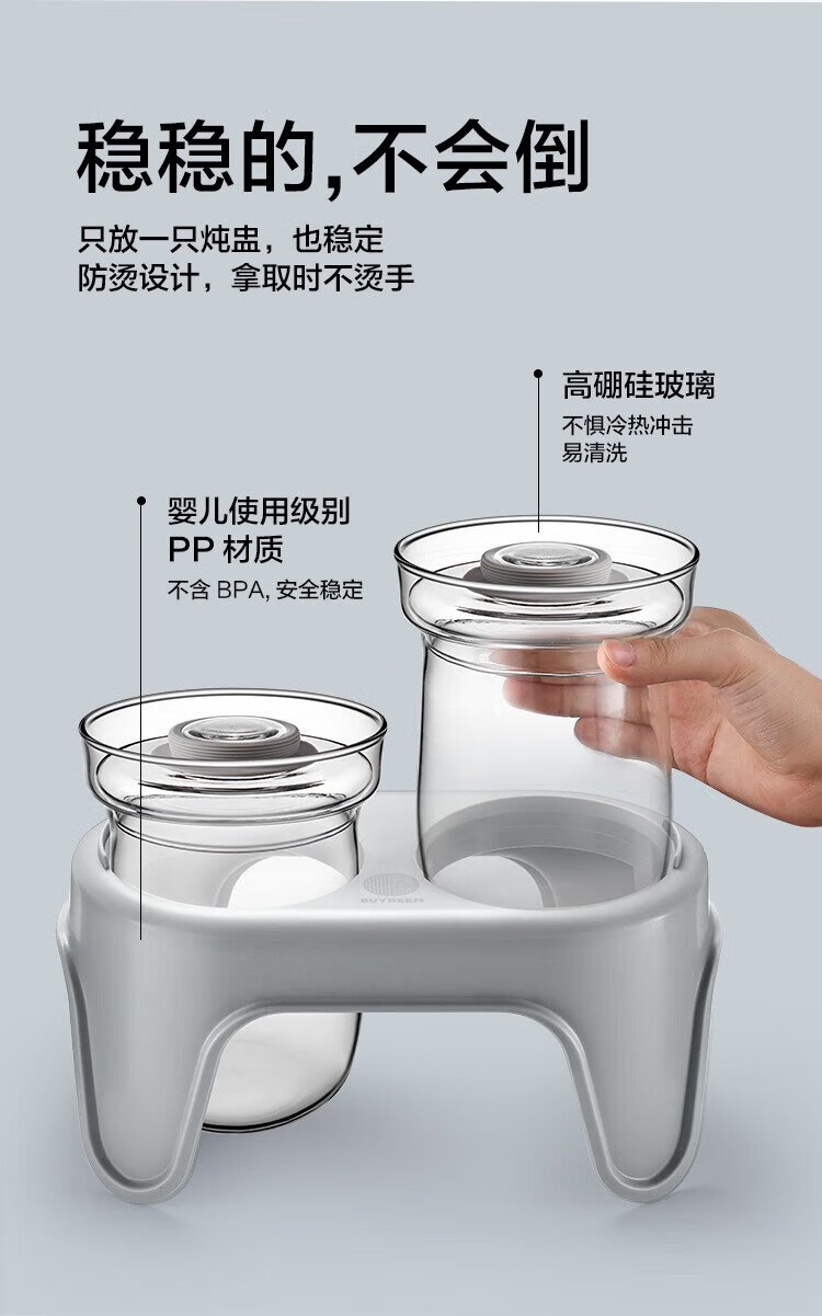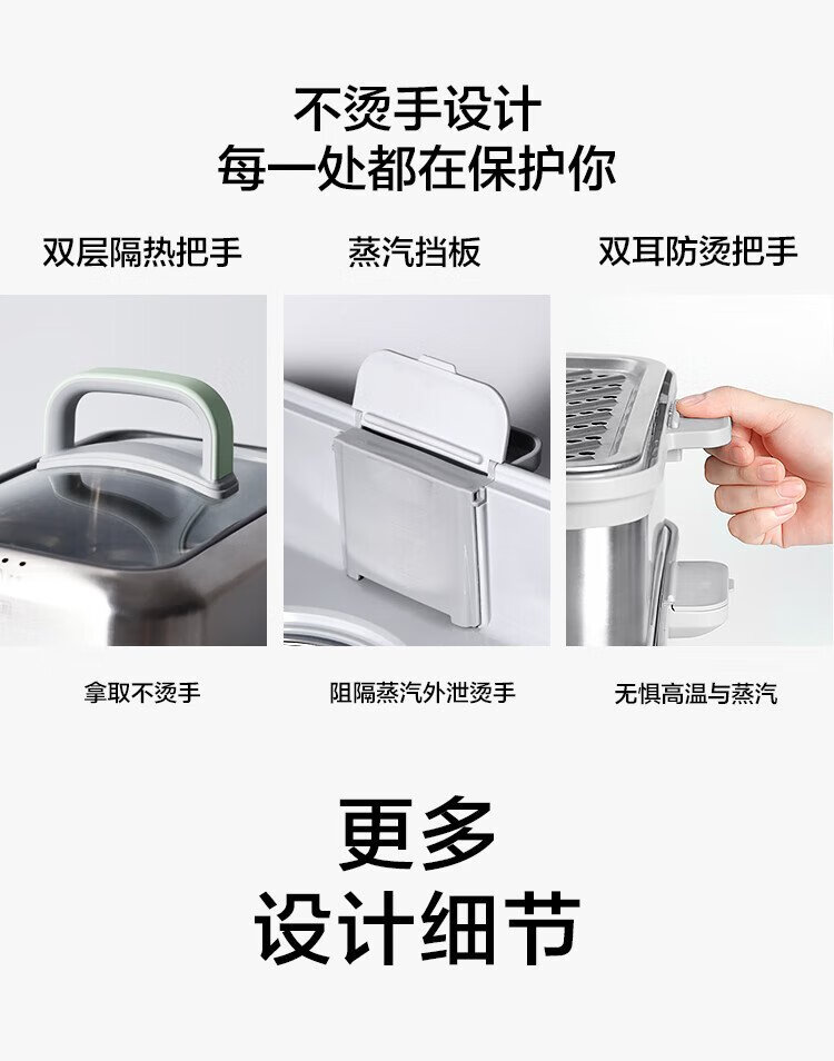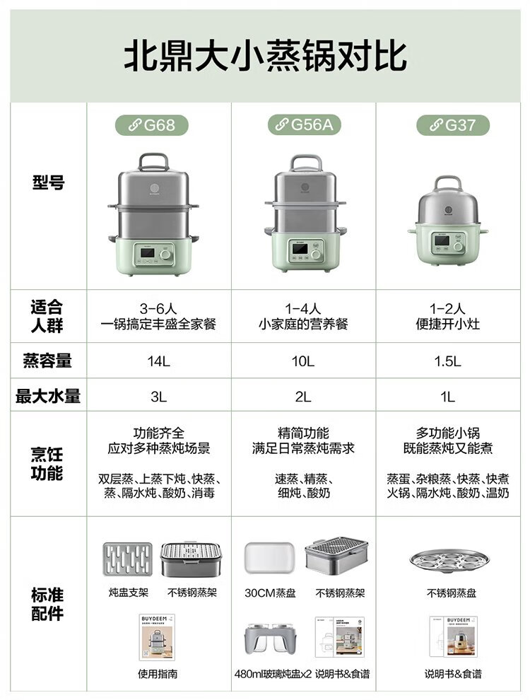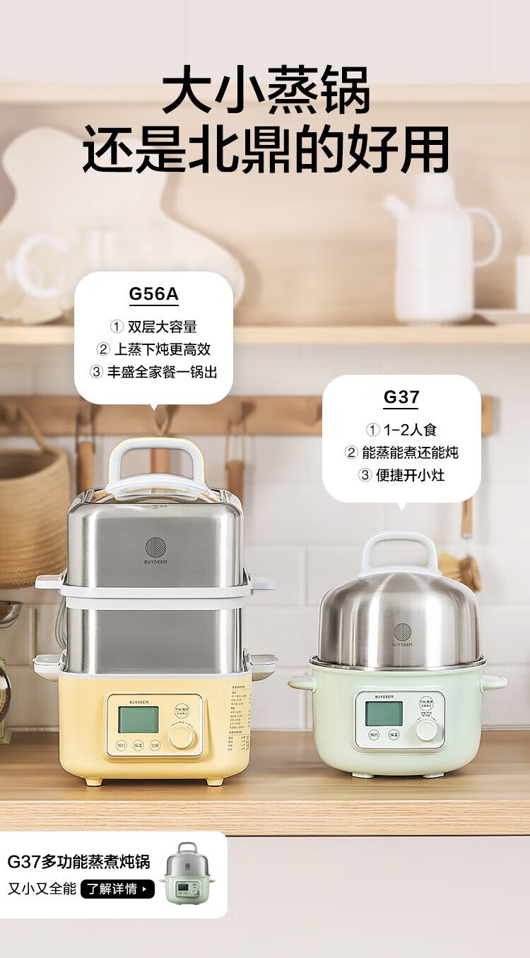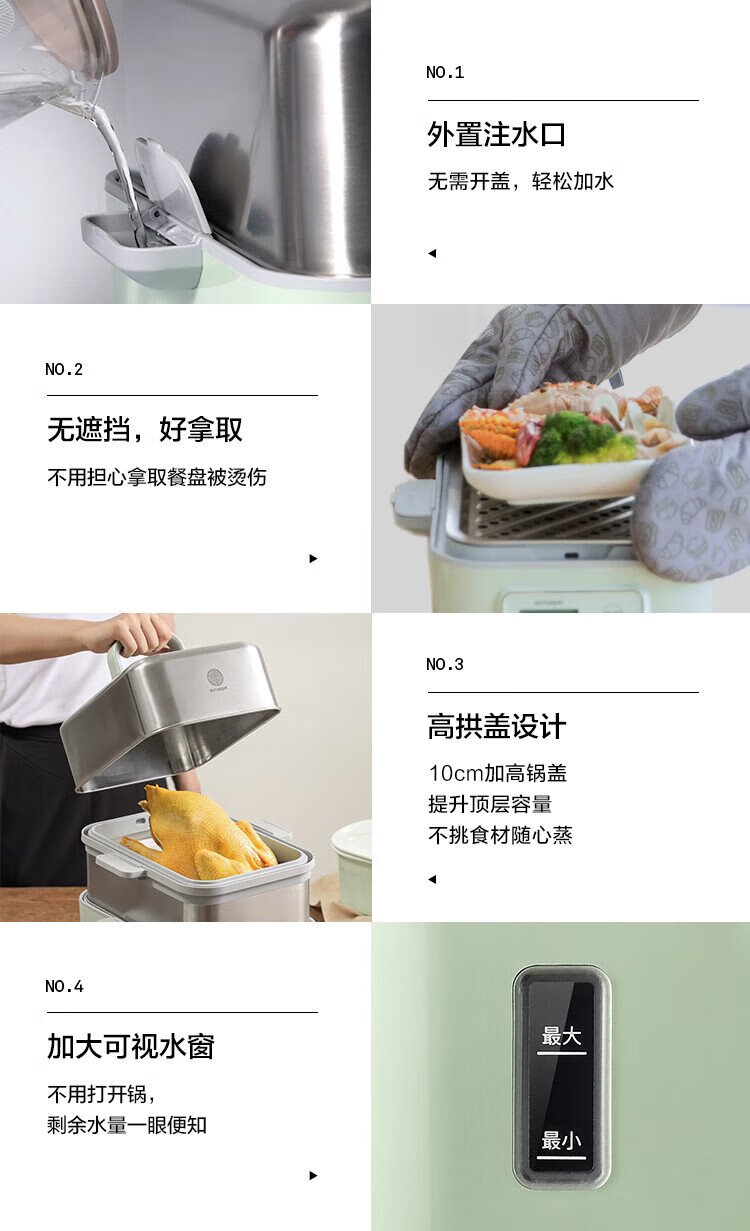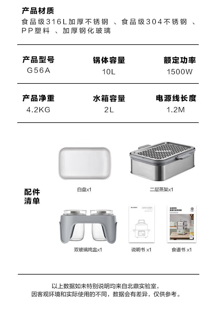 Beiding (Buydeem) electric steamer, large-capacity household steamer, stewing and cooking, multi-purpose pot, smart visual electric stewing pot, double-layer timed insulation multi-function pot, stainless steel steamer, G56A shallow fir green, two-layer steamer rack + glass stewed pot + white plate 10L