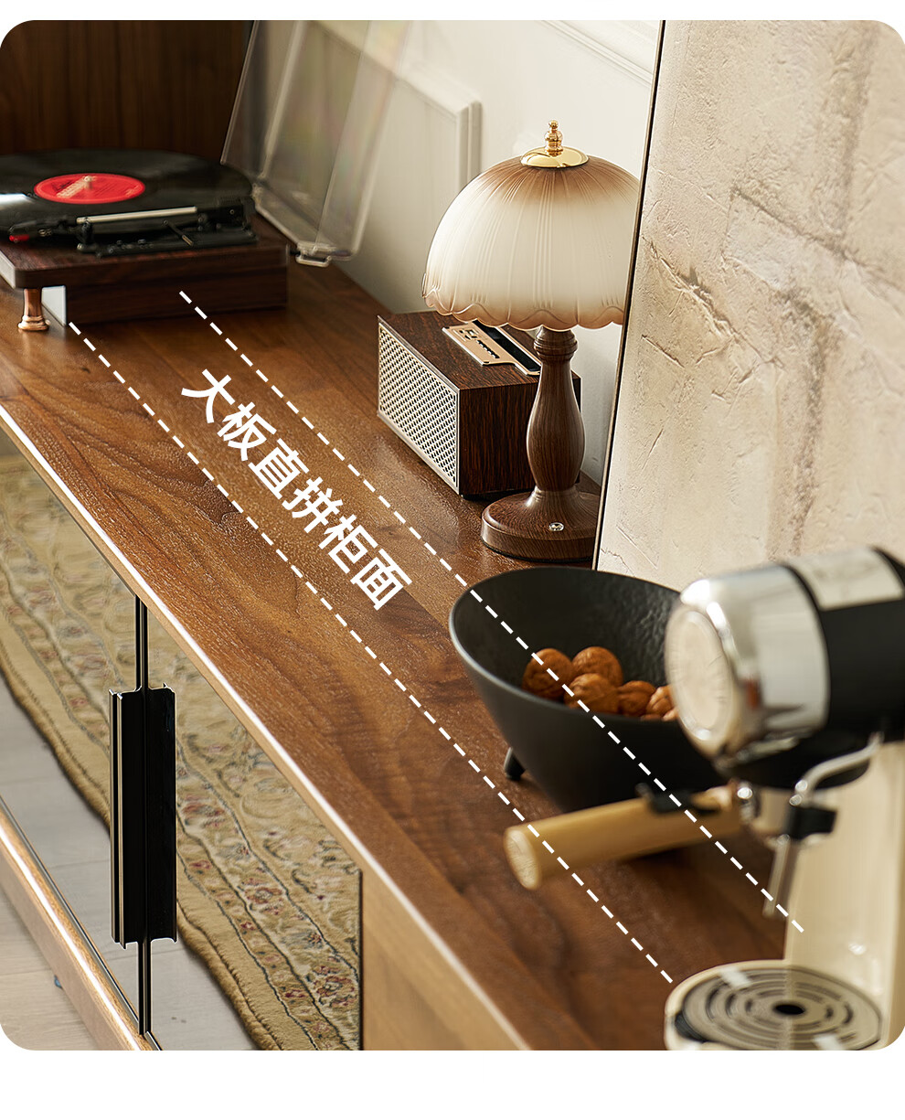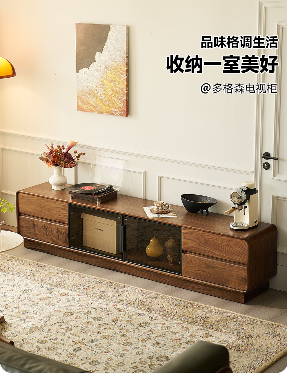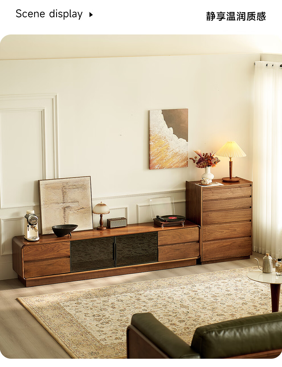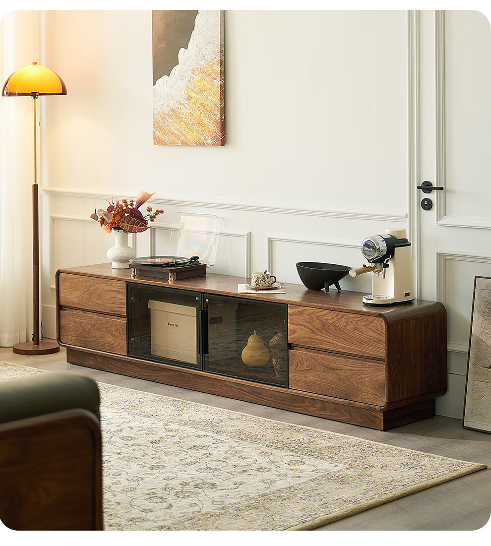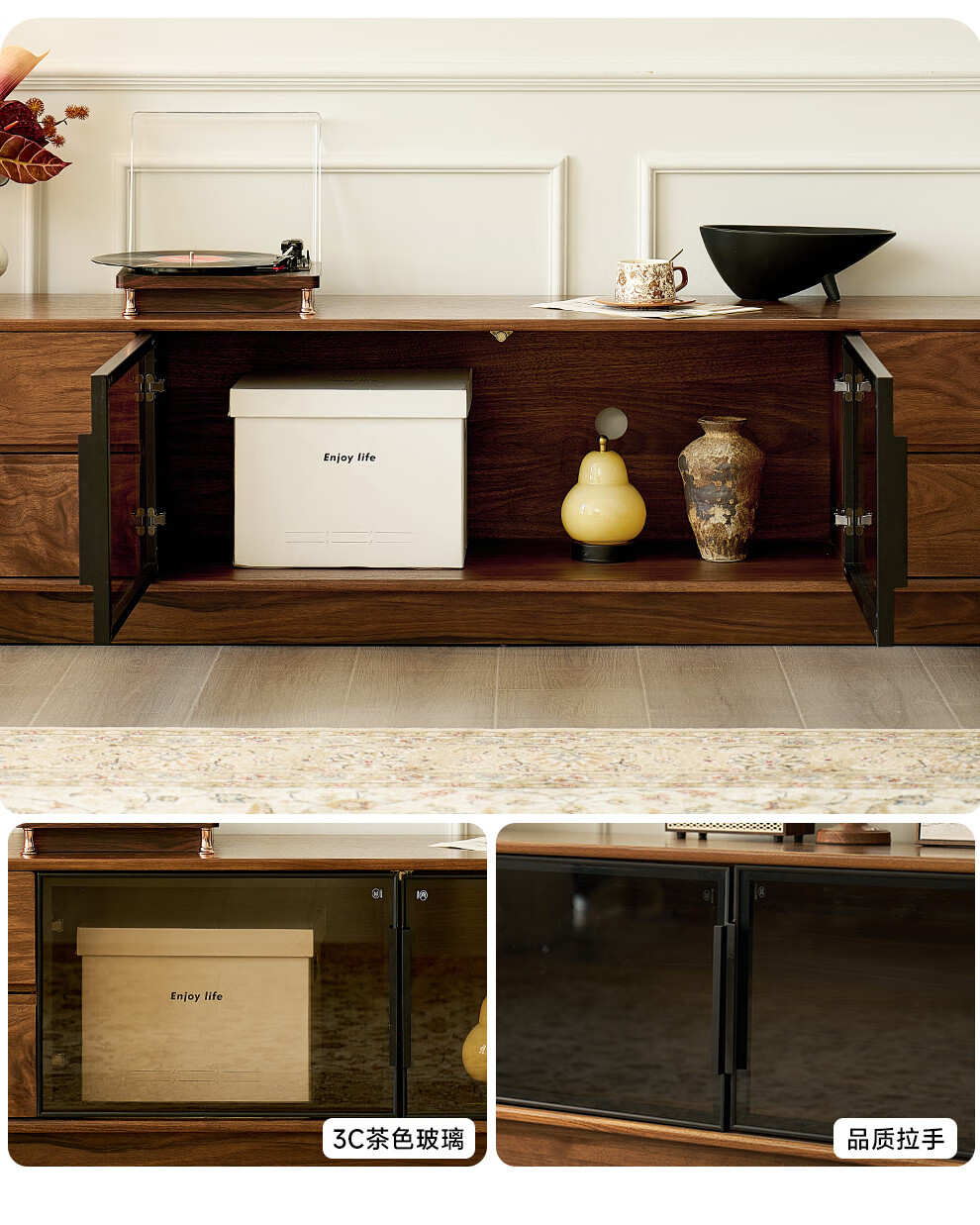 Zhidian Massivholz-TV-Schrank, bodenstehend, nordamerikanisches schwarzes Walnussholz, italienisches leichtes Luxus-High-End-Villa-Standmodell mit Glastür-Unterschrank, 2,15 Meter TV-Schrank YYGMC675, Walnuss