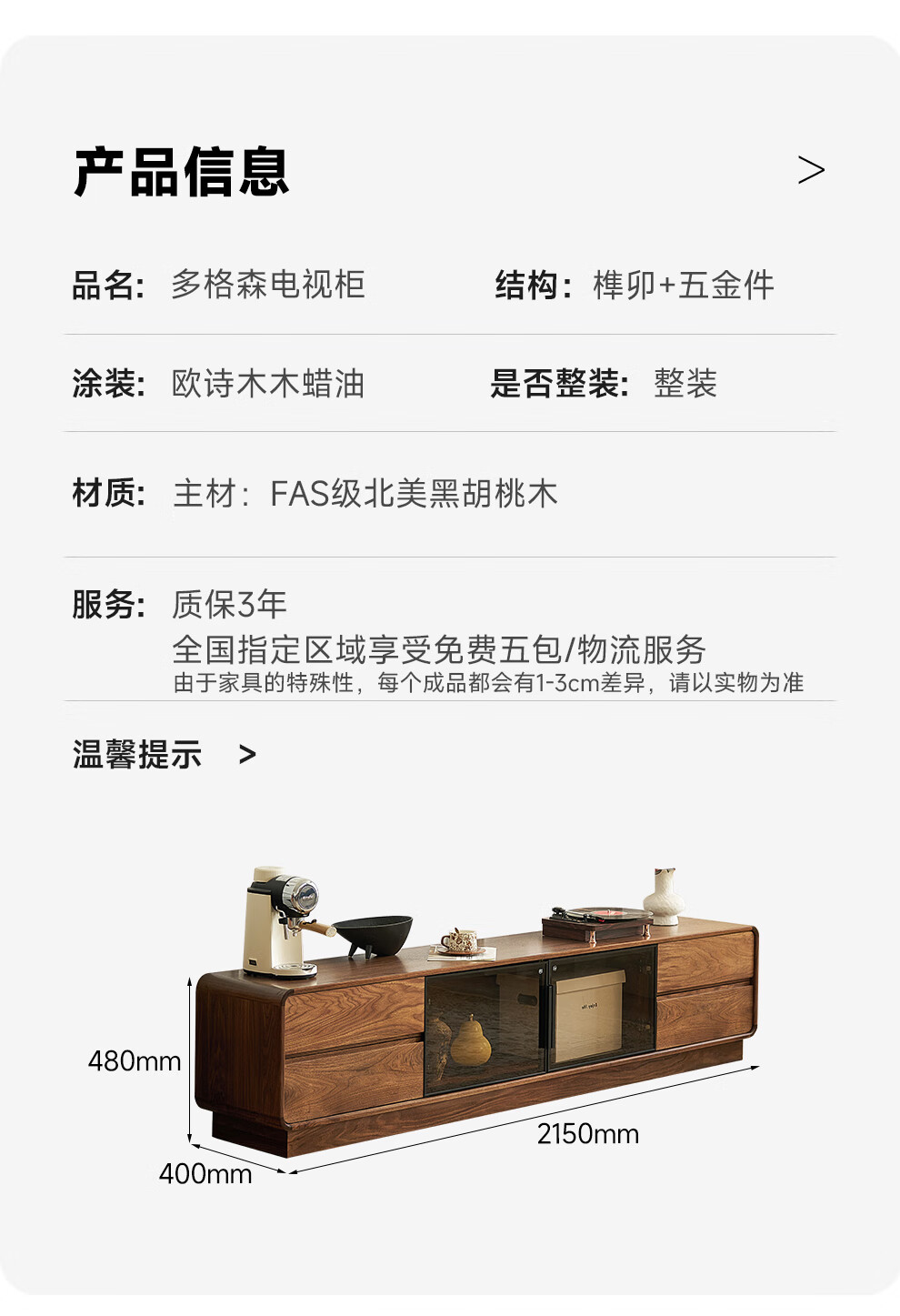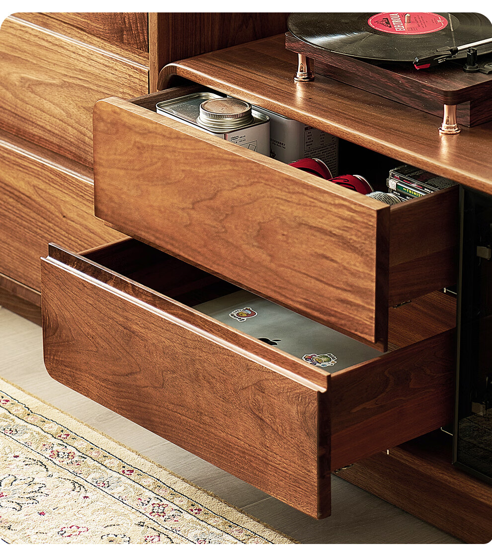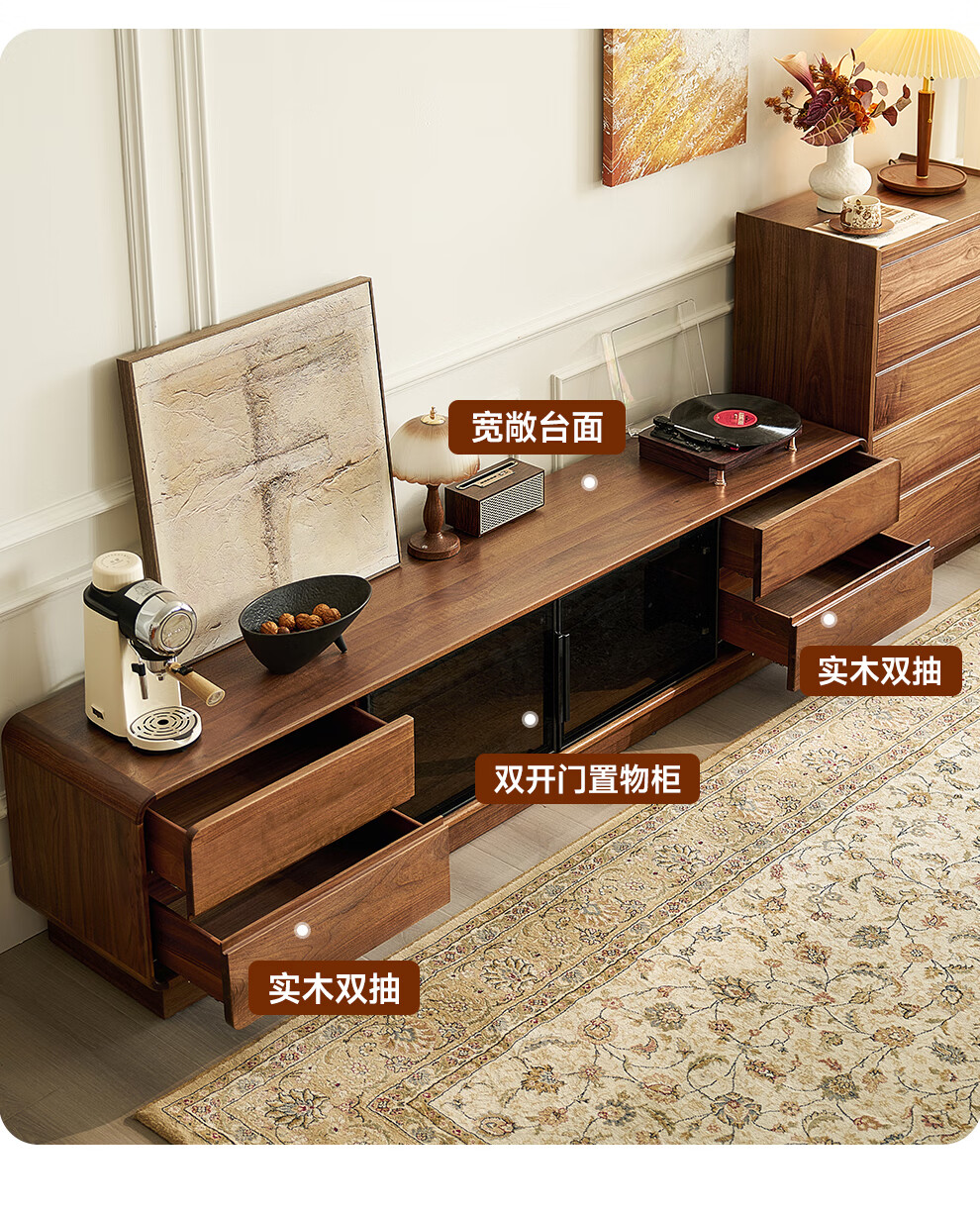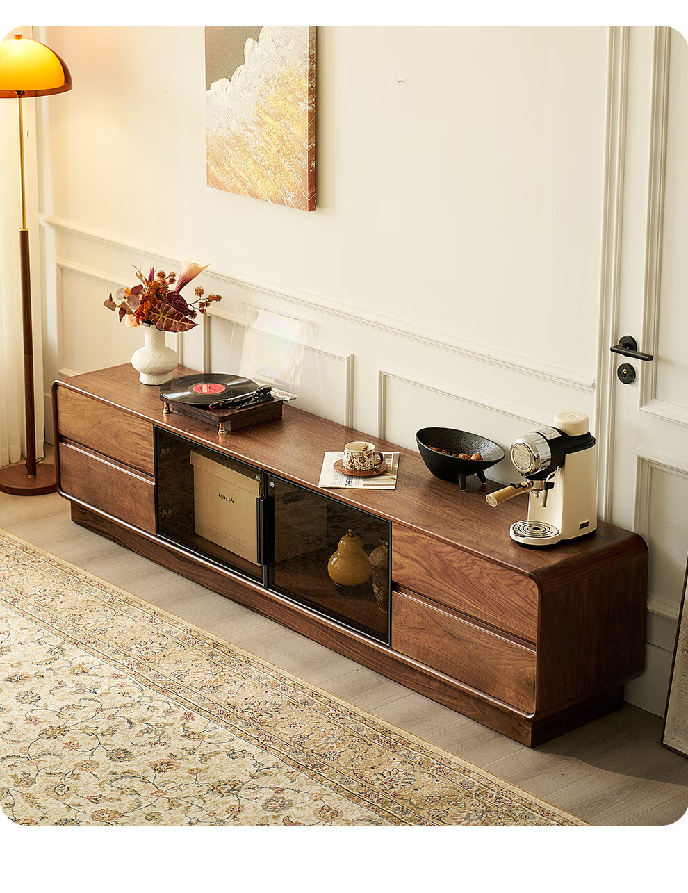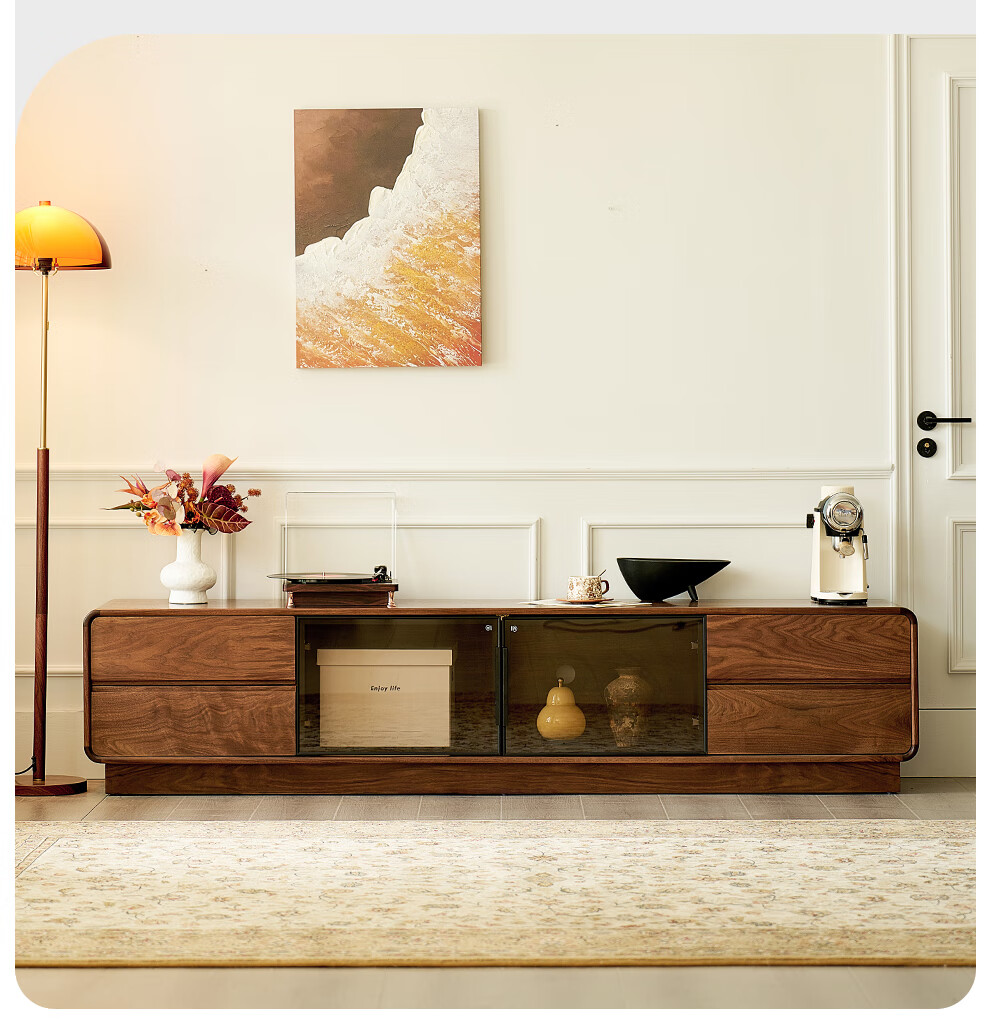 Zhidian Massivholz-TV-Schrank, bodenstehend, nordamerikanisches schwarzes Walnussholz, italienisches leichtes Luxus-High-End-Villa-Standmodell mit Glastür-Unterschrank, 2,15 Meter TV-Schrank YYGMC675, Walnuss