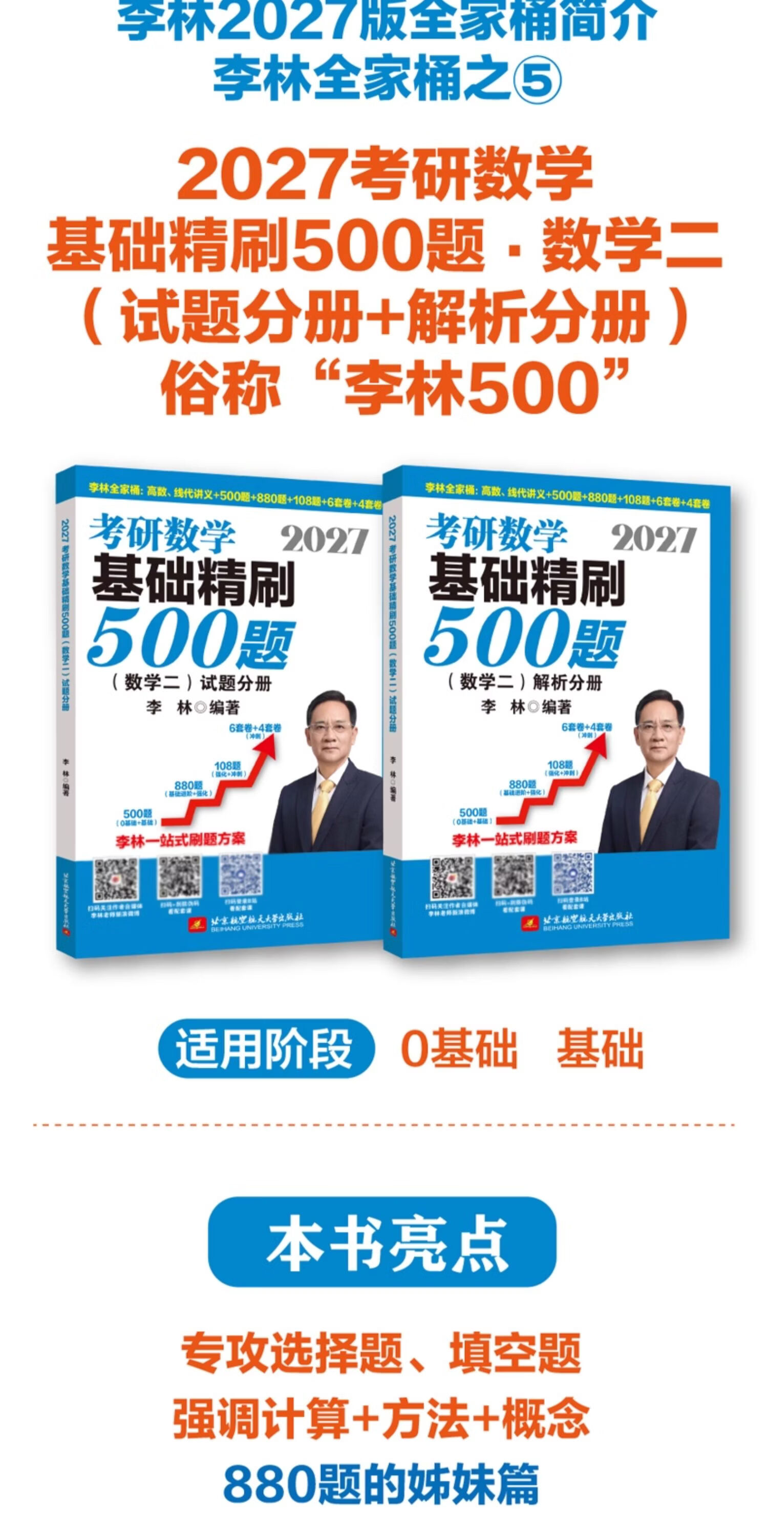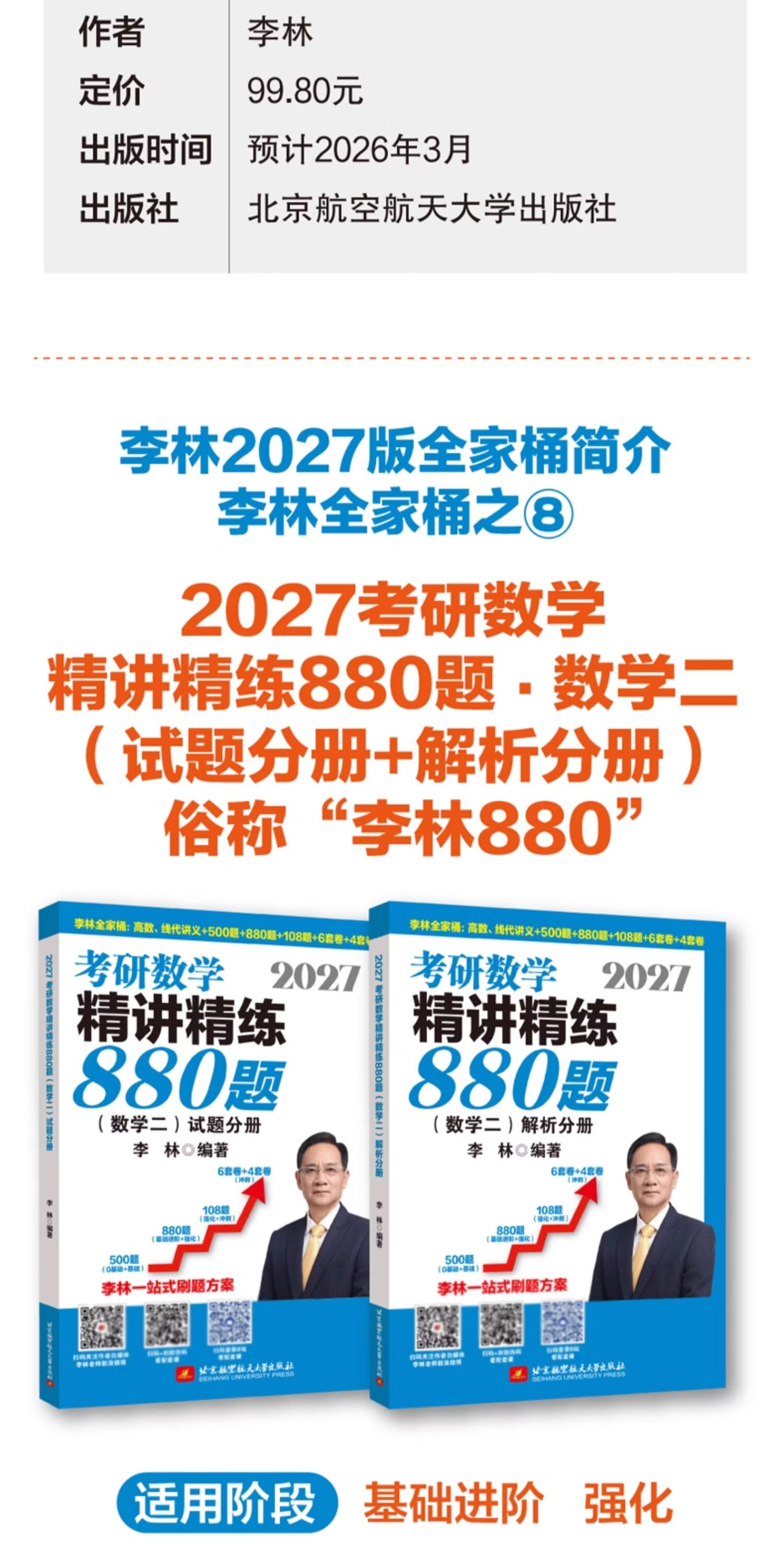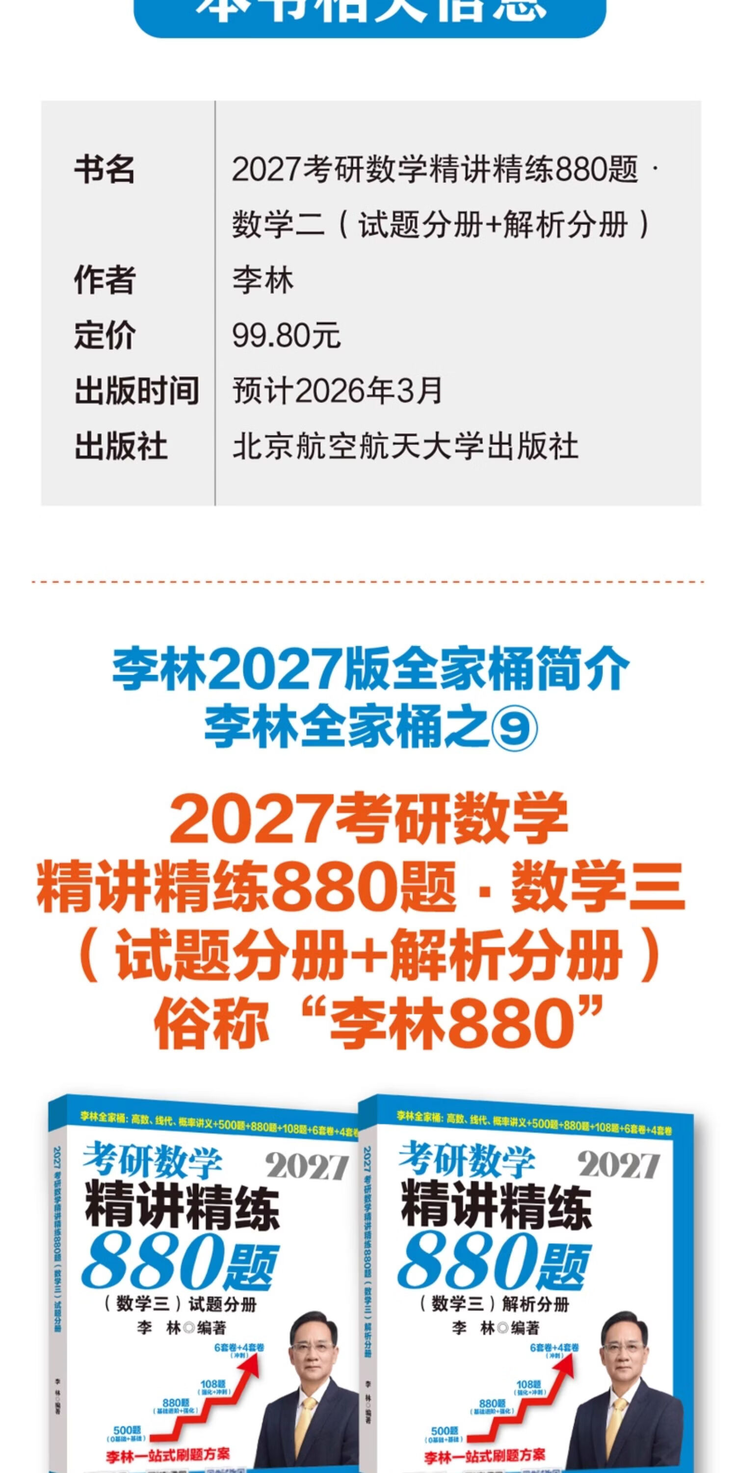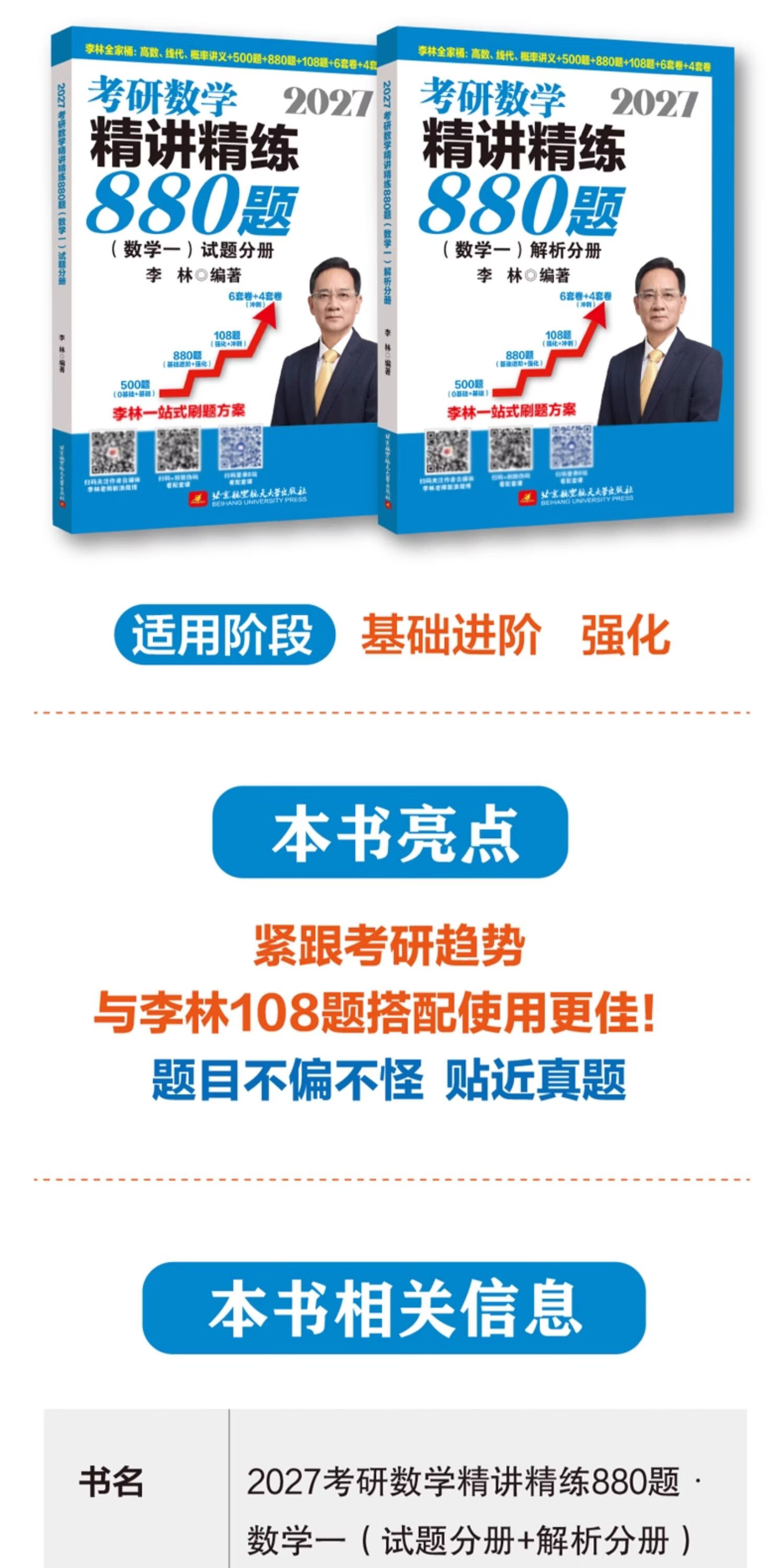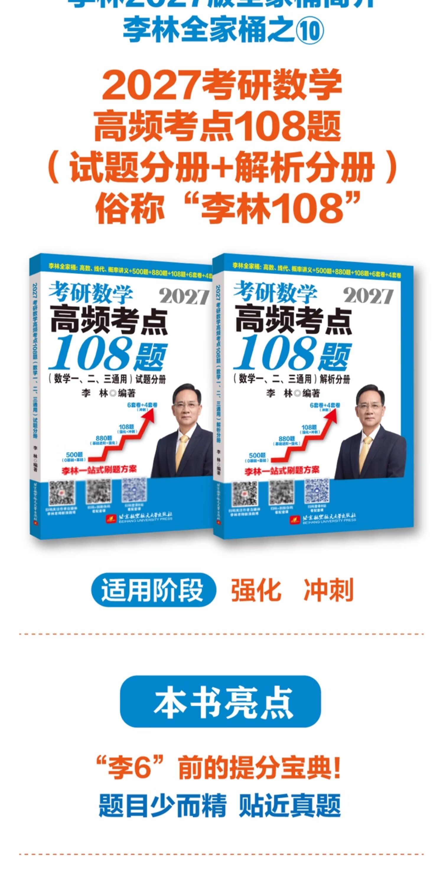 Officially designated + Li Lin 4 sets of papers in stock 2027 Li Lin postgraduate entrance examination mathematics Li Lin 880 simulation paper Li Lin high frequency test point 108 questions Li Lin 6+4 four and six sets of papers mathematics one mathematics two mathematics three 2027 Li Lin refined 880 questions mathematics one will be launched in March