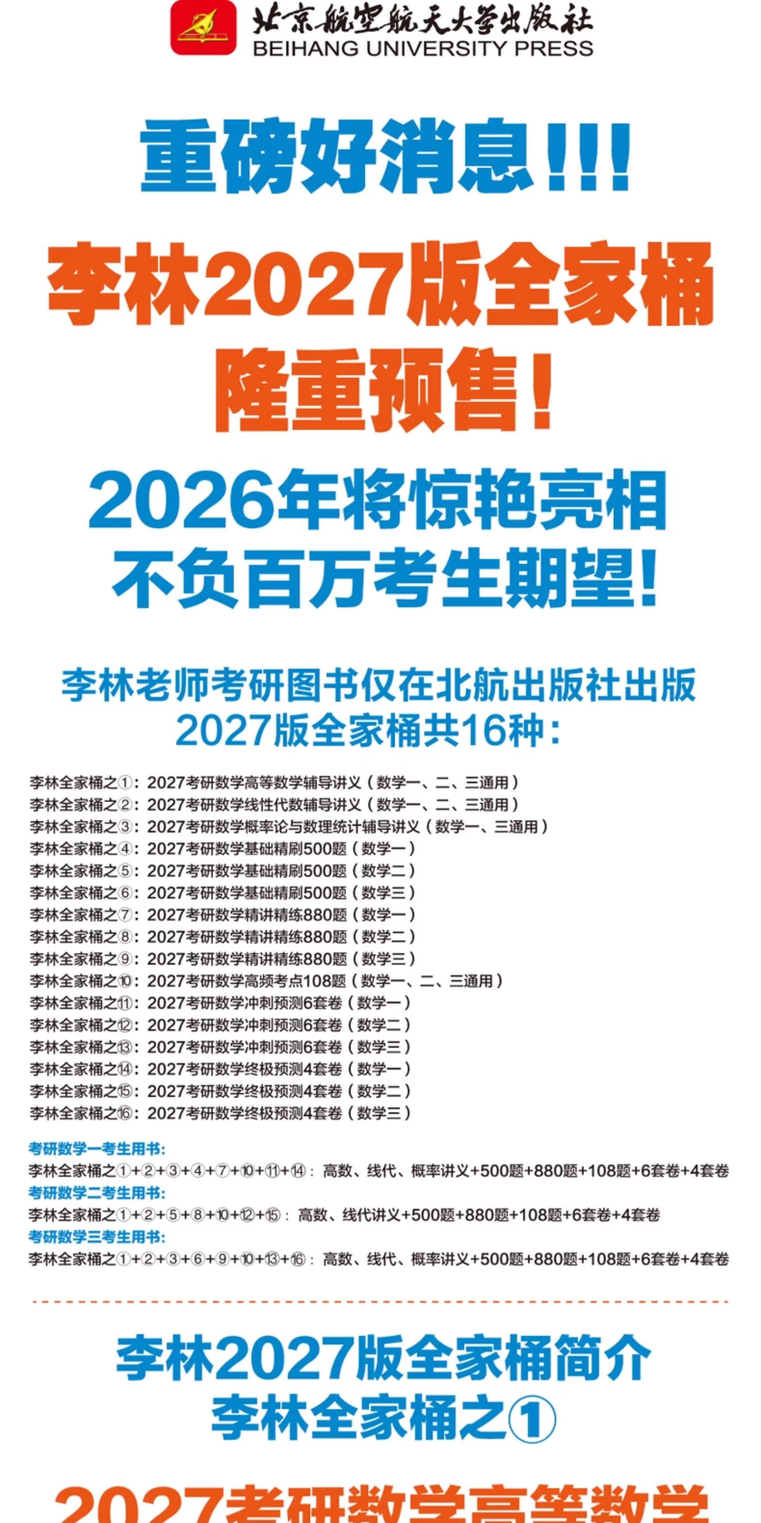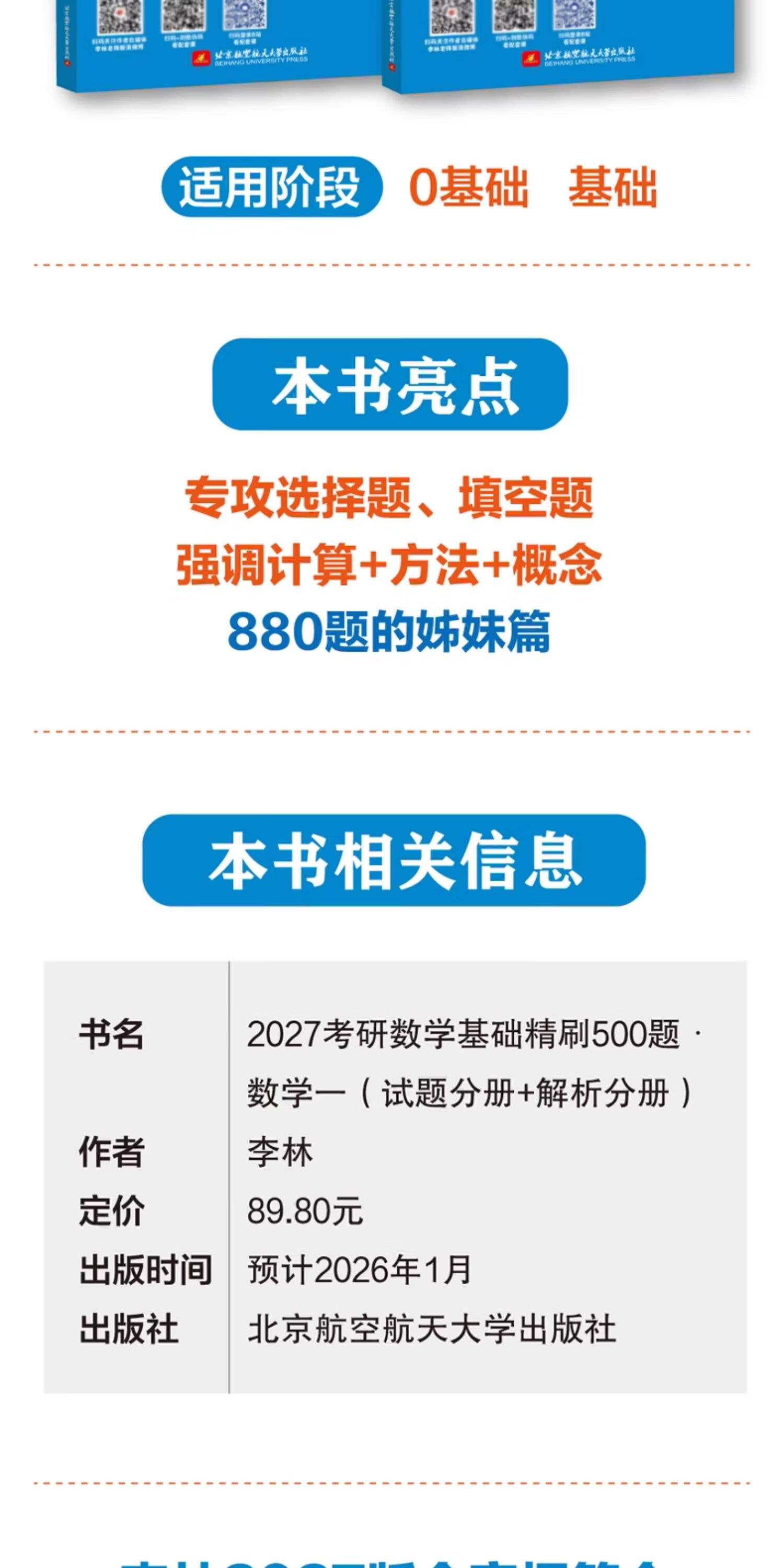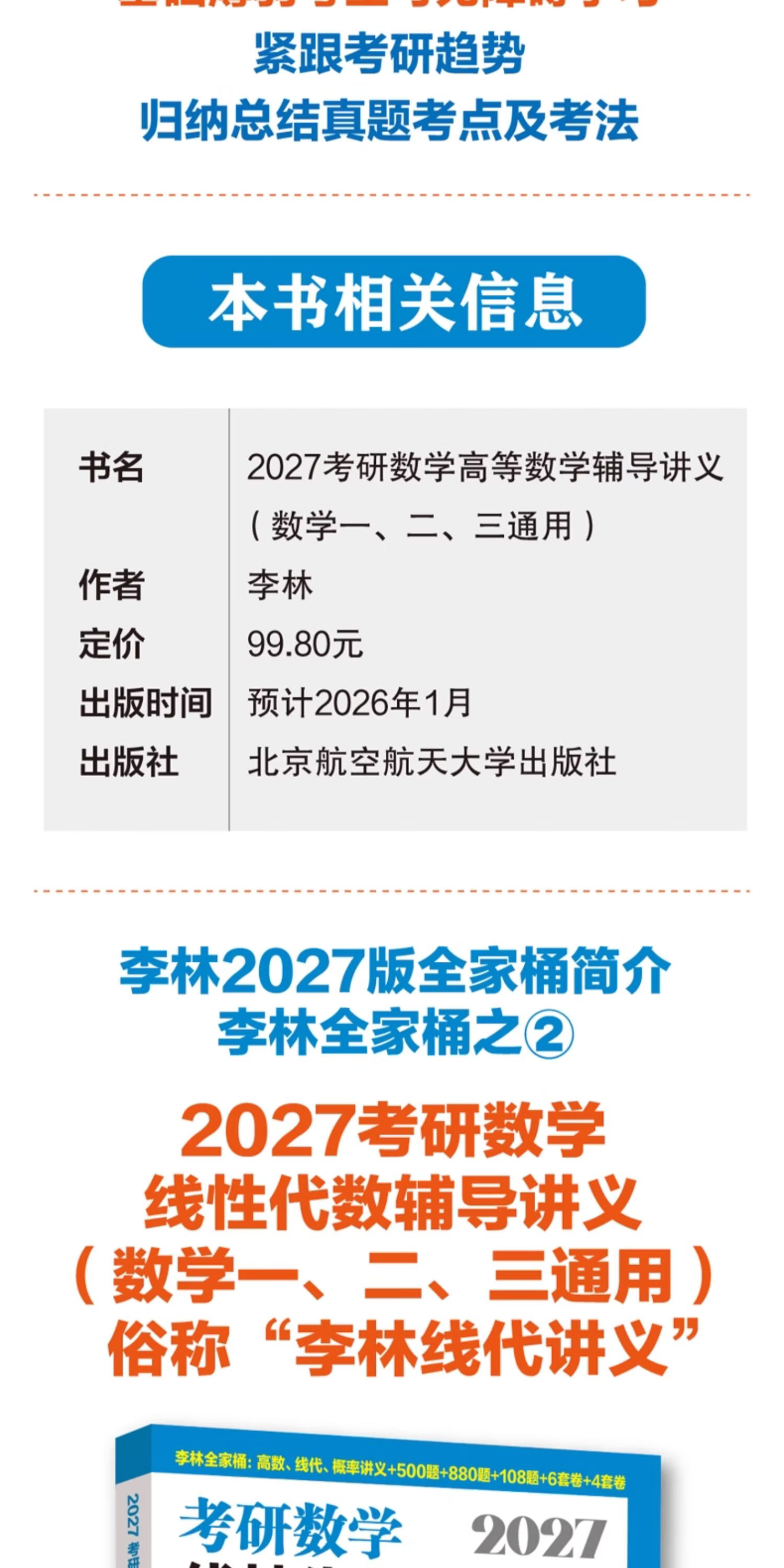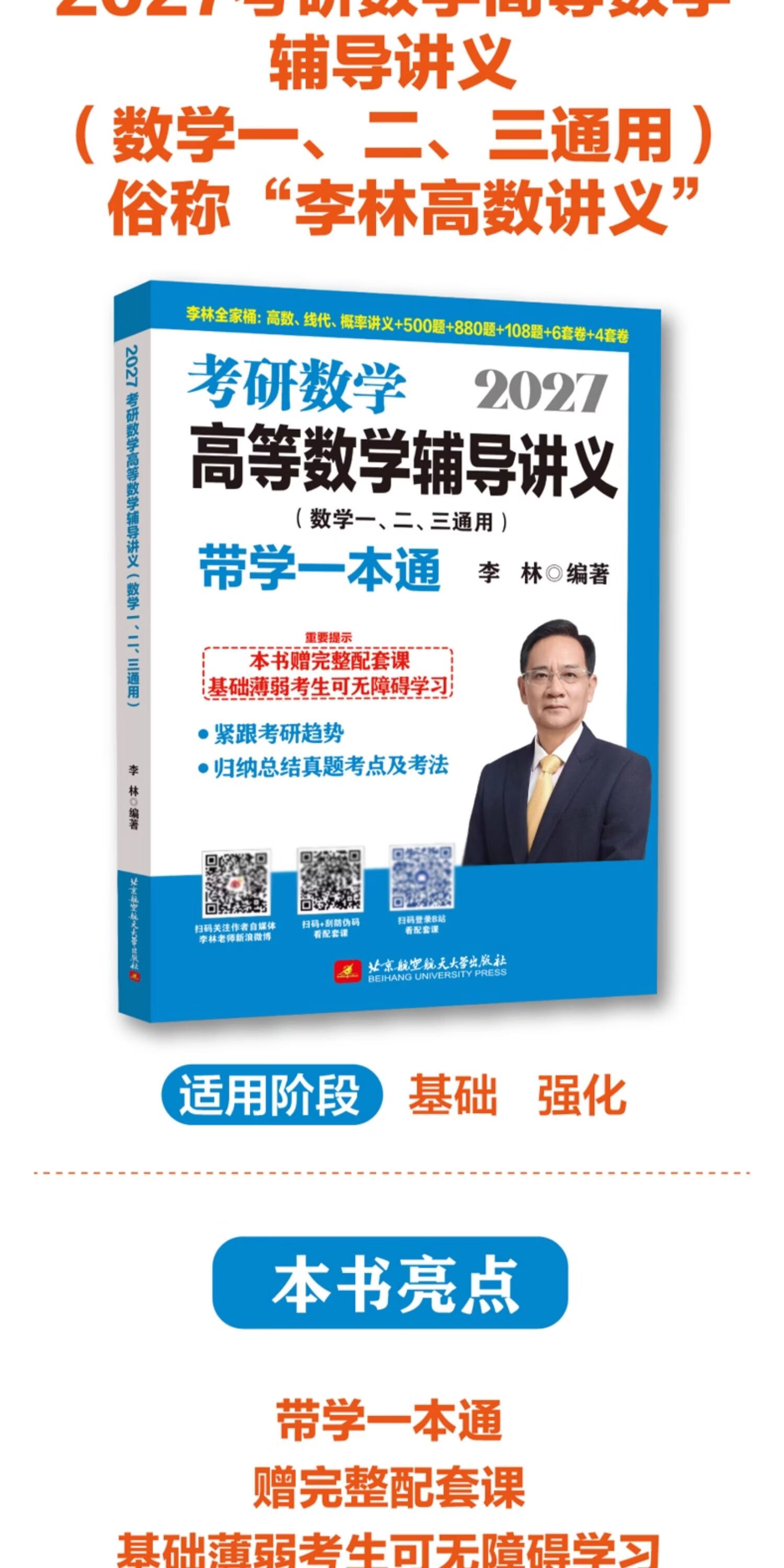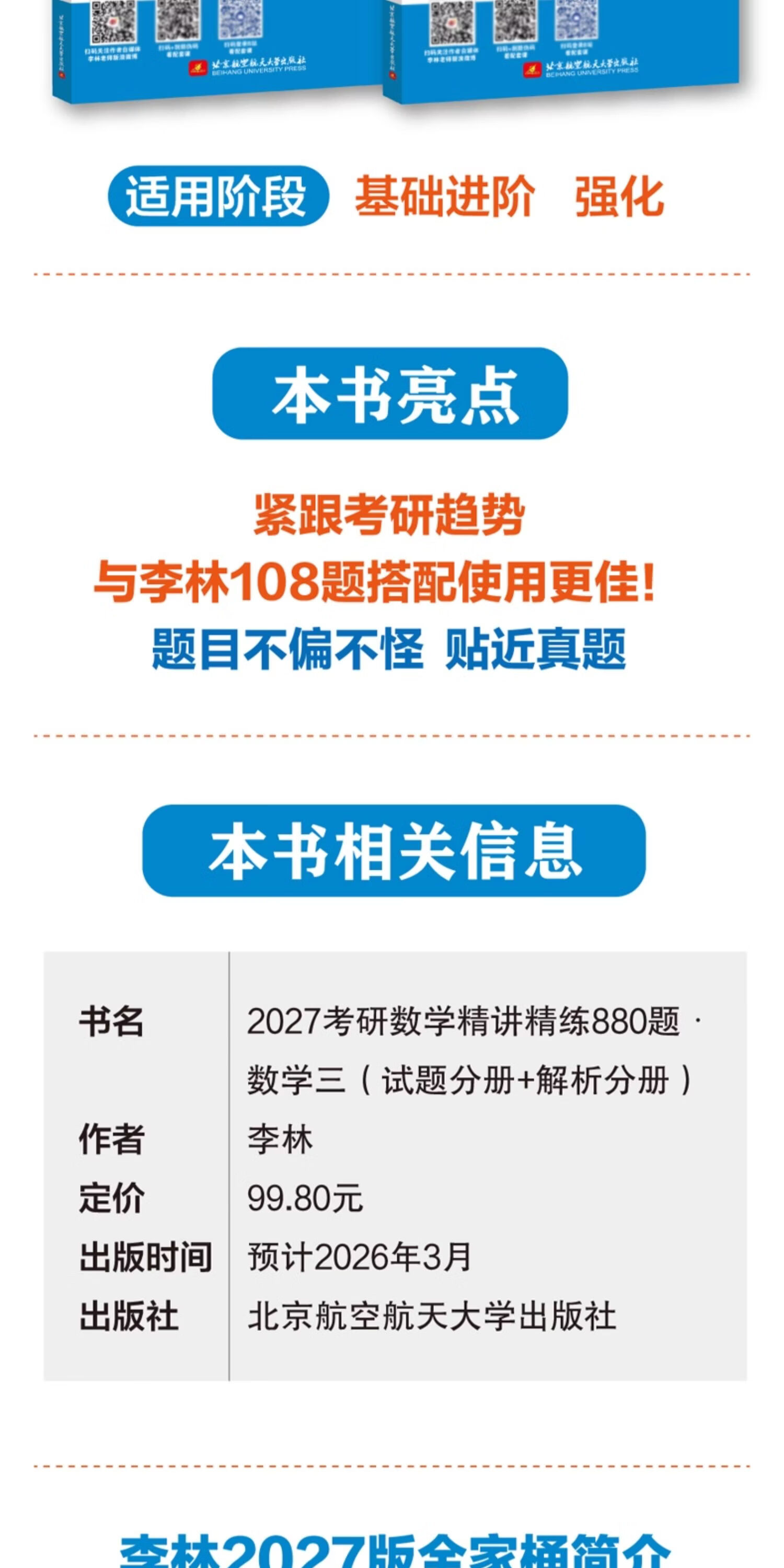 Officially designated + Li Lin 4 sets of papers in stock 2027 Li Lin postgraduate entrance examination mathematics Li Lin 880 simulation paper Li Lin high frequency test point 108 questions Li Lin 6+4 four and six sets of papers mathematics one mathematics two mathematics three 2027 Li Lin refined 880 questions mathematics one will be launched in March
