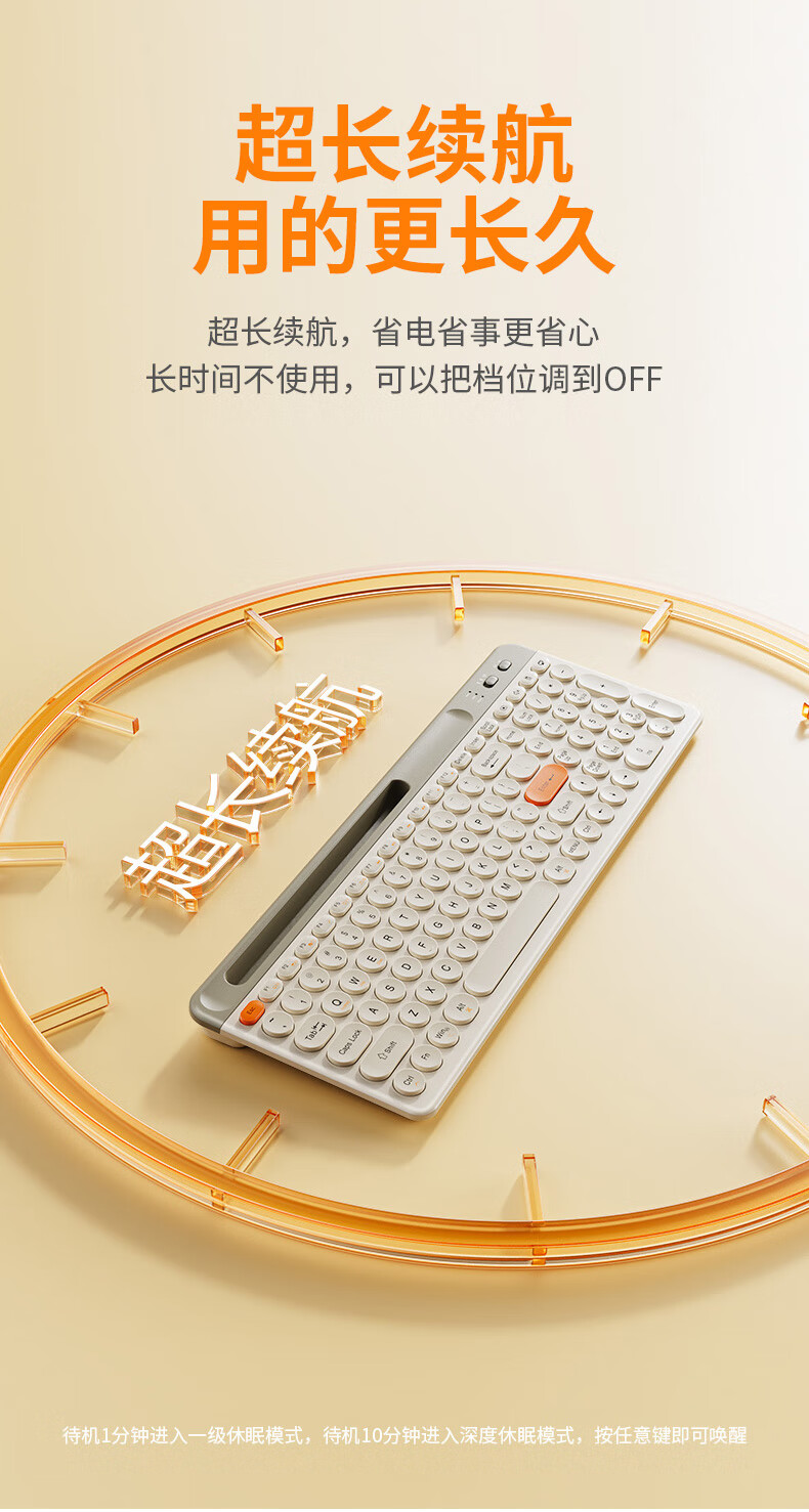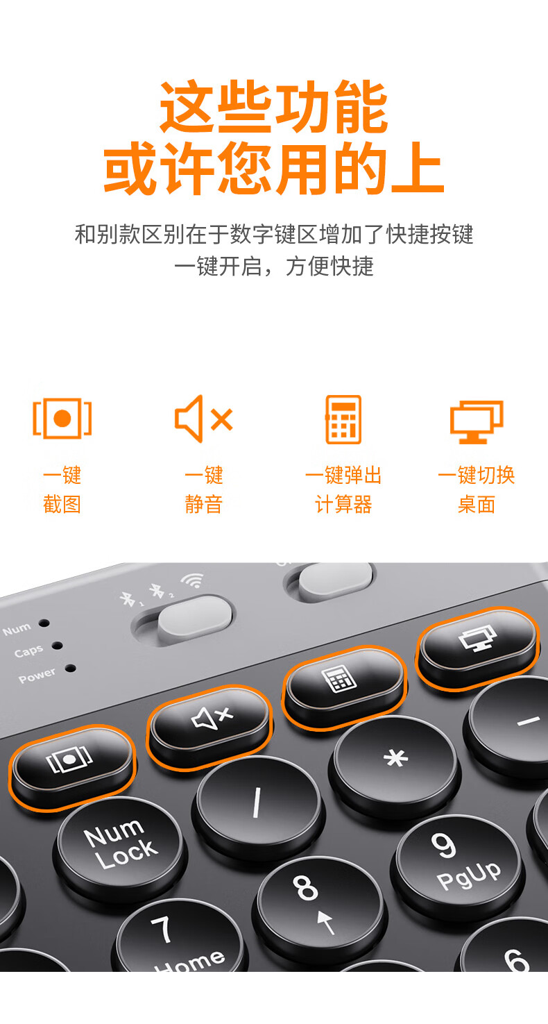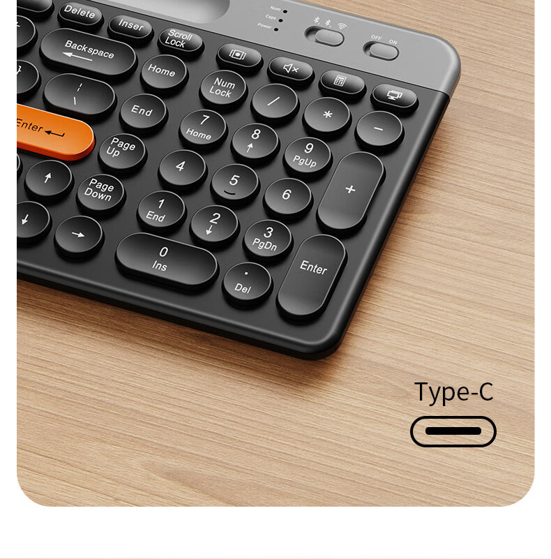 Yunmo (YUNMO) rechargeable wireless Bluetooth keyboard and mouse set dual-mode retro round hat quiet light sound desktop computer laptop mobile phone tablet universal typing peripheral retro white single keyboard [Bluetooth + wireless dual-mode + one-key multimedia] lightless