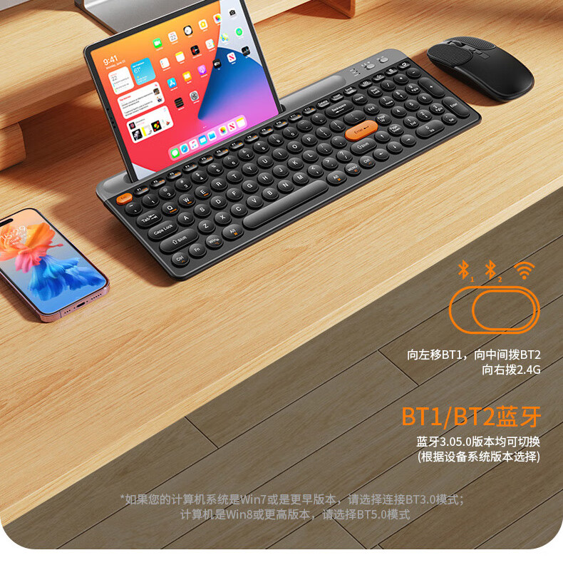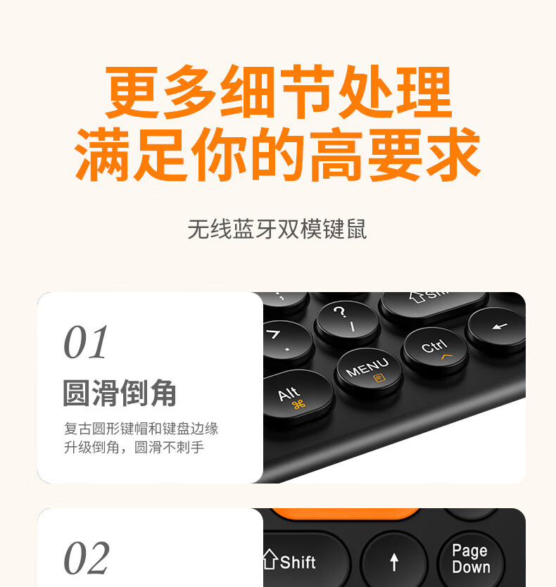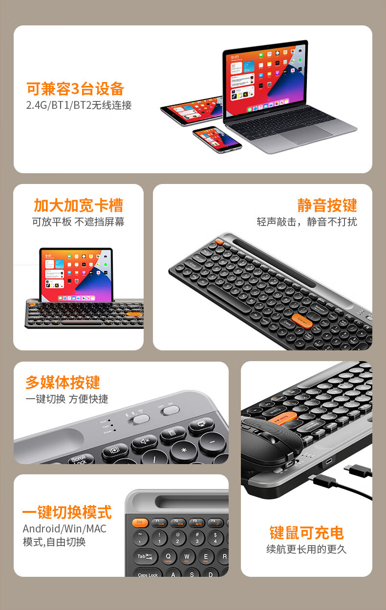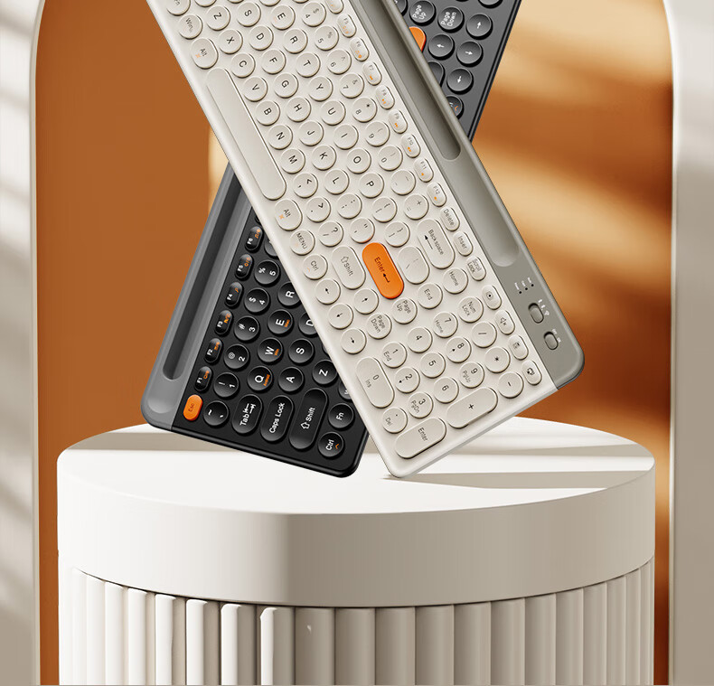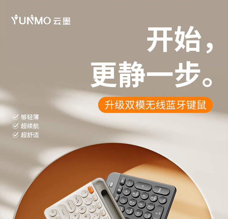 Yunmo (YUNMO) rechargeable wireless Bluetooth keyboard and mouse set dual-mode retro round hat quiet light sound desktop computer laptop mobile phone tablet universal typing peripheral retro white single keyboard [Bluetooth + wireless dual-mode + one-key multimedia] lightless