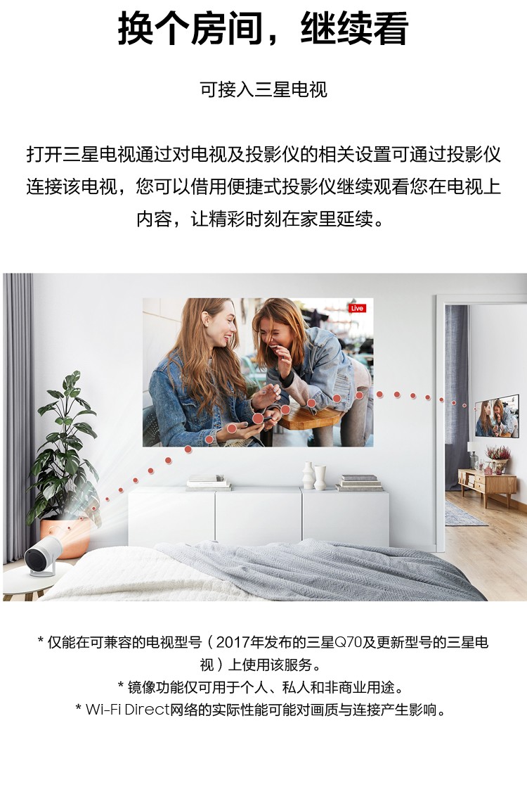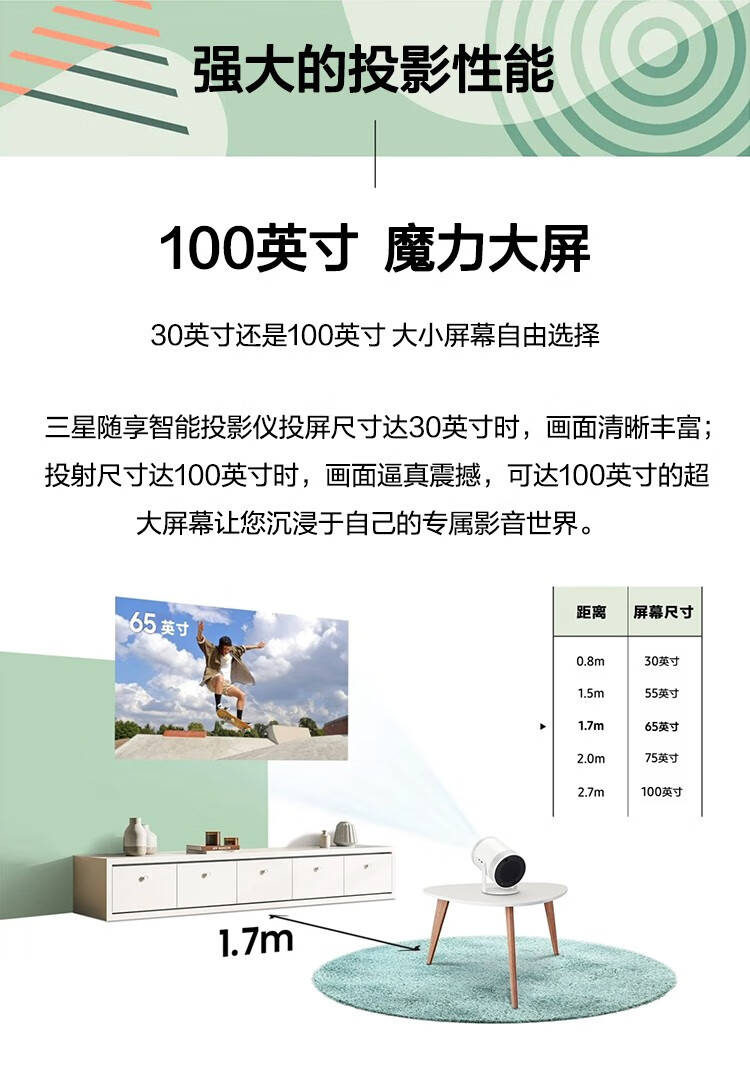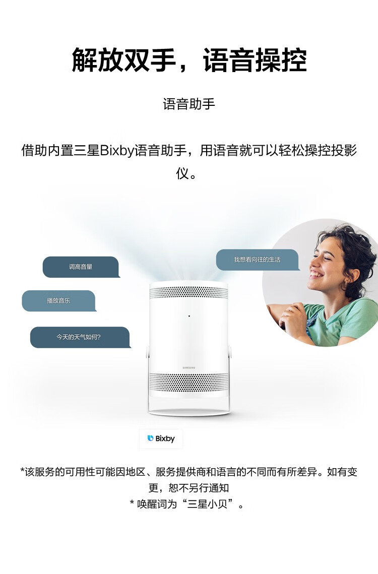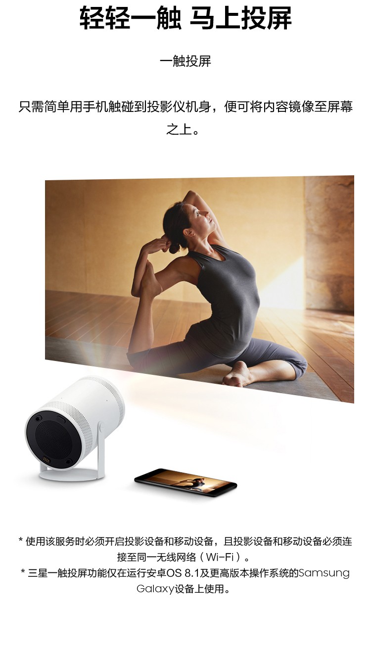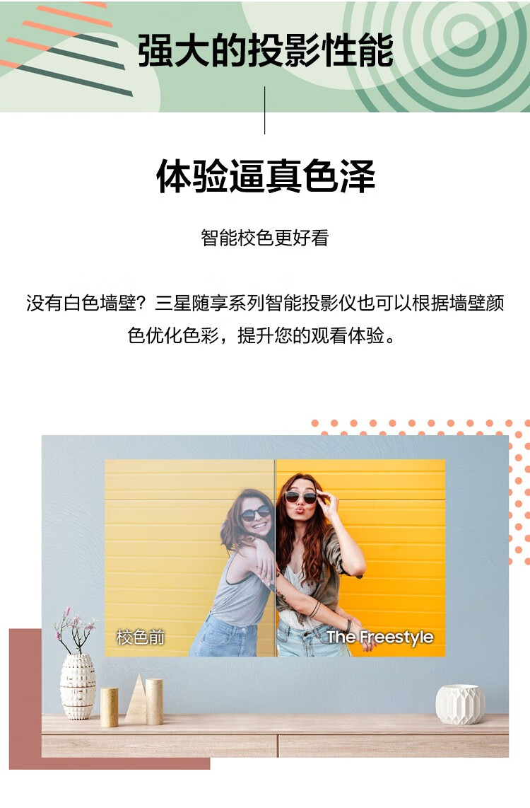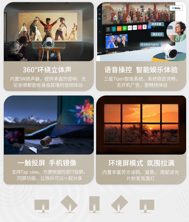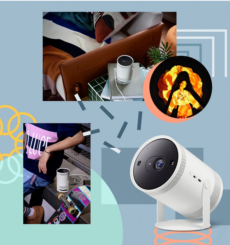 Samsung (SAMSUNG) The Freestyle Smart Projector Portable PTZ Projector Ceiling Bedroom Living Room Home Wall Projector Can Rotate 180 Degrees Samsung Projector