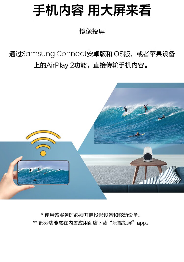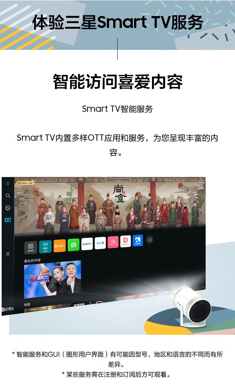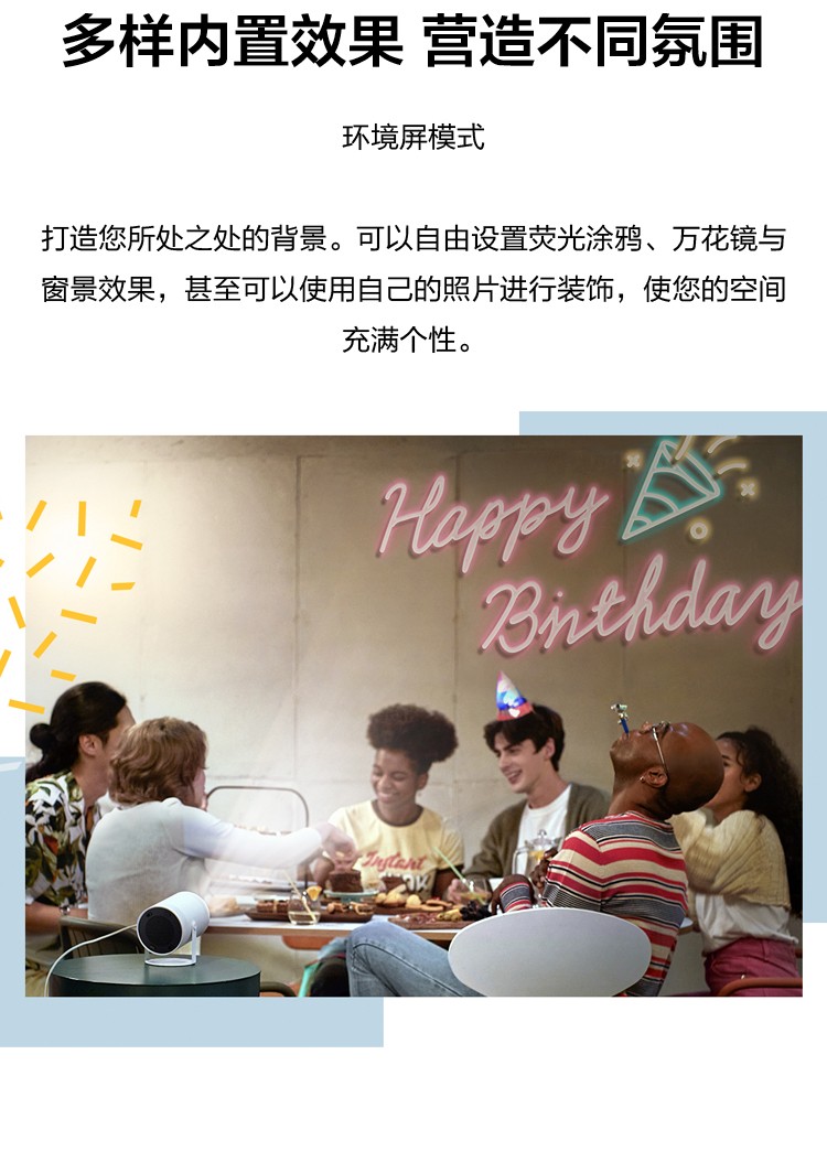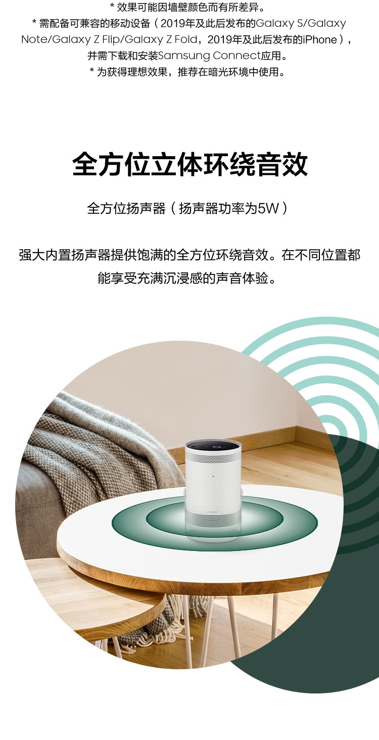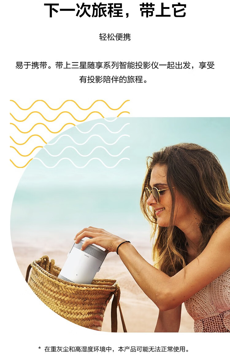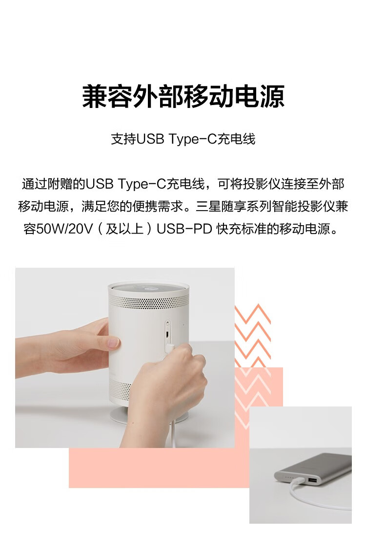 Samsung (SAMSUNG) The Freestyle Smart Projector Portable PTZ Projector Ceiling Bedroom Living Room Home Wall Projector Can Rotate 180 Degrees Samsung Projector
