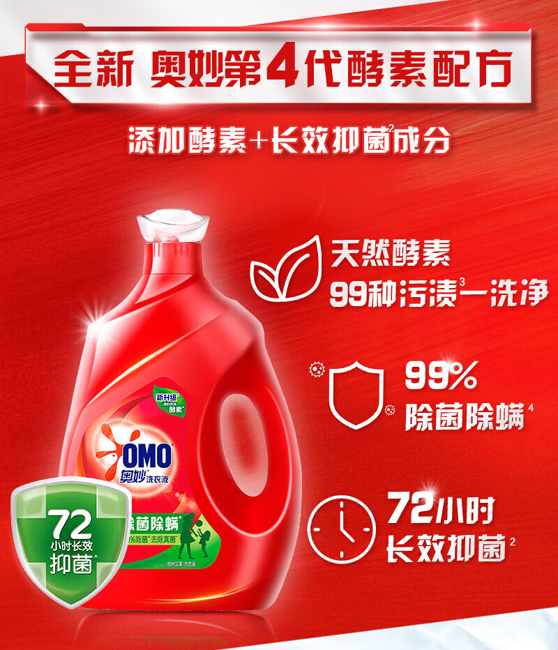 Omo Laundry Detergent, long-lasting fragrance, sterilization and mite removal, family pack, 3KG (bottle), sterilization and mite removal