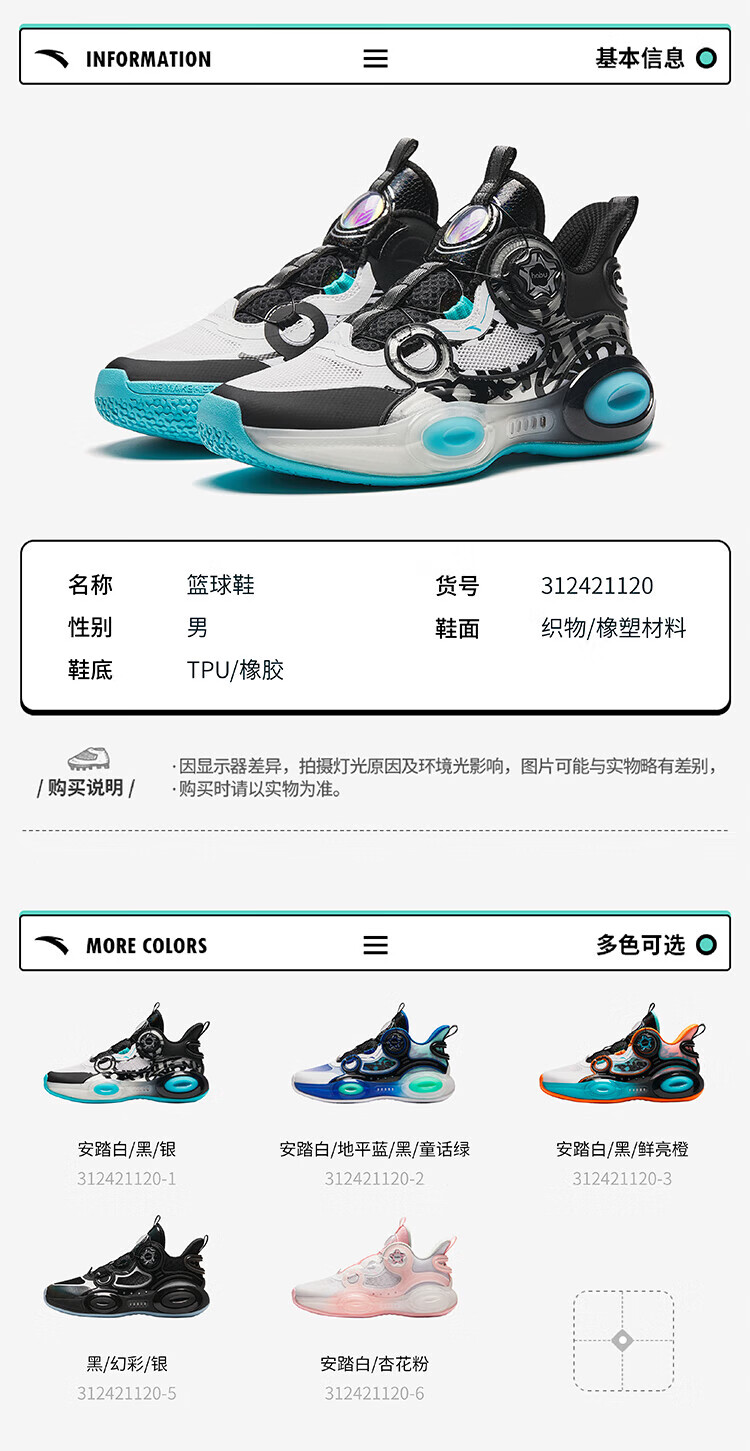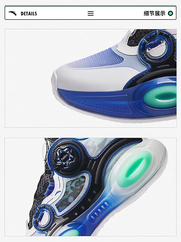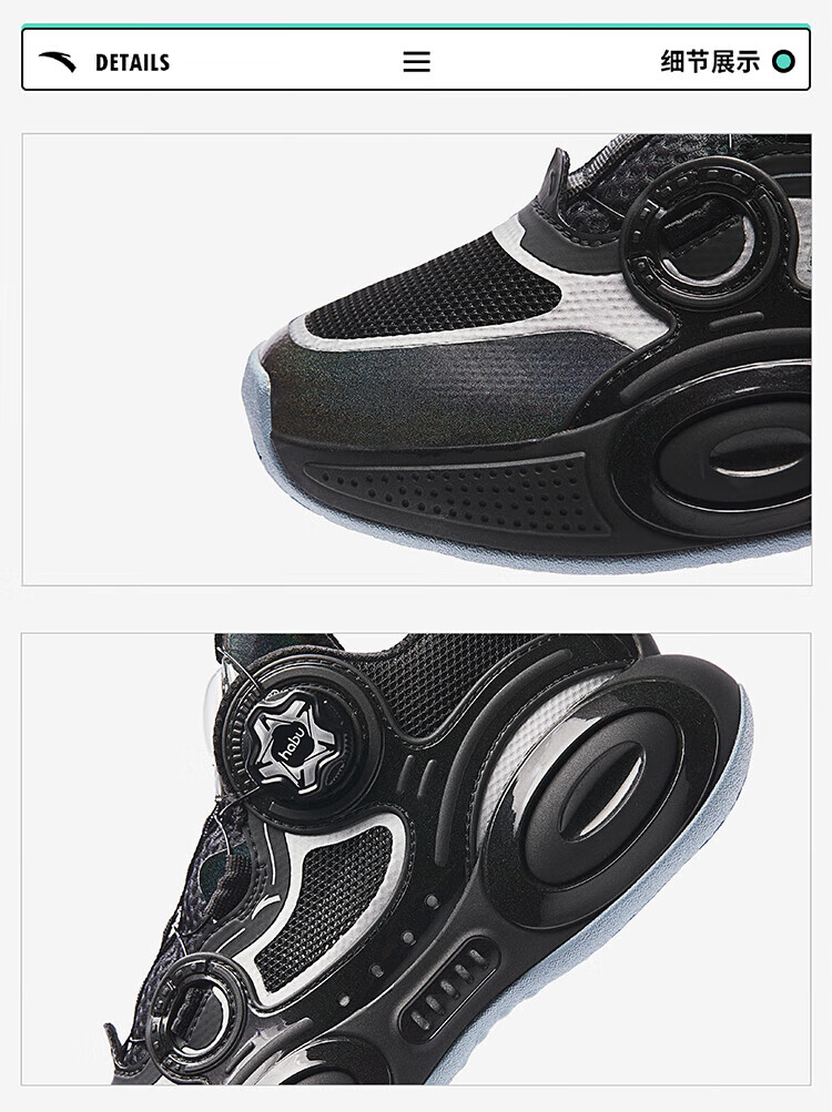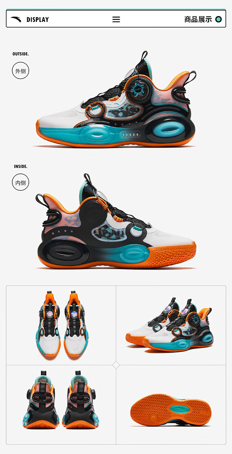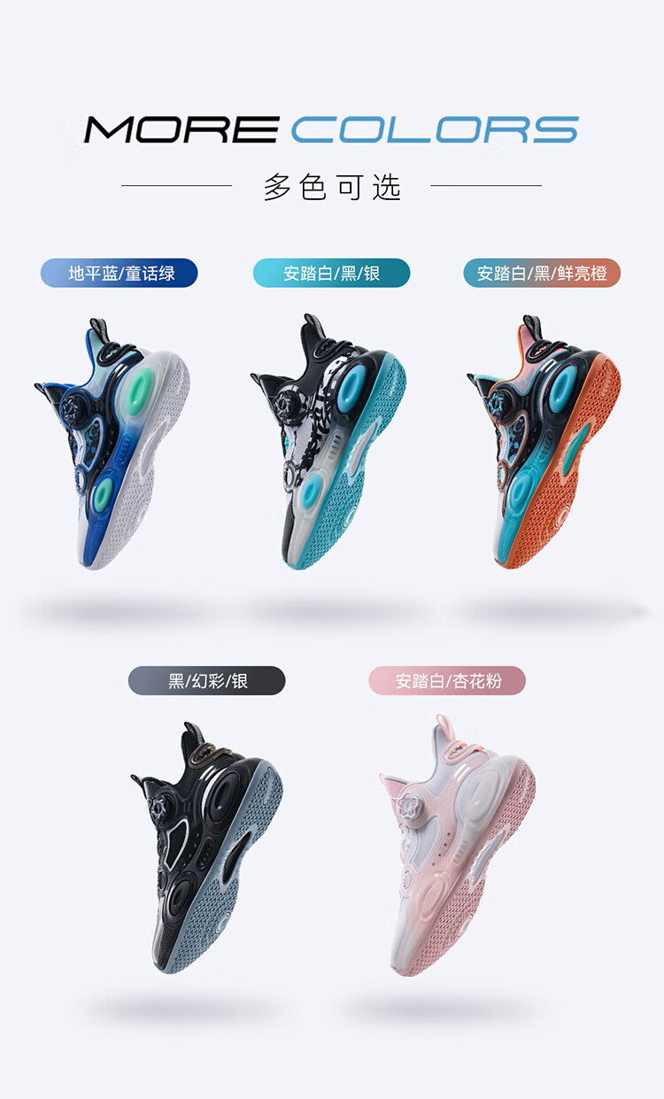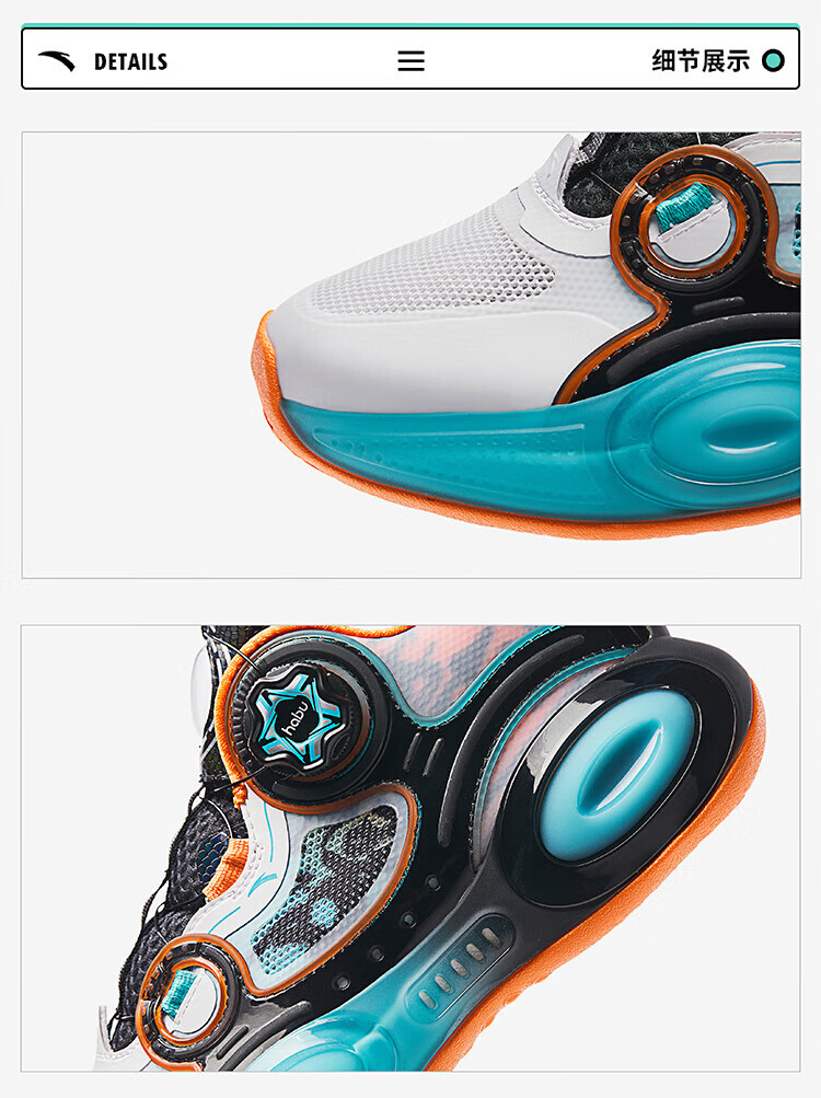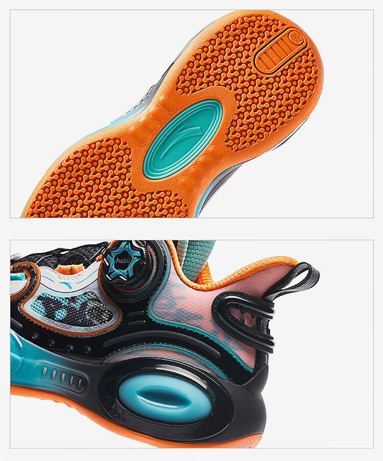 ANTA basketball shoes for children, boys and older children, new breathable running shoes, children's shoes, non-slip sports shoes, wear-resistant running shoes for middle and older children, black/ANTA white/natural orange/pool blue-1 38