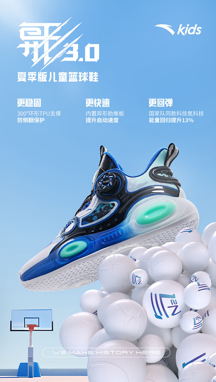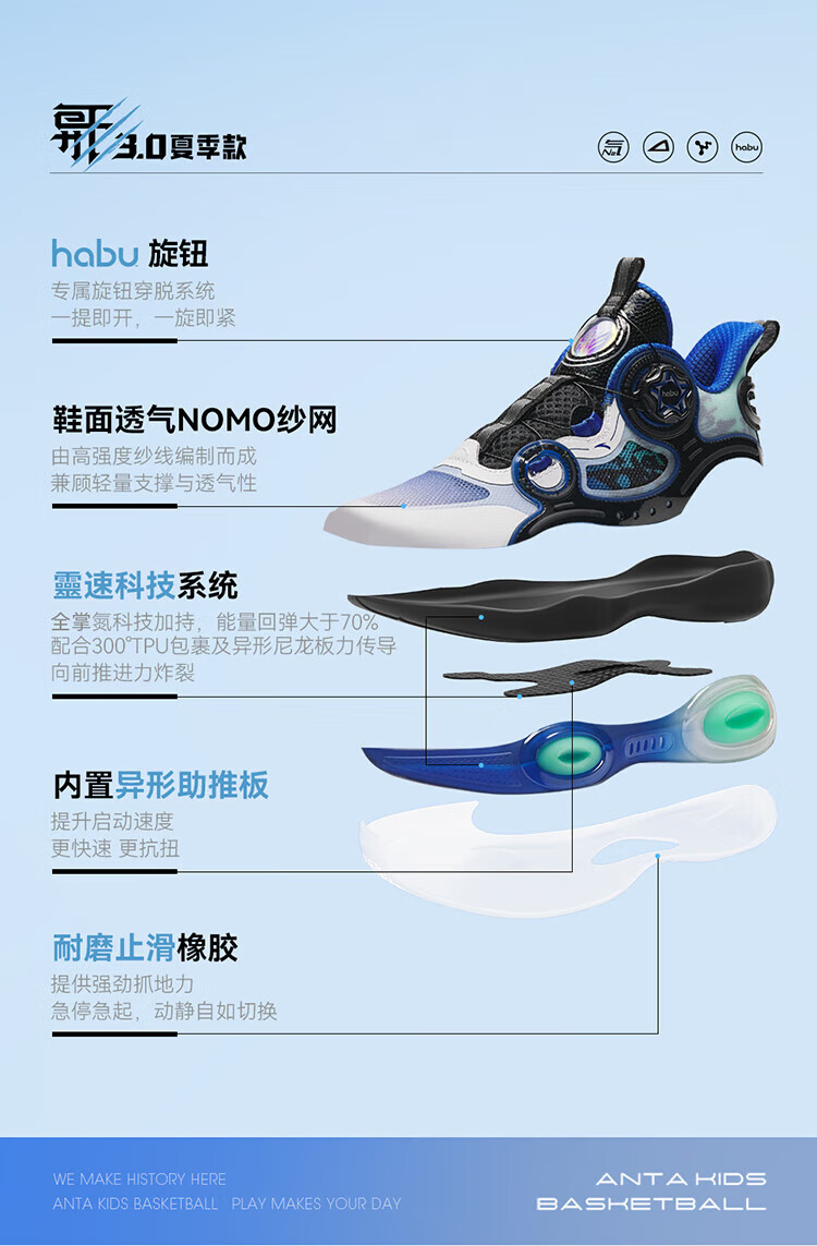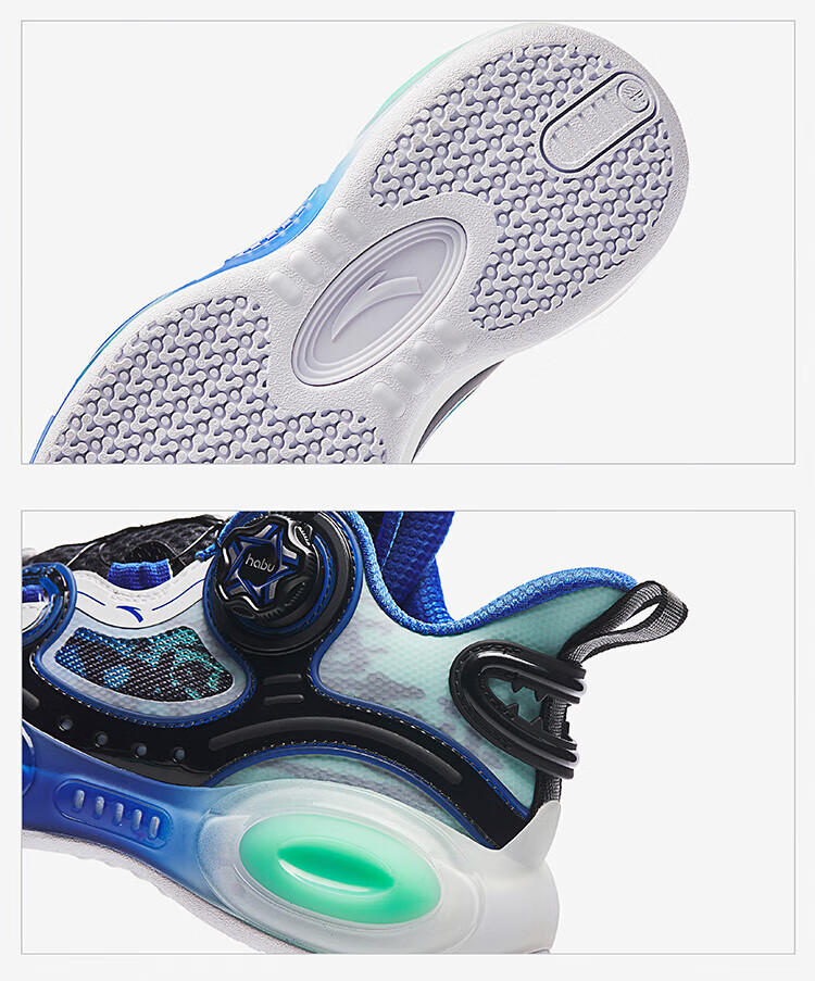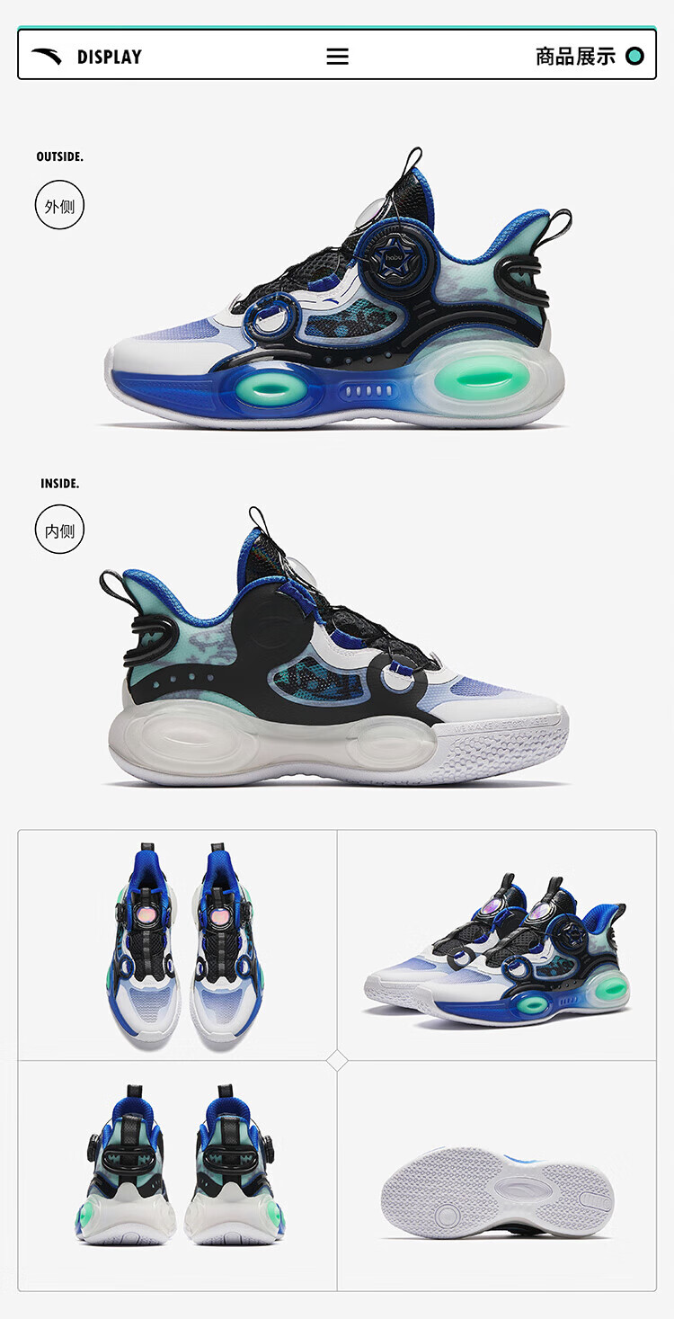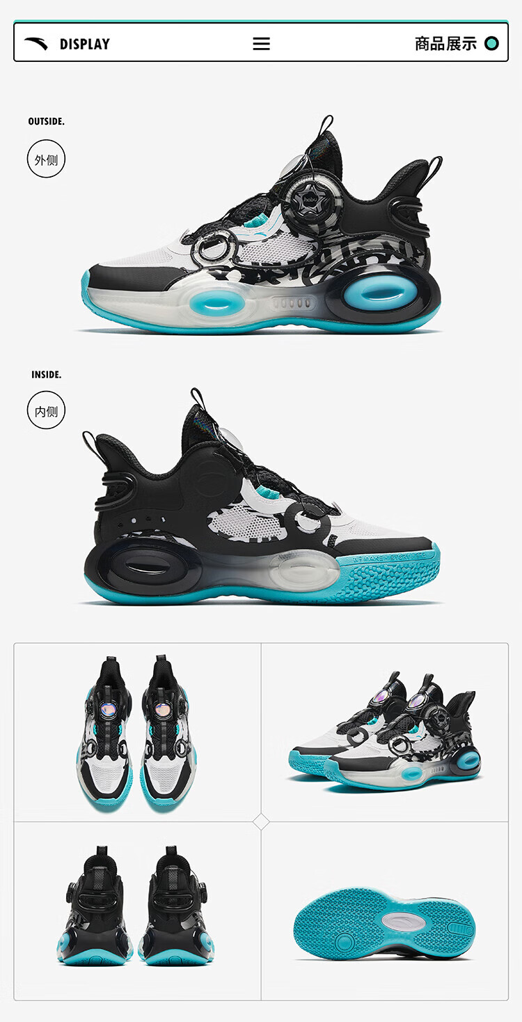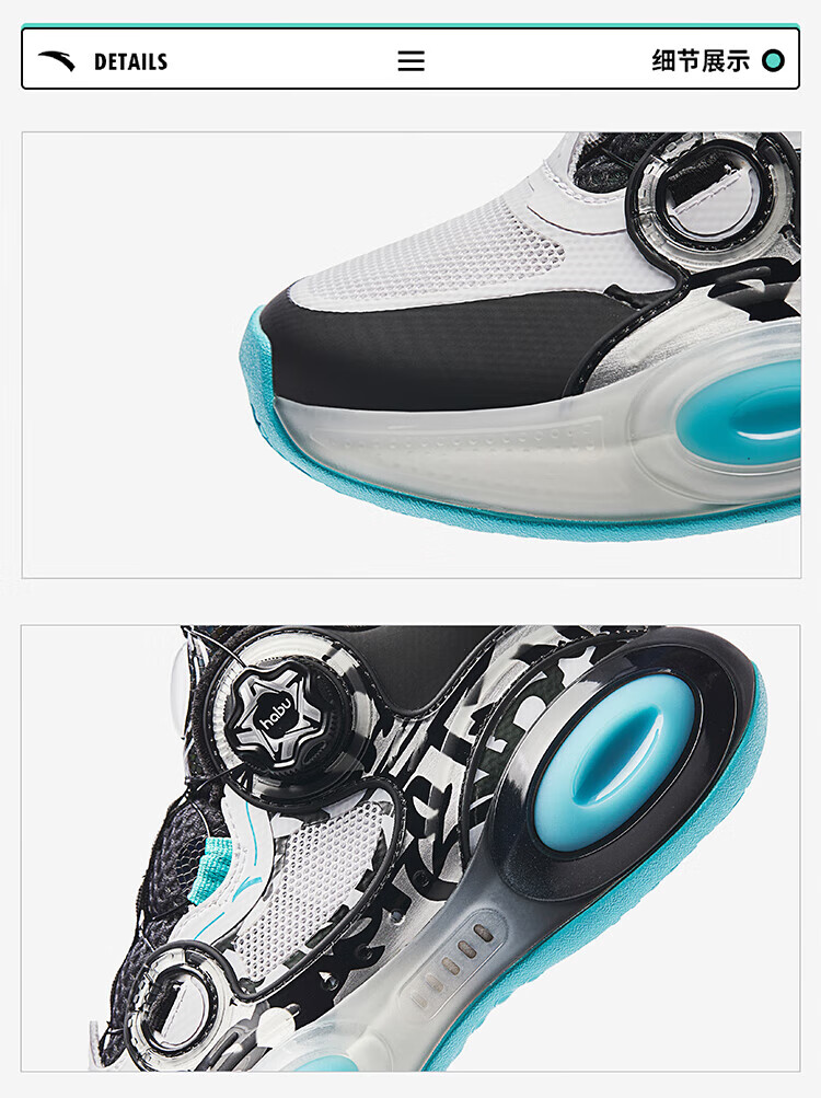 ANTA basketball shoes for children, boys and older children, new breathable running shoes, children's shoes, non-slip sports shoes, wear-resistant running shoes for middle and older children, black/ANTA white/natural orange/pool blue-1 38
