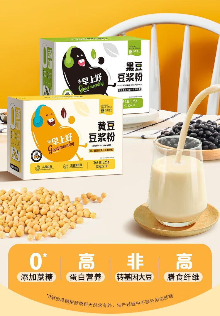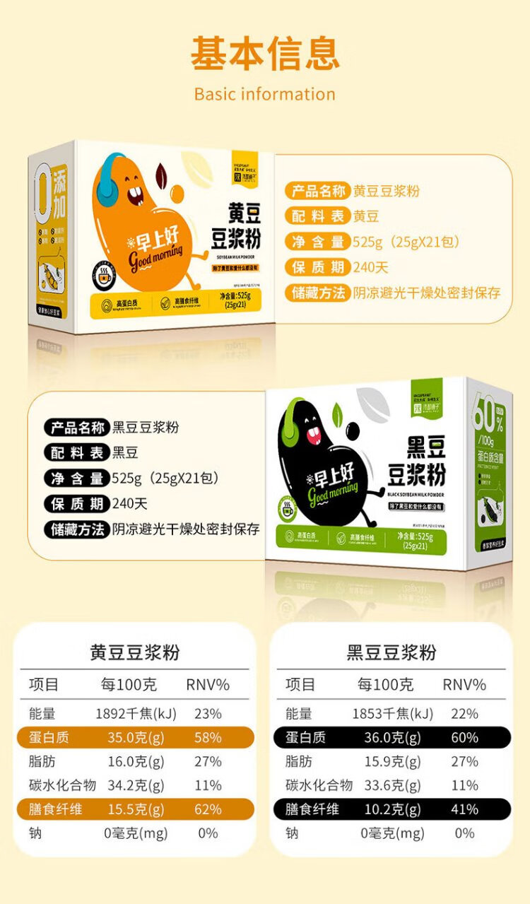 Biandupuzi pure black bean soy milk powder independent package equipment 0 sucrose added pregnant fat soybean powder original flavor women's fat new year gift box 21 packs black + 21 packs soybean milk powder total 1050g