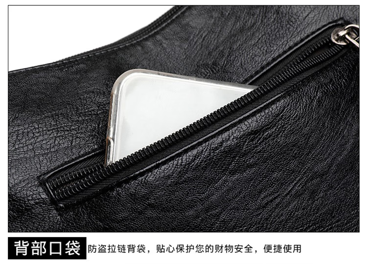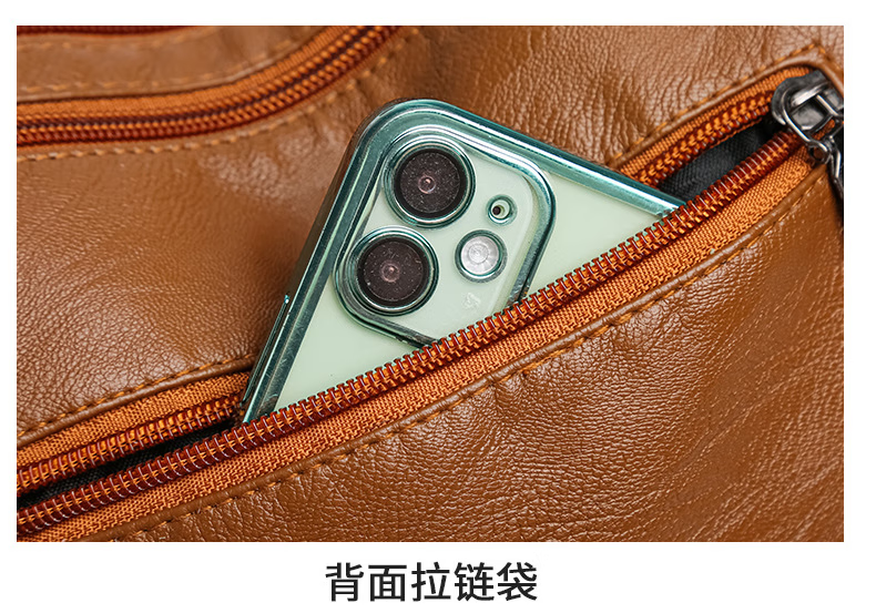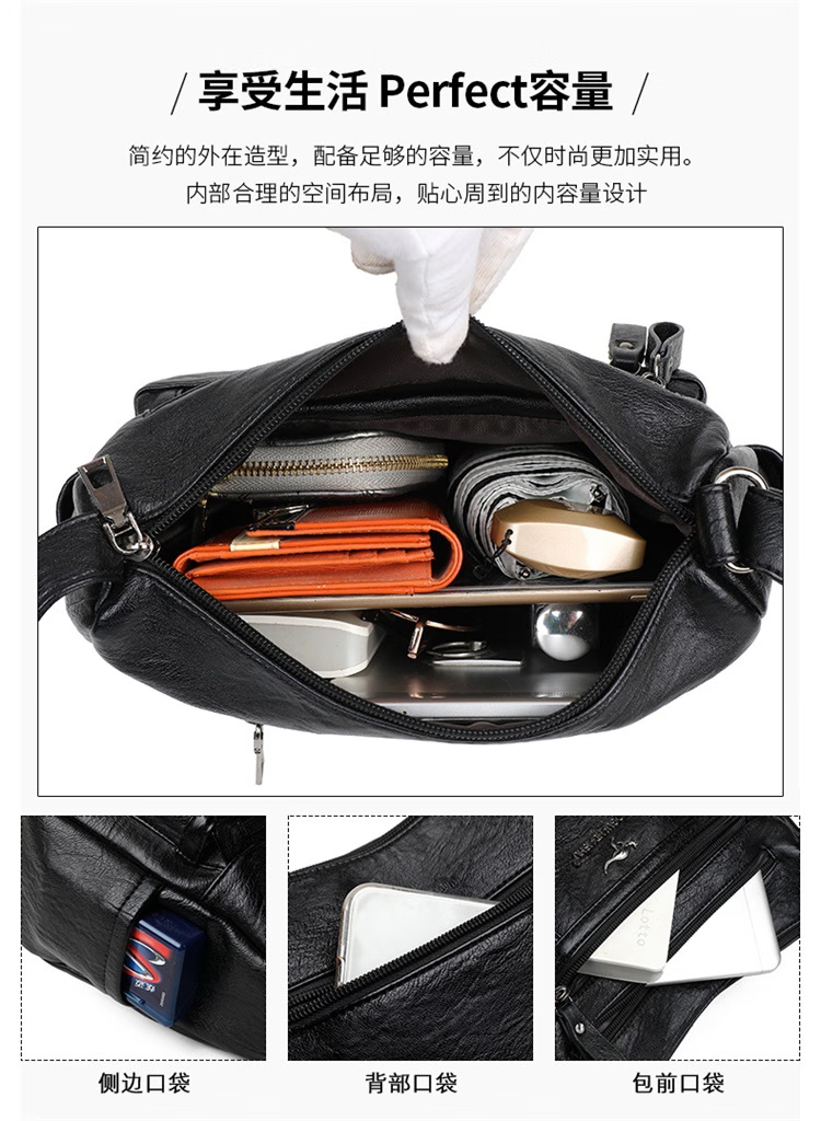 轻鸥2025新款软皮女包潮妈妈大容量软皮大气中老年单肩斜挎包FSG  k686复古潮流拉链-黑色