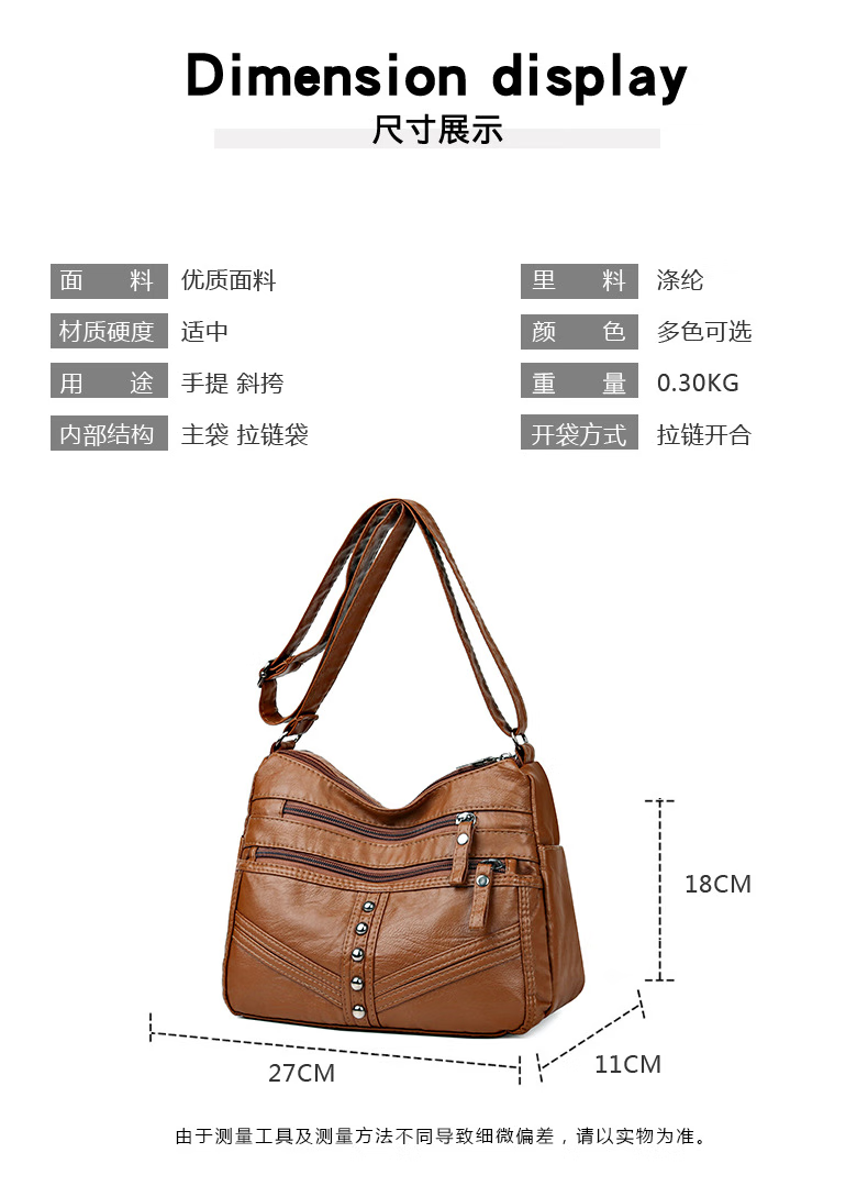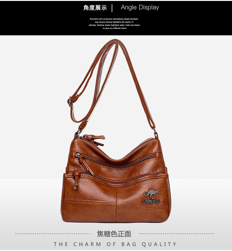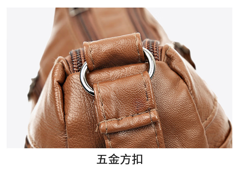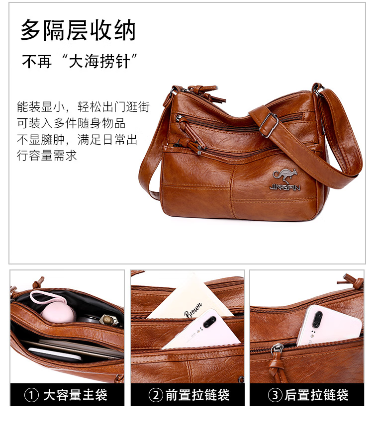 轻鸥2025新款软皮女包潮妈妈大容量软皮大气中老年单肩斜挎包FSG k686复古潮流拉链-黑色