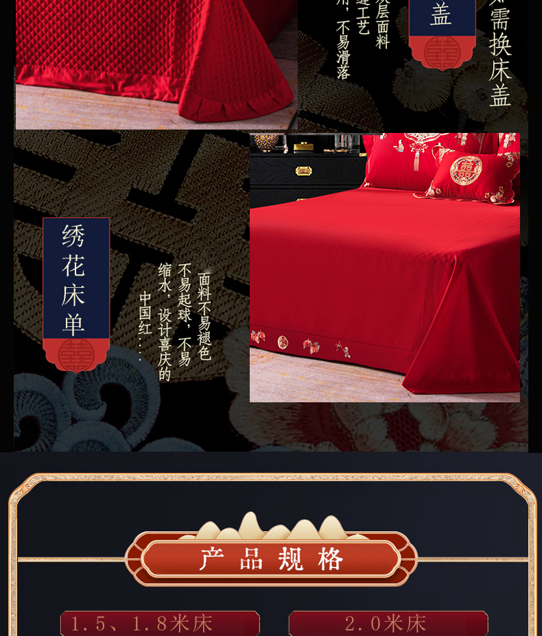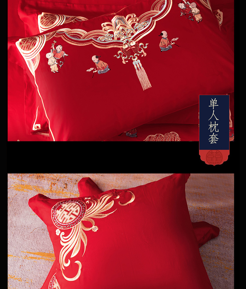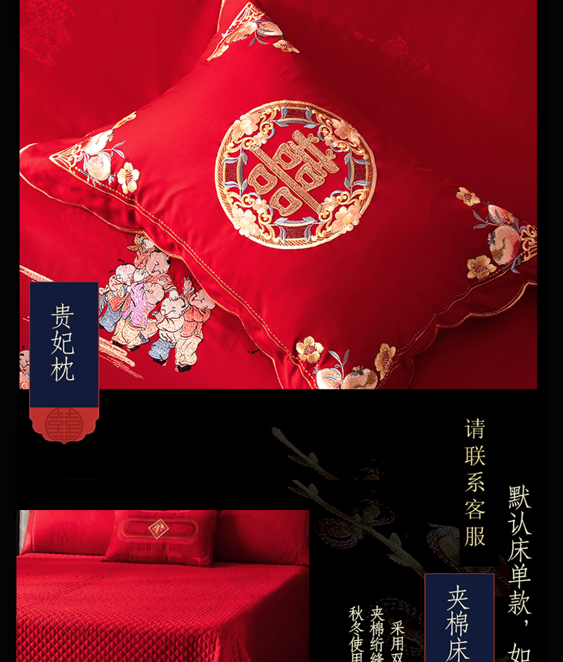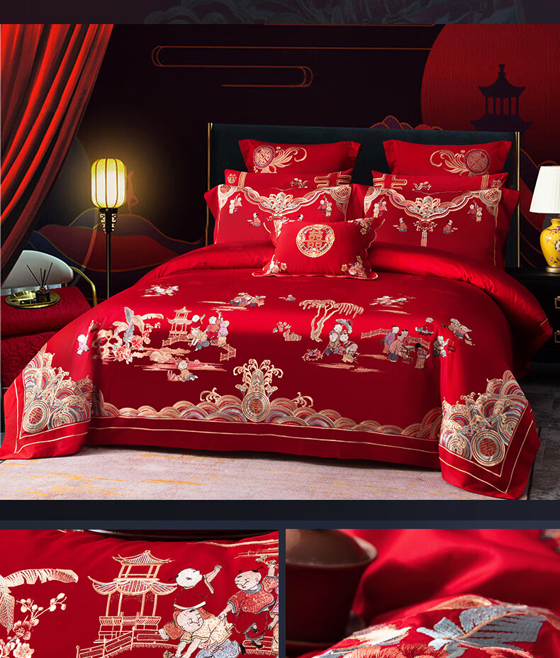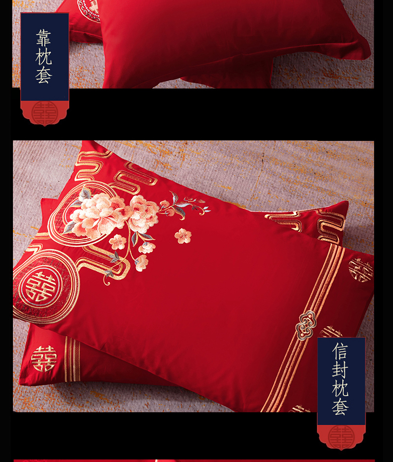 NOAHER Home Textiles Four-piece wedding bedding set 100-count long-staple cotton heavily embroidered wedding multi-piece set Newlyweds festive bedding pure cotton set Sheet style four-piece set 2.0m (6.6 feet) bed (220 240 quilt sets)
