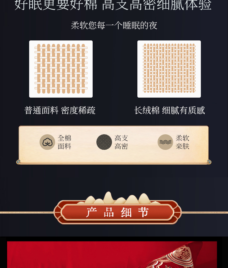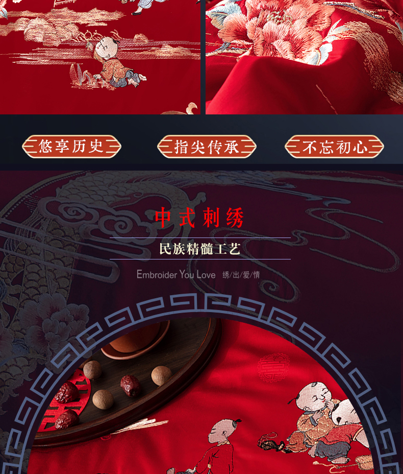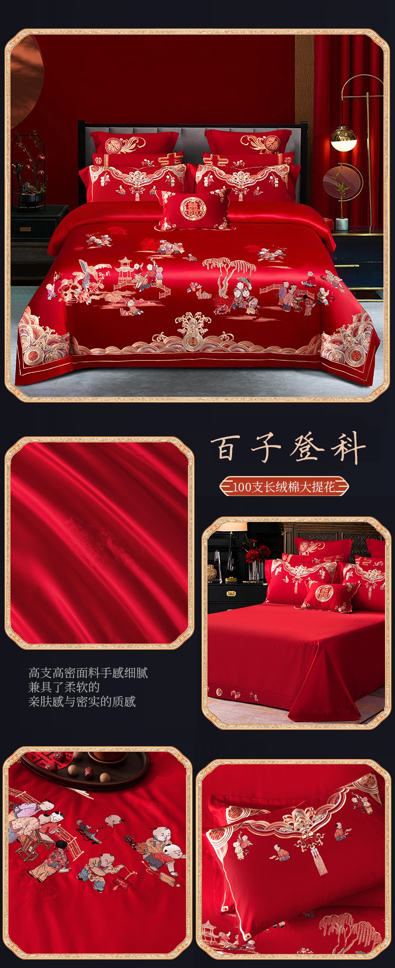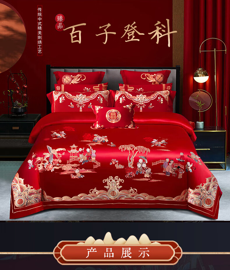 NOAHER Home Textiles Four-piece wedding bedding set 100-count long-staple cotton heavily embroidered wedding multi-piece set Newlyweds festive bedding pure cotton set Sheet style four-piece set 2.0m (6.6 feet) bed (220 240 quilt sets)