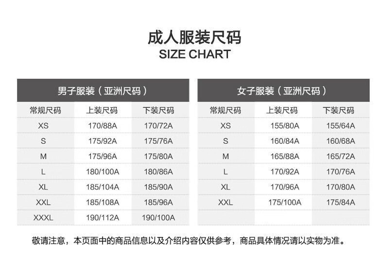 China (cm) 160-165/84-86 165-170 / 88-90 167-172 / 92-96 168-173 / 98-102 170-176 / 106-110