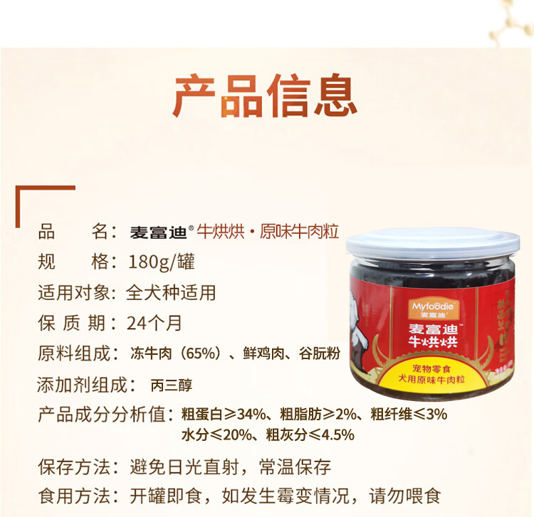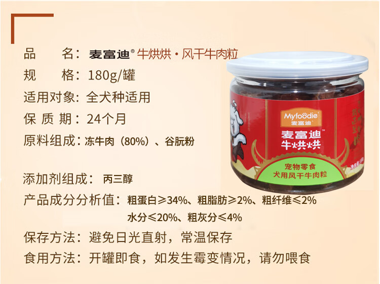 Maifudi dog snacks beef baking beef pellets adult dog puppies teeth grinding jerky training rewards pet snacks air-dried beef pellets/180g