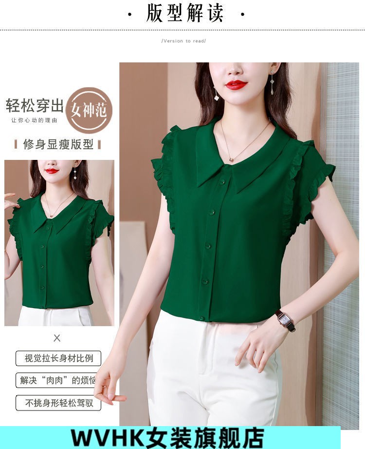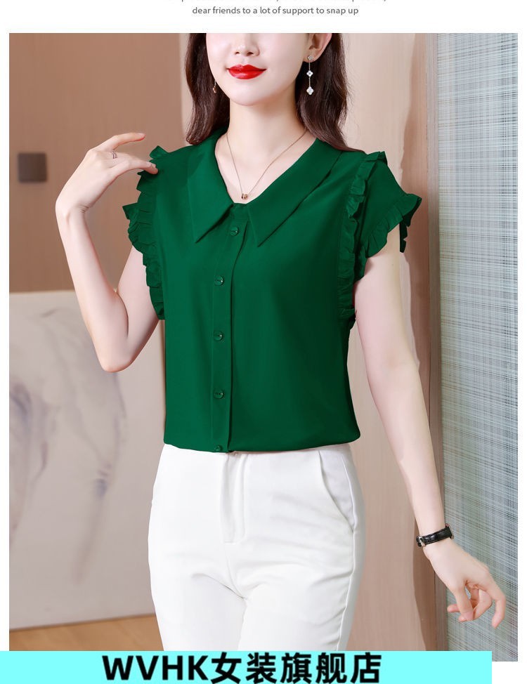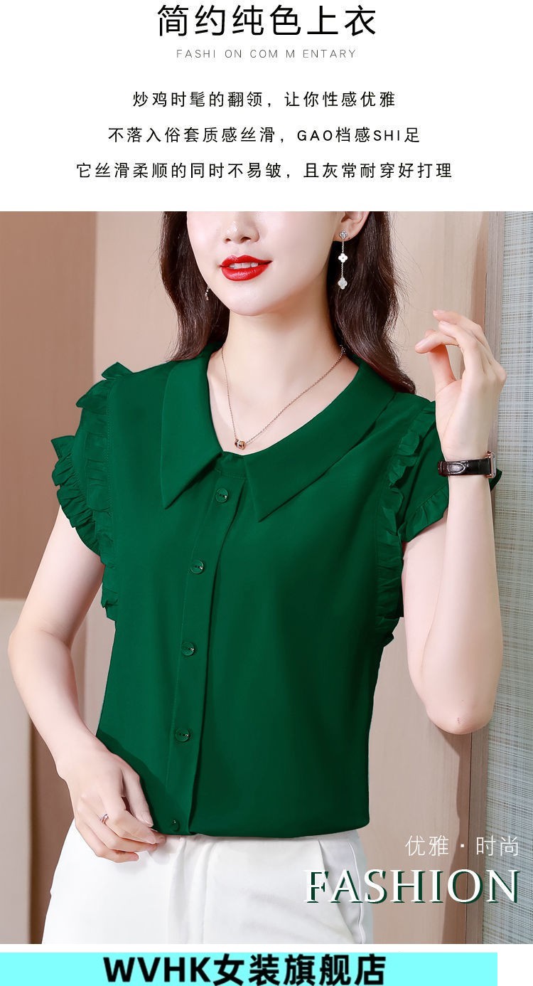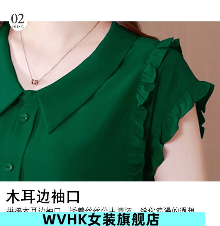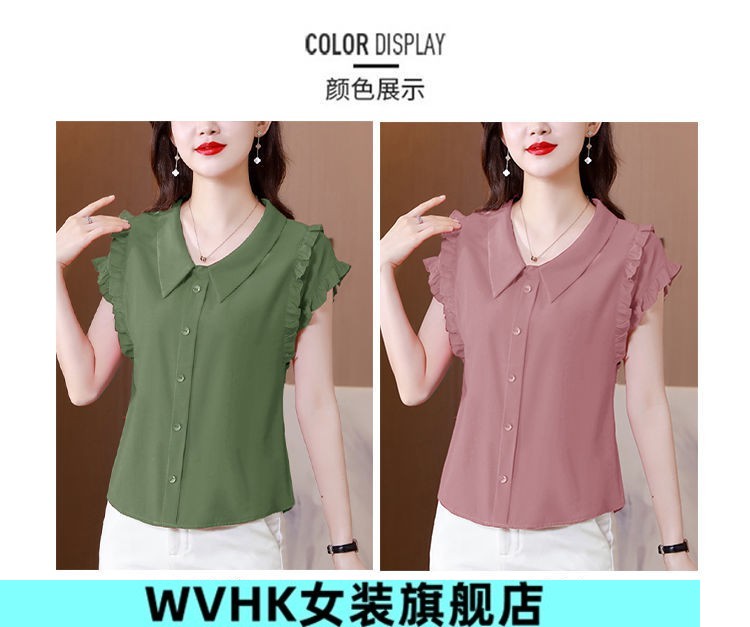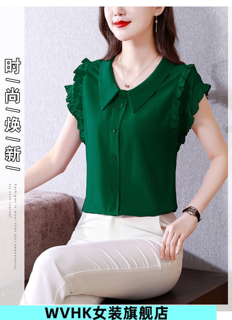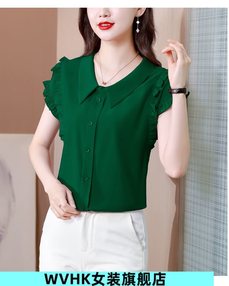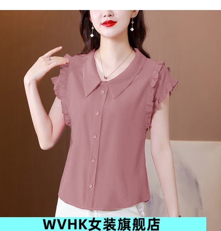 WVHK high-end light luxury chiffon shirt women's short-sleeved summer new style solid color versatile shirt loose slim top 6218 leather pink L (recommended 100-110 Jin Jin equals 0.5 kg)