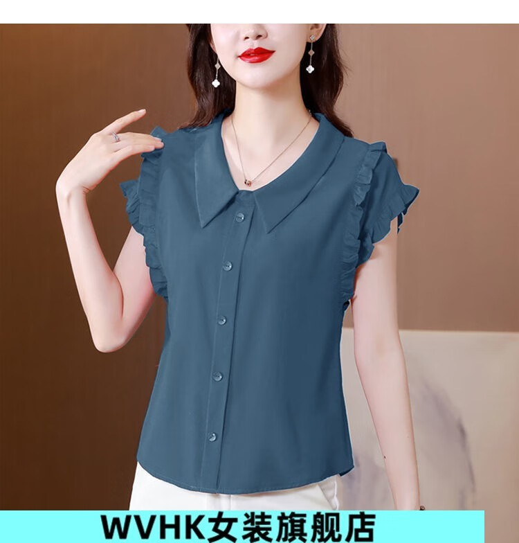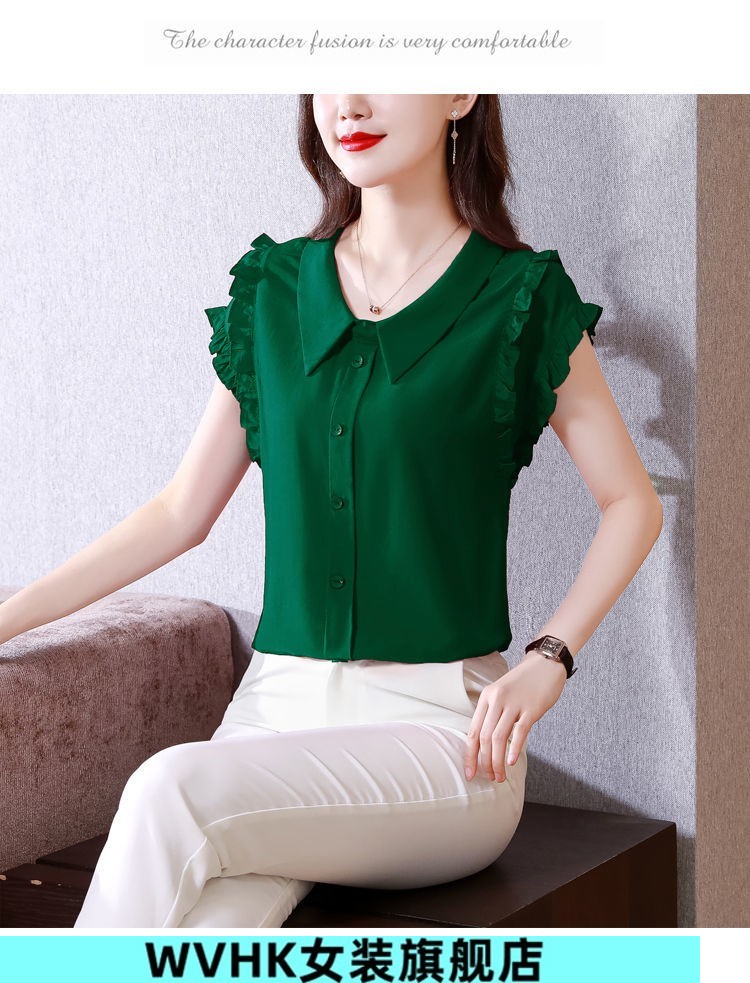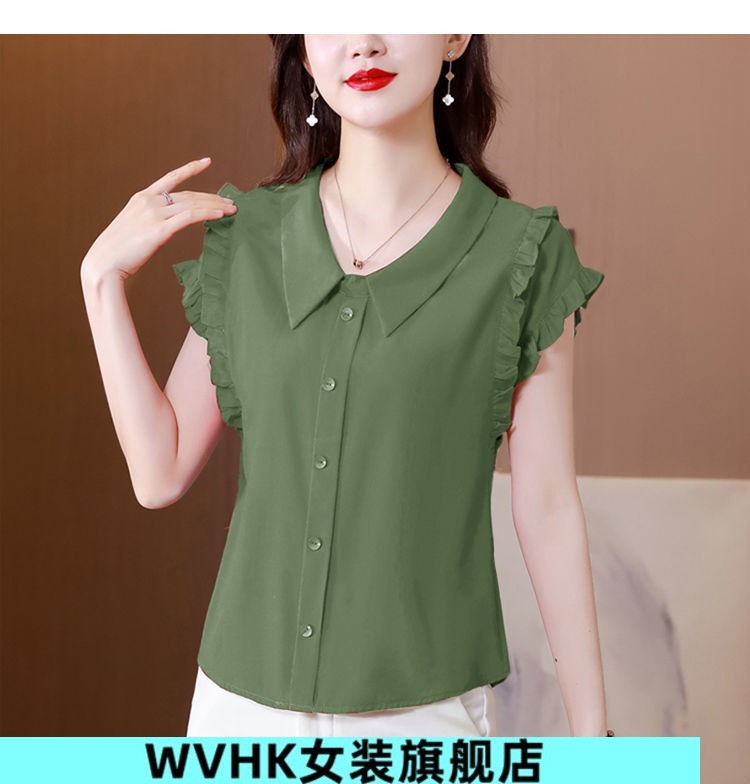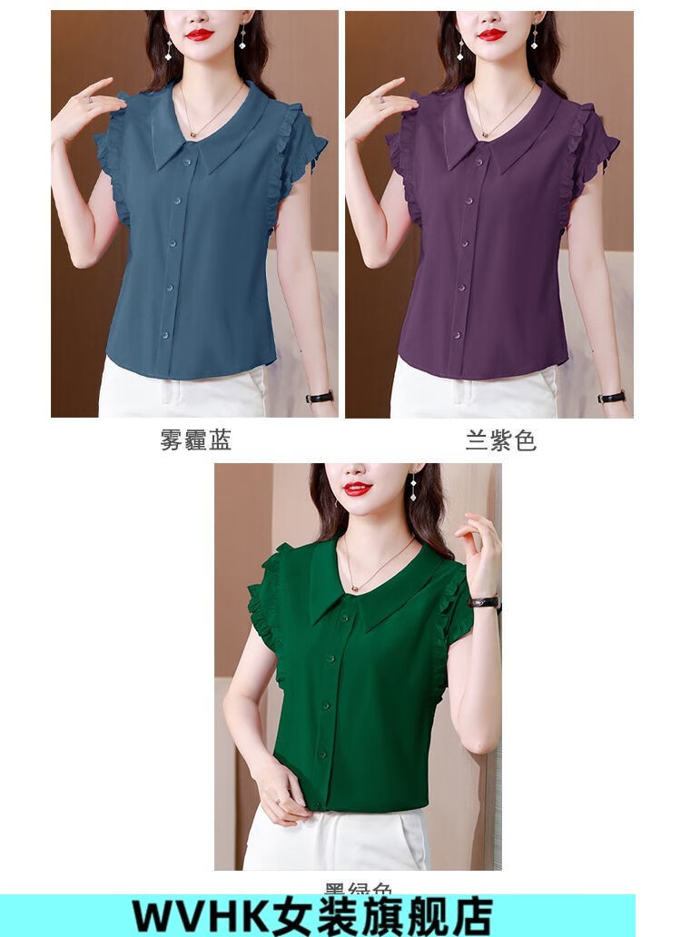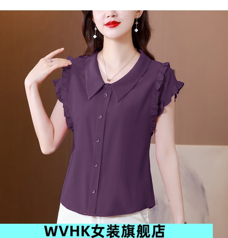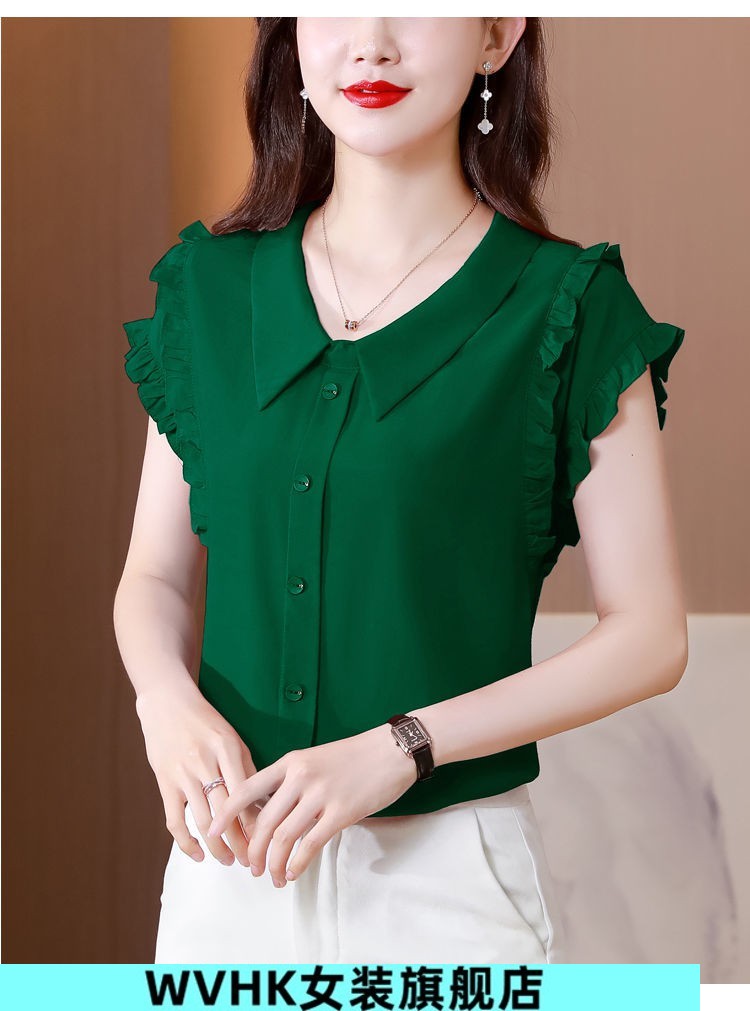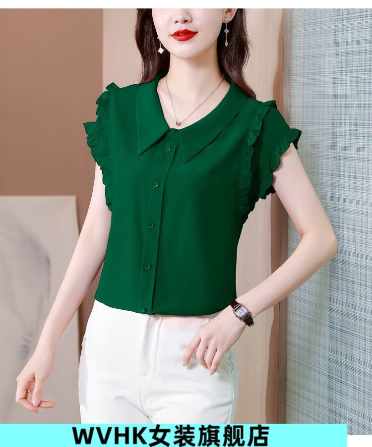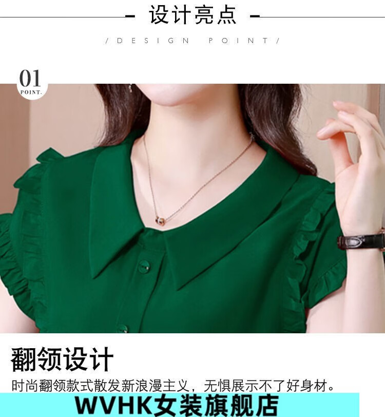WVHK high-end light luxury chiffon shirt women's short-sleeved summer new style solid color versatile shirt loose slim top 6218 leather pink L (recommended 100-110 Jin Jin equals 0.5 kg)
