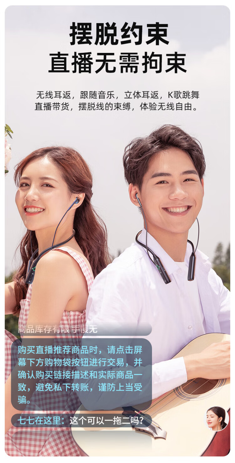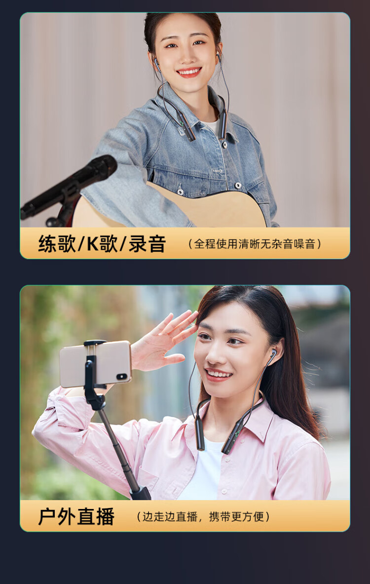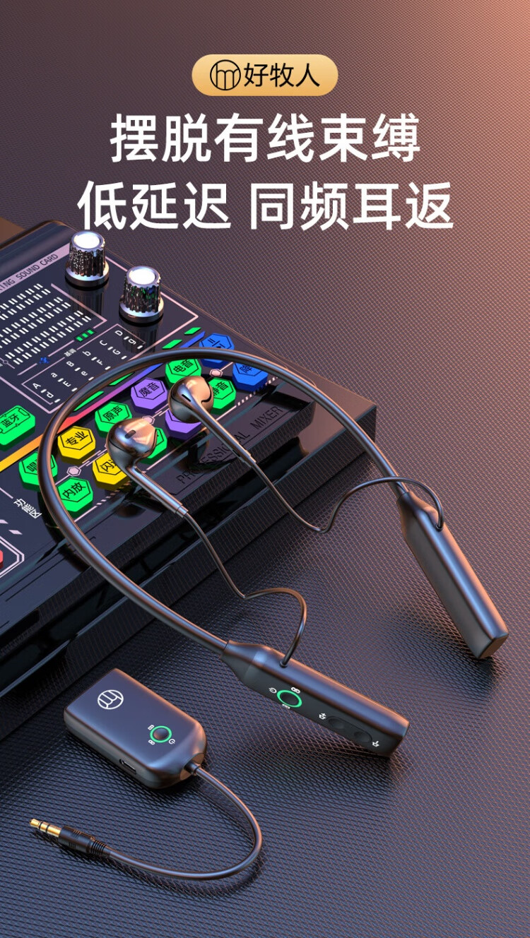 Good Shepherd, Internet celebrity live broadcast wireless monitoring headphones, Douyin outdoor live broadcast, singing and recording ear-return neck type Bluetooth noise-cancelling sports anchor headset in-ear style, sound card, exclusive version, wireless listening headphones [one drag and one]