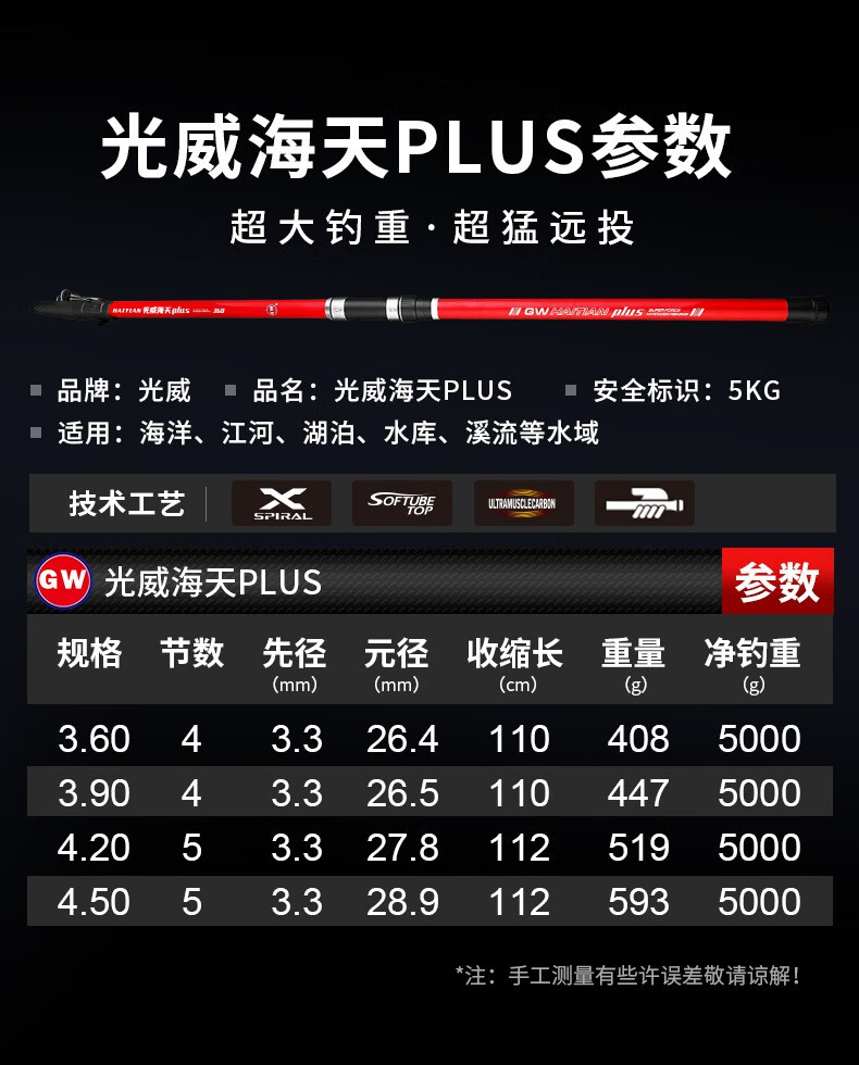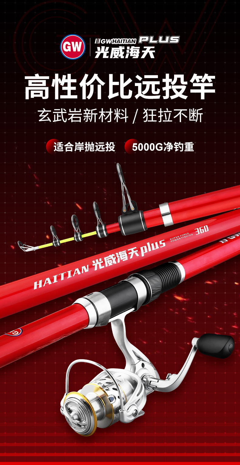 Guangwei (GW) Guangwei Haitian plus sea rod set 3.63.9 4.2 meters carbon super hard long-range throwing rod sea fishing rod throwing rod 4.2m Haitian plus