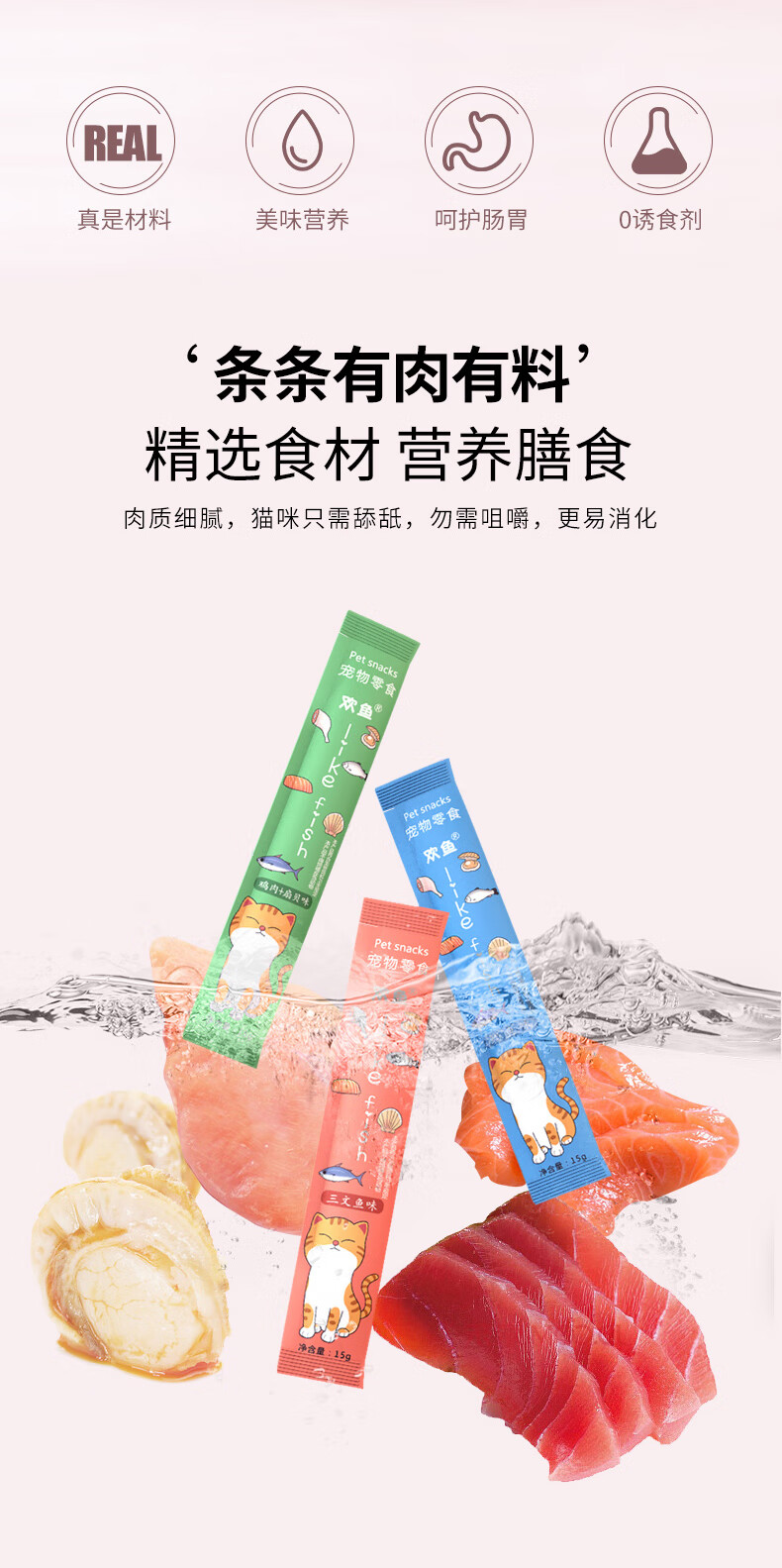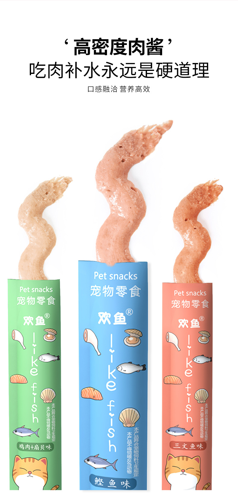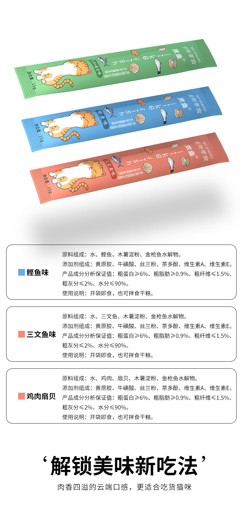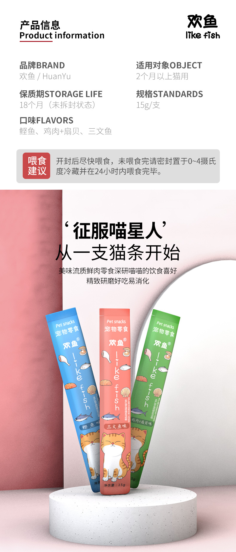 Huanyu Cat Snacks, Nutritional Hair Food for Adults and Kittens, Wet Food Mixed Flavor, Salmon Flavor丨15g*15 Count