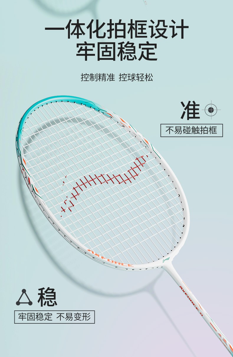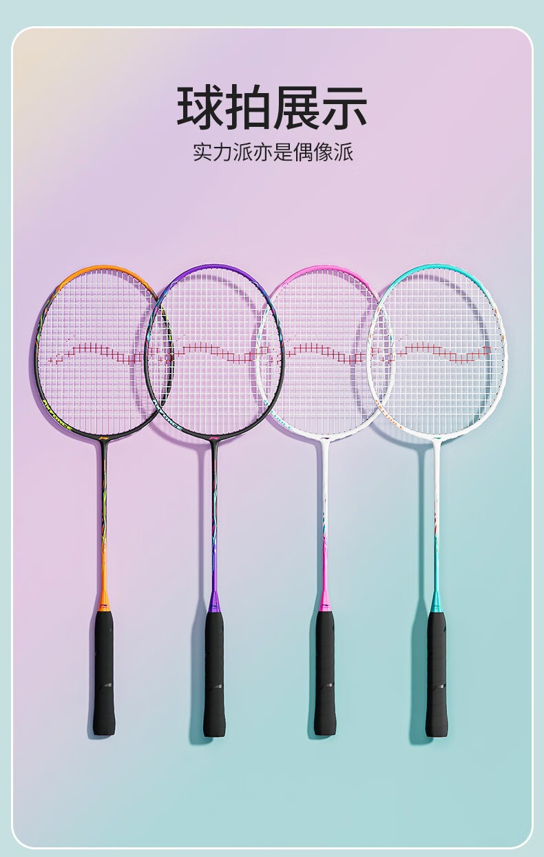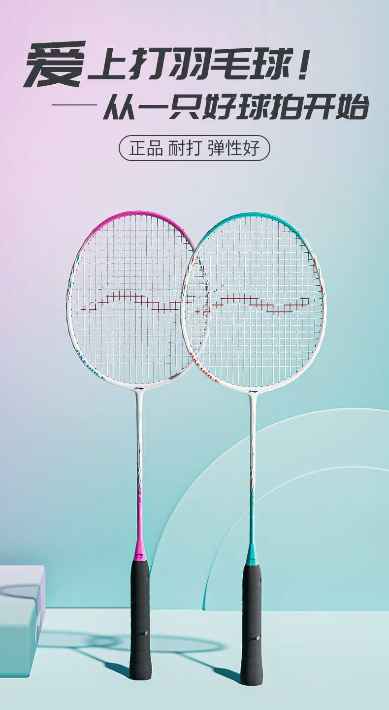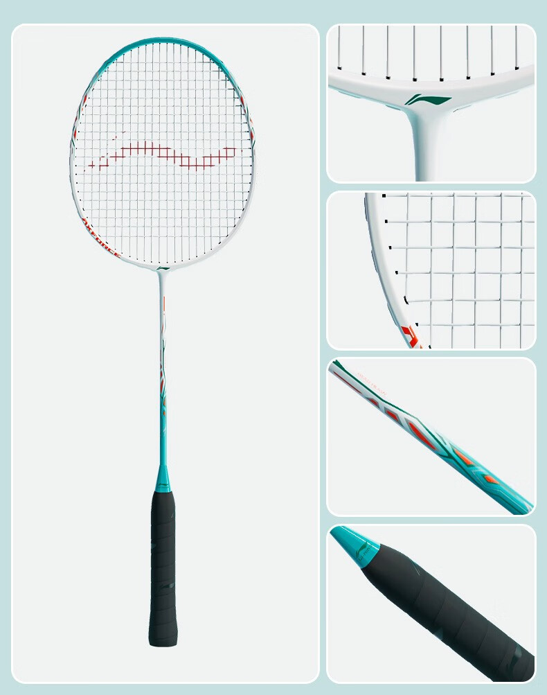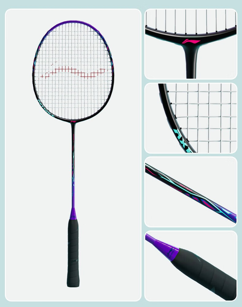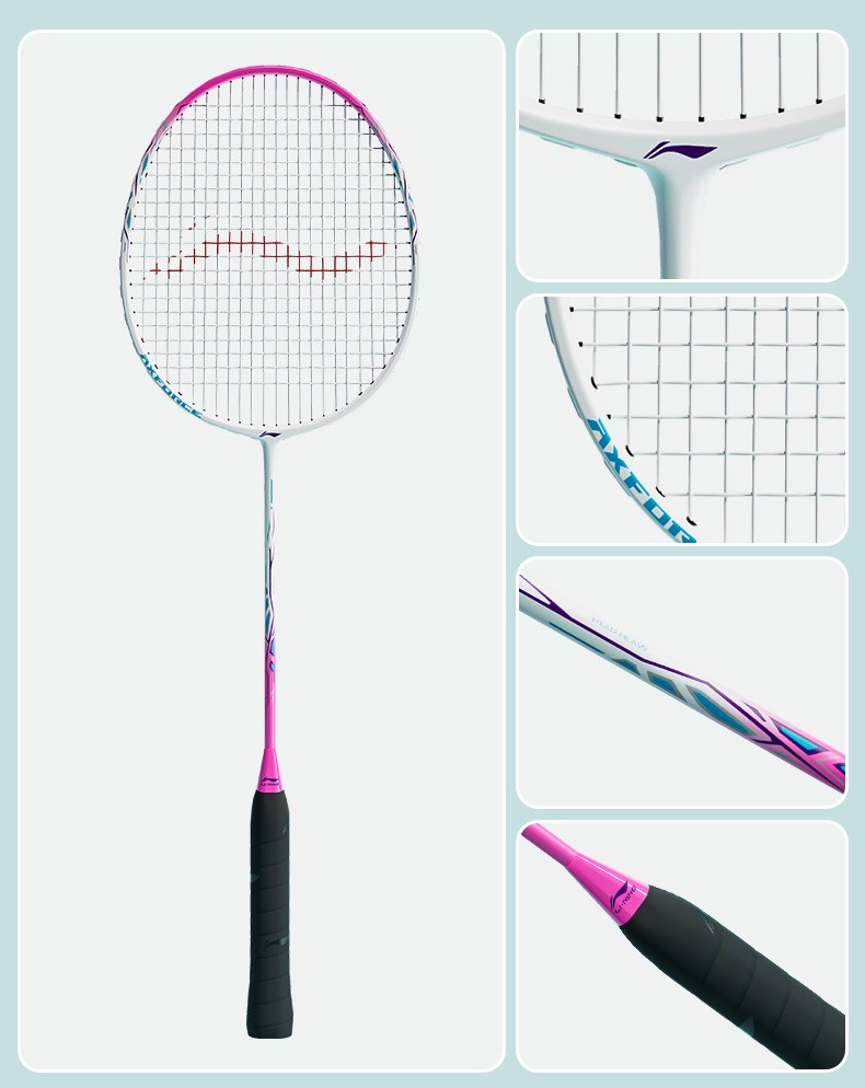 Raqueta de bádminton Li Ning Thunder 9 compuesto de carbono duradero entrenamiento recomendado de nivel básico raqueta única todo en uno Thunder 9 polvo blanco viene con tres bádminton