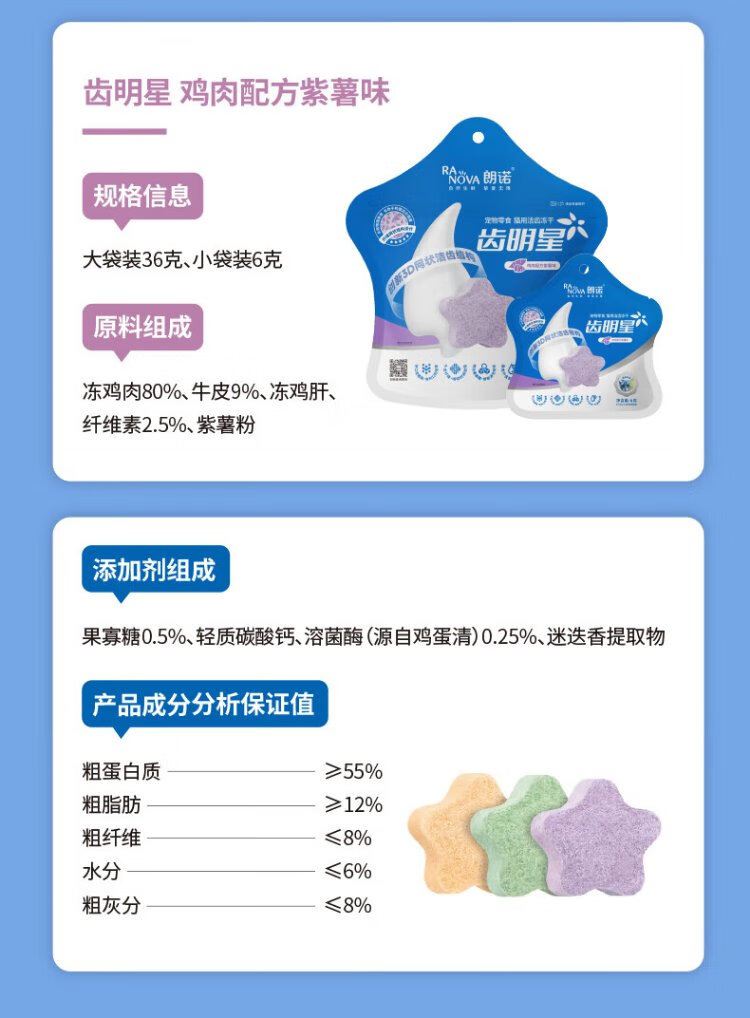 Langnuo cat teeth cleaning snacks and freeze-dried pet foods to make kitten teeth cleaning chicken flavors and freeze-dried 6g of teeth cleaning (chicken + carrots)