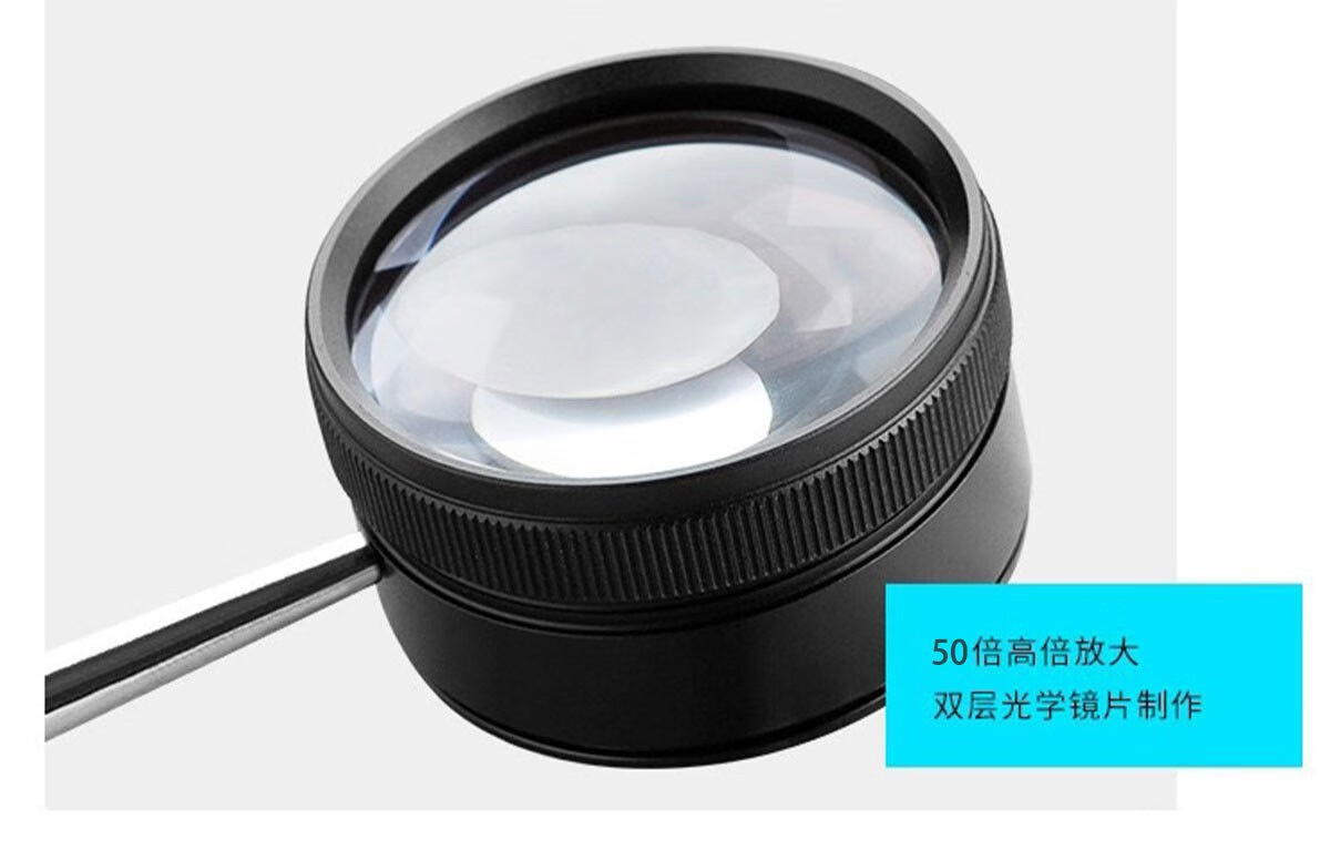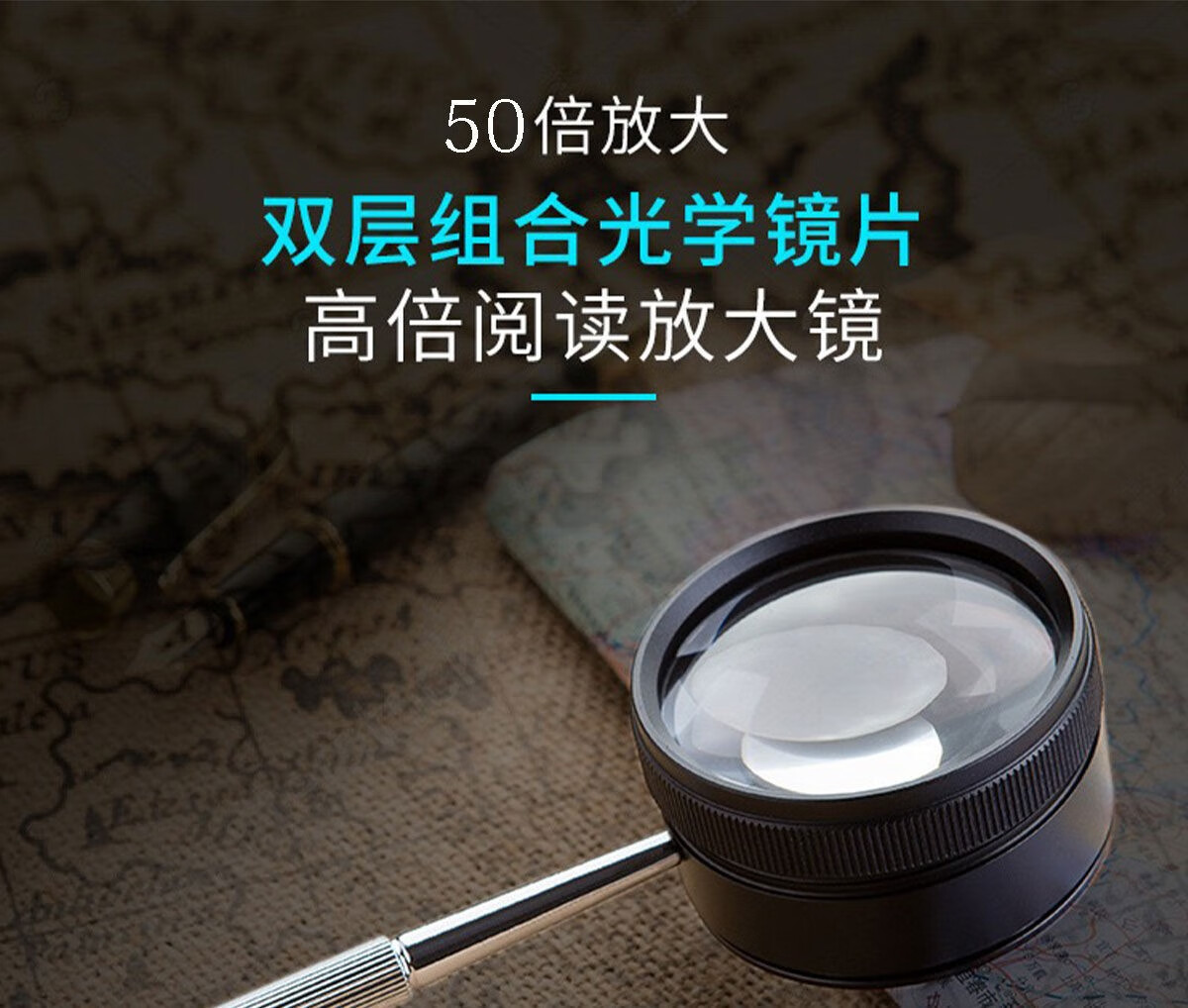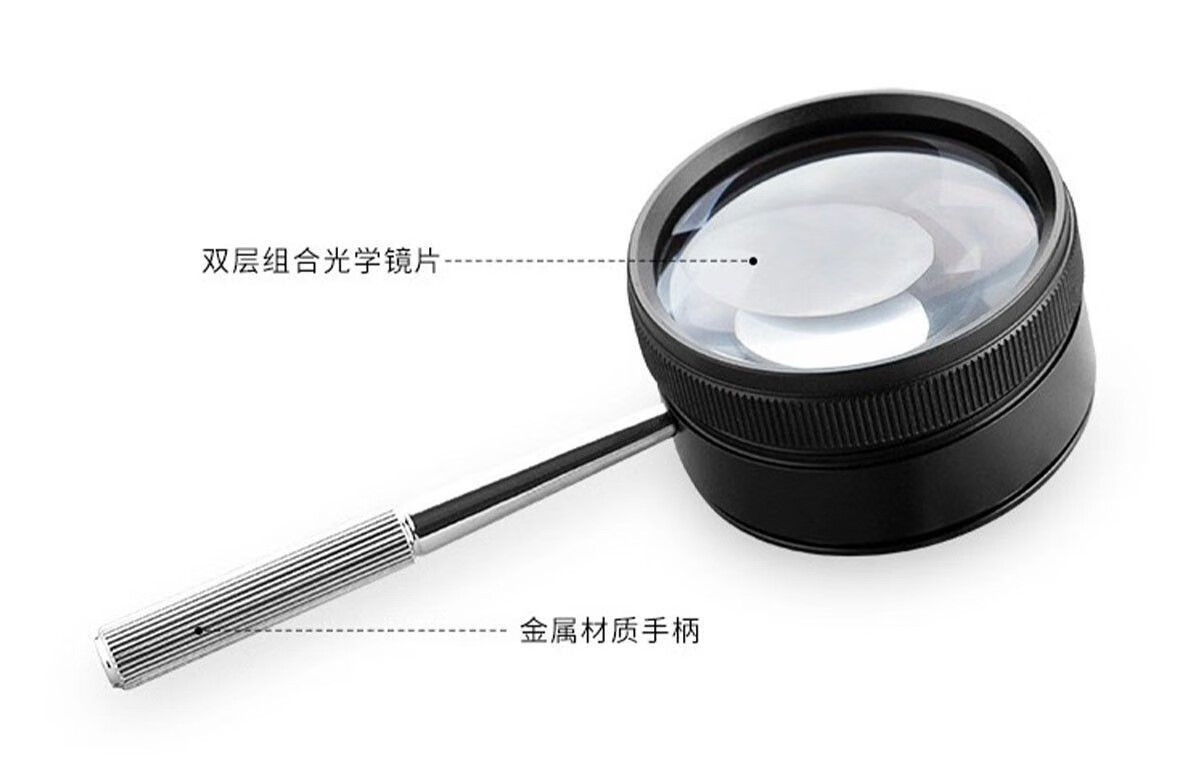 I think I dream magnifying glass high-power 50x full metal 100 double-layer optical glass lens handheld reading identification reading newspaper 50x [handheld model]-black + dustproof cloth + bag