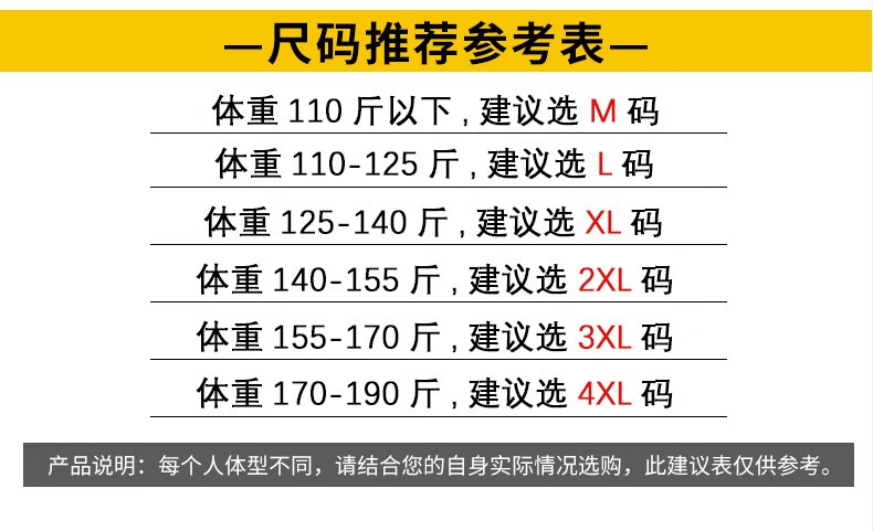 China (cm) 165 / 88-90 170 / 96-98 175 / 108-110 180 / 118-122 185 / 126-130