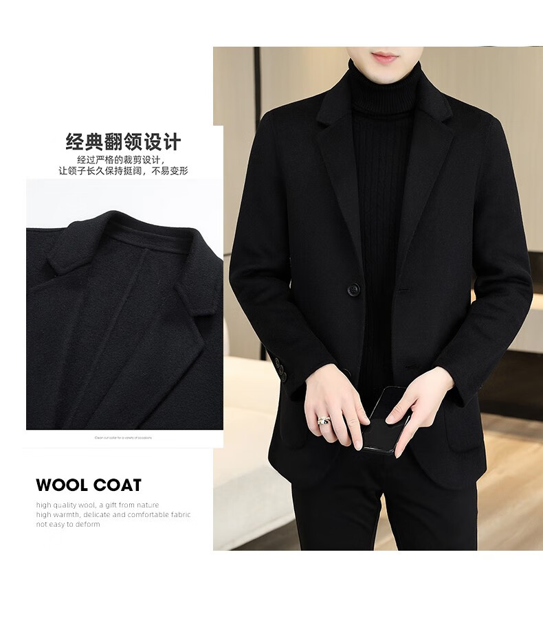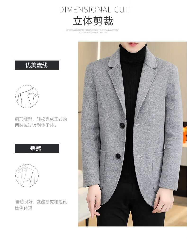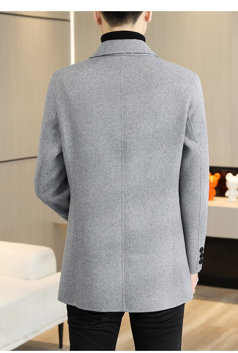 Romon manteau en laine double face pour hommes automne et hiver chaud épaissi costume en pure laine manteau en laine coupe-vent mi-long pour hommes 9923 gris 100% laine M 95110Jin Jin est égal à 0,5 kg