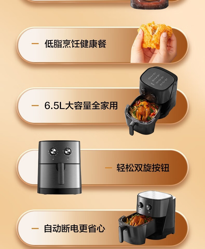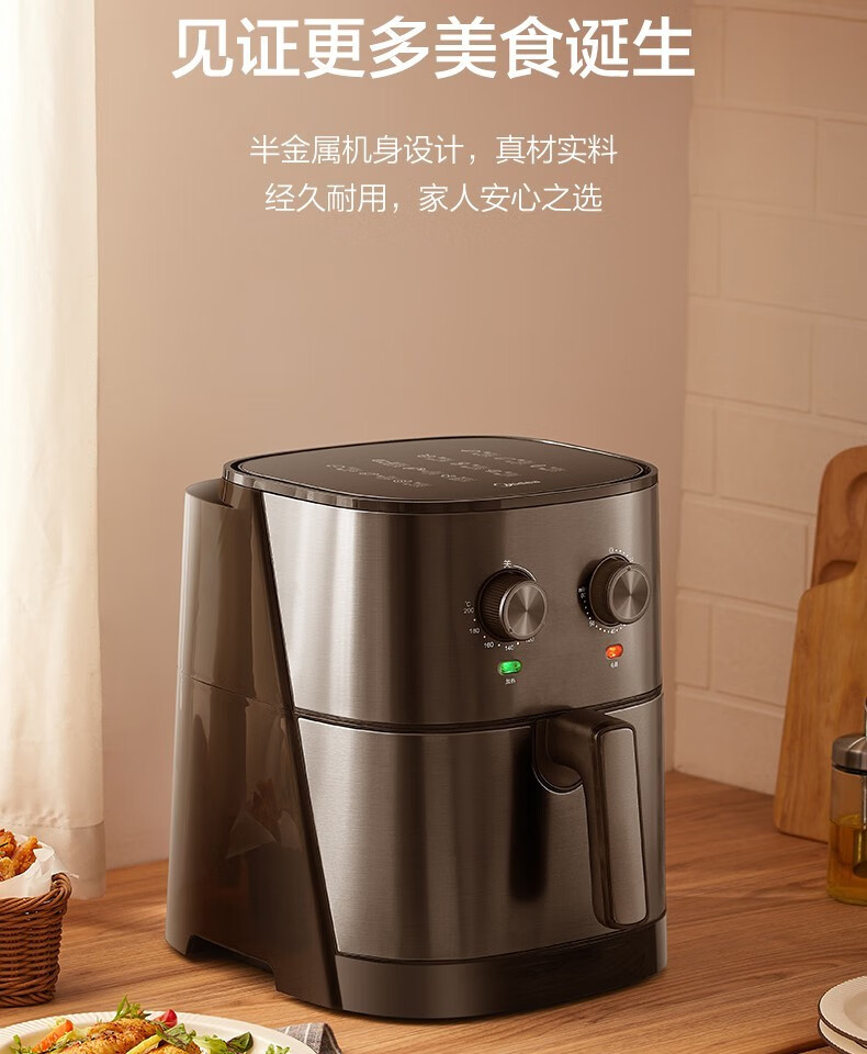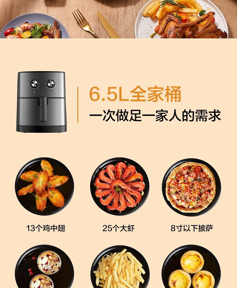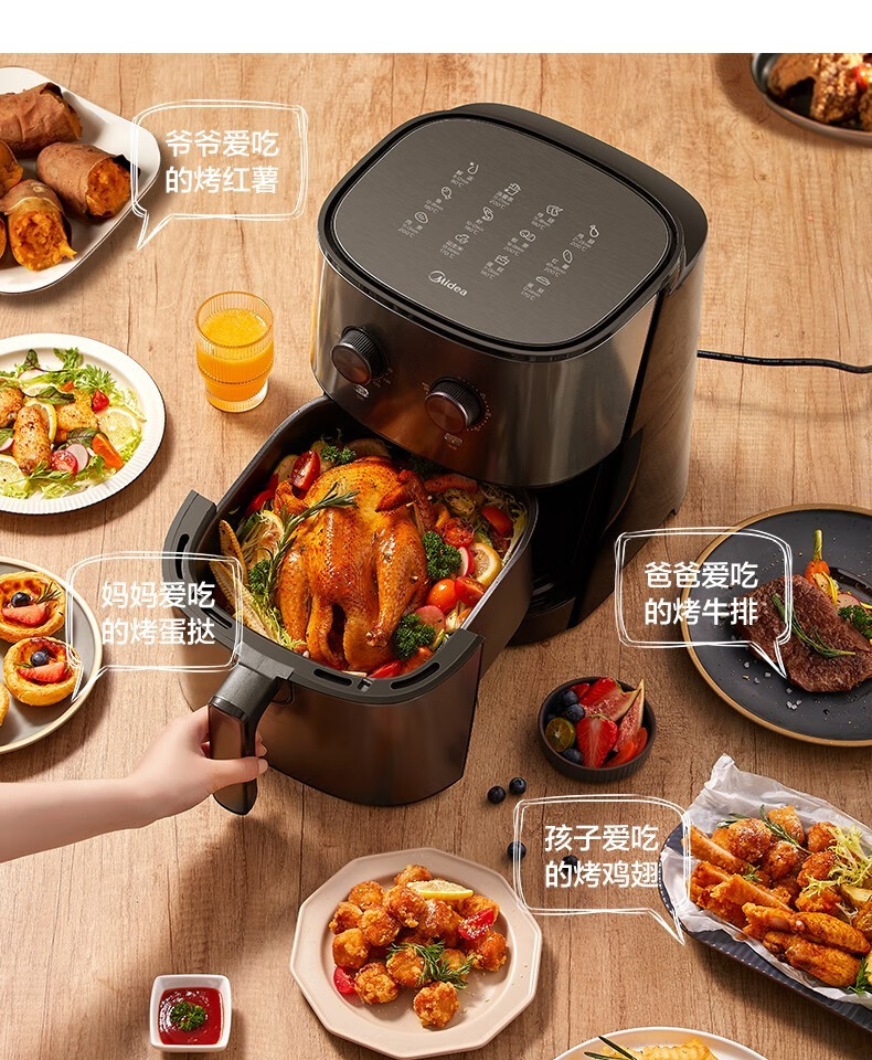 Midea air fryer household multifunctional electric fryer 6.5L large capacity air oven no oil less oil fryer French fries machine timer temperature control double knob roasted sweet potato chicken wings non-stick MF-EKZ6503