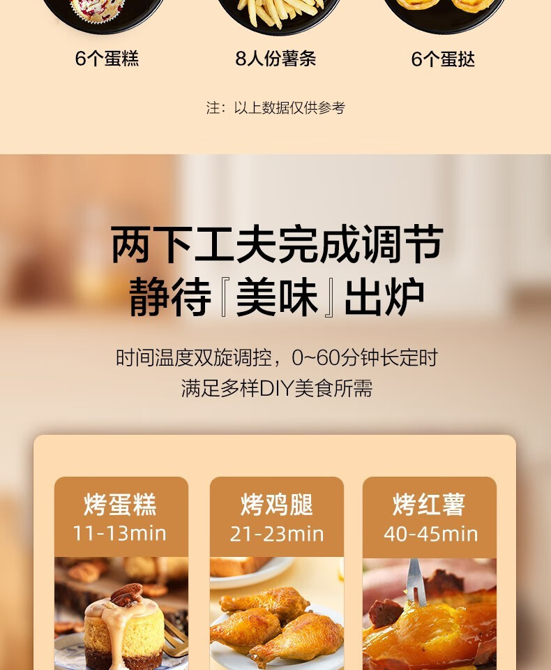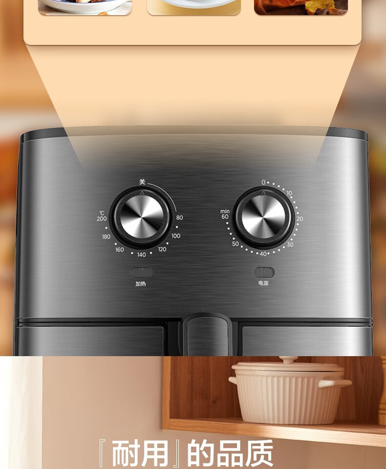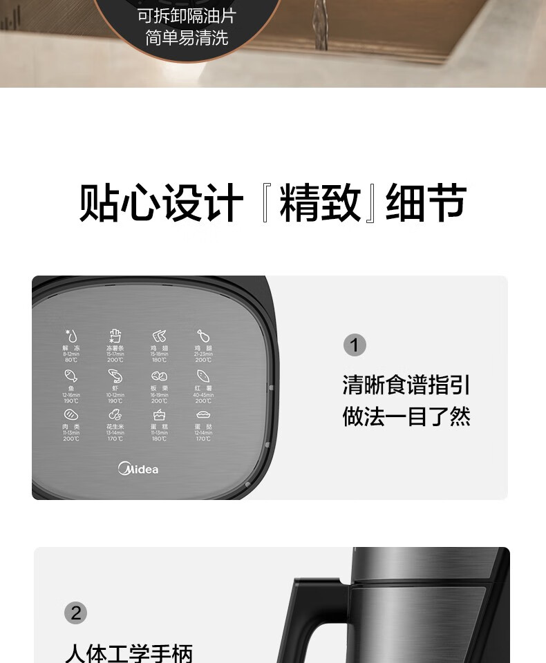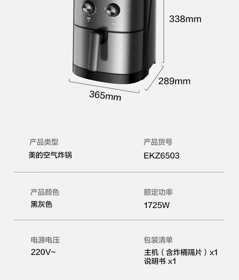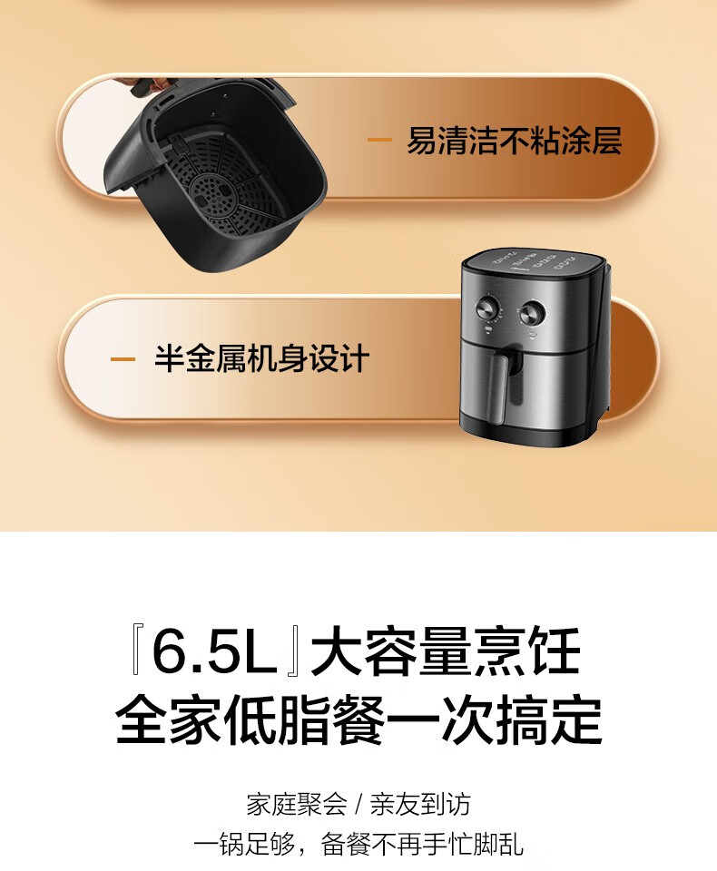 Midea air fryer household multifunctional electric fryer 6.5L large capacity air oven no oil less oil fryer French fries machine timer temperature control double knob roasted sweet potato chicken wings non-stick MF-EKZ6503