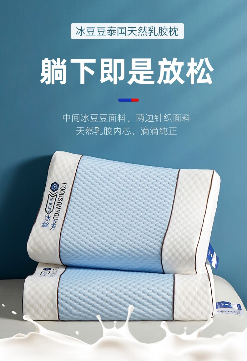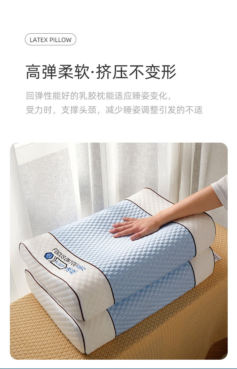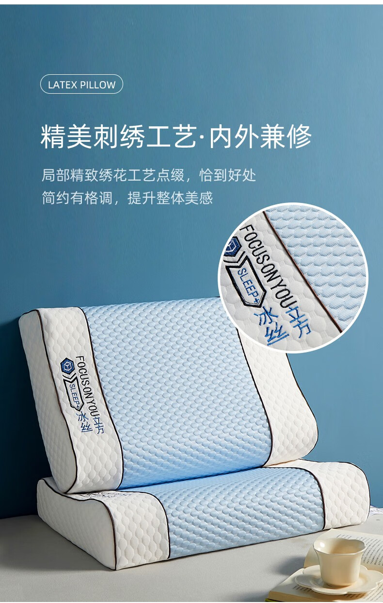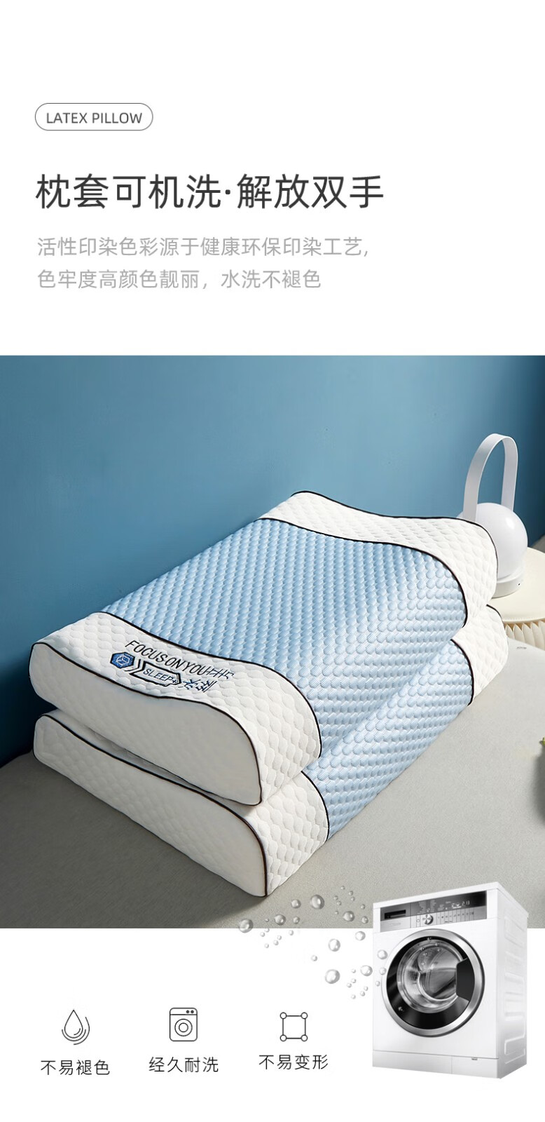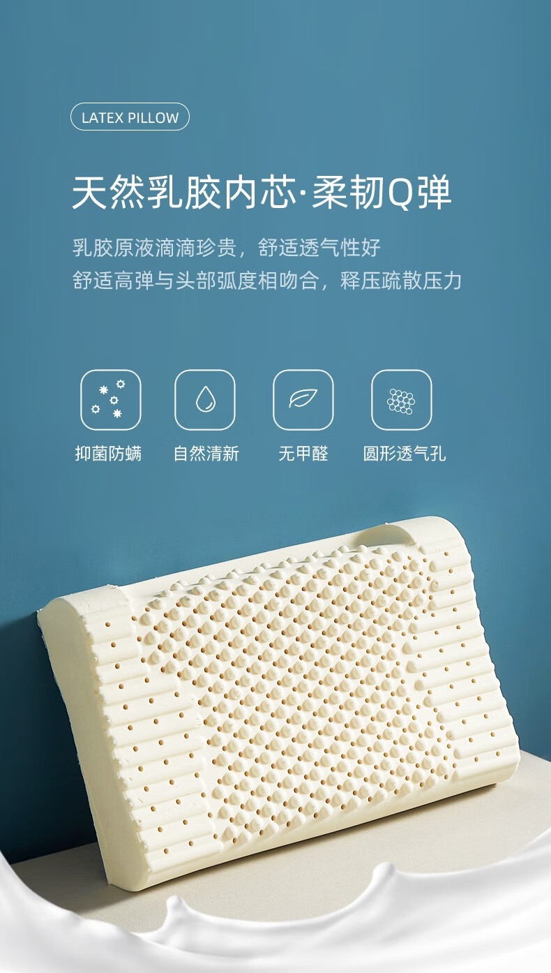 Nanjiren (Nanjiren) Thai Latex Pillow Pair of Home Natural Rubber Pillow Pillows Soothing Cervical Sleep Silicone Low Pillow Core Blue-Wave Low Pillow [2 Pack + Inner Jacket]