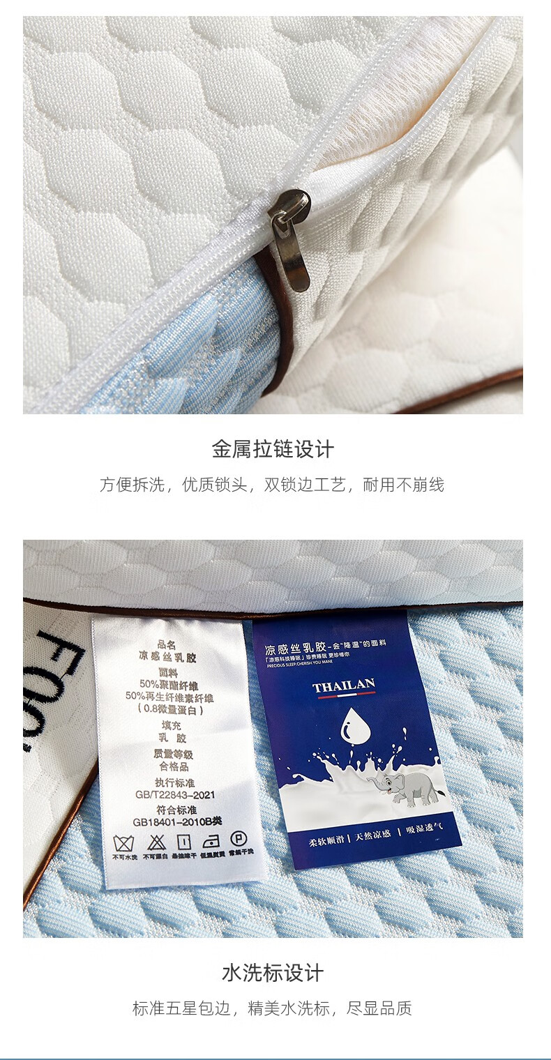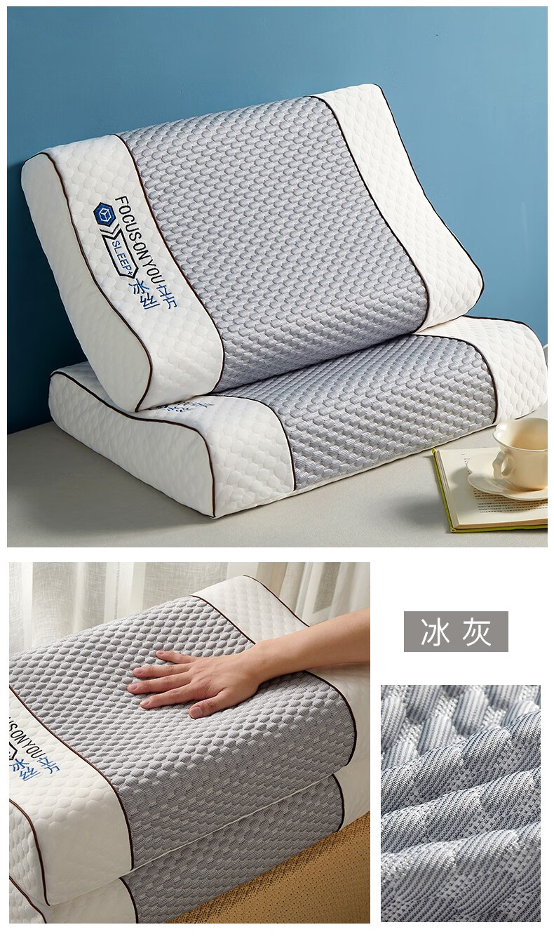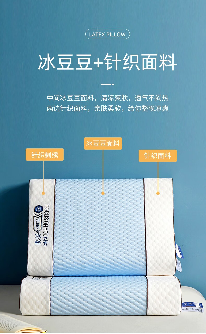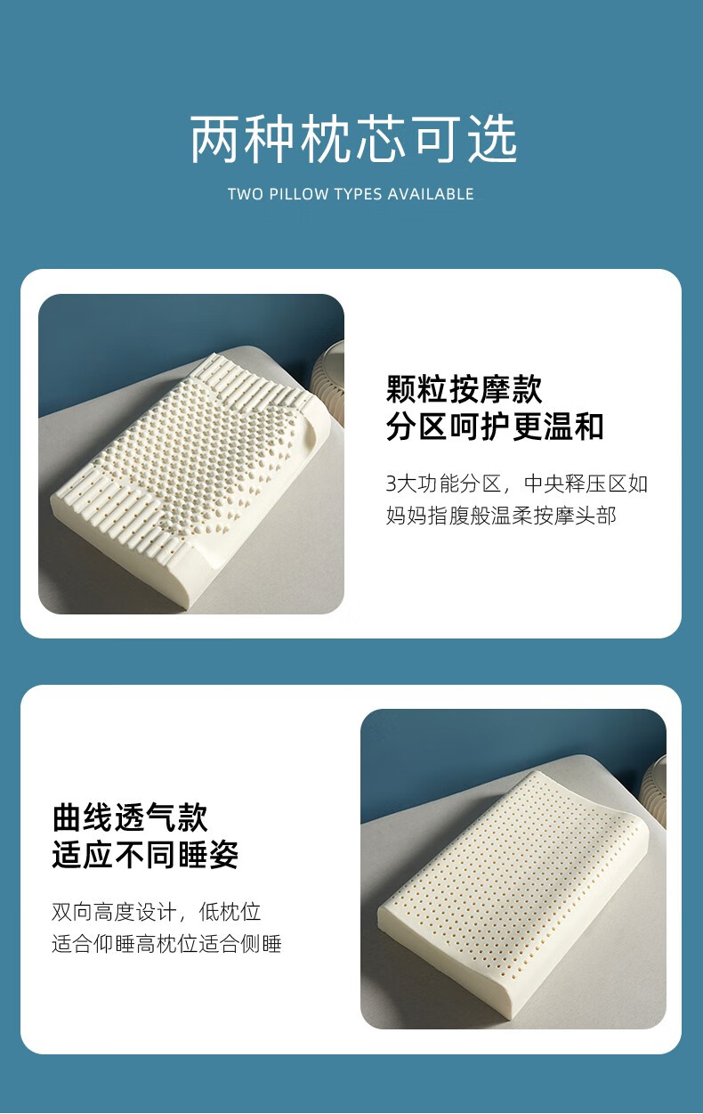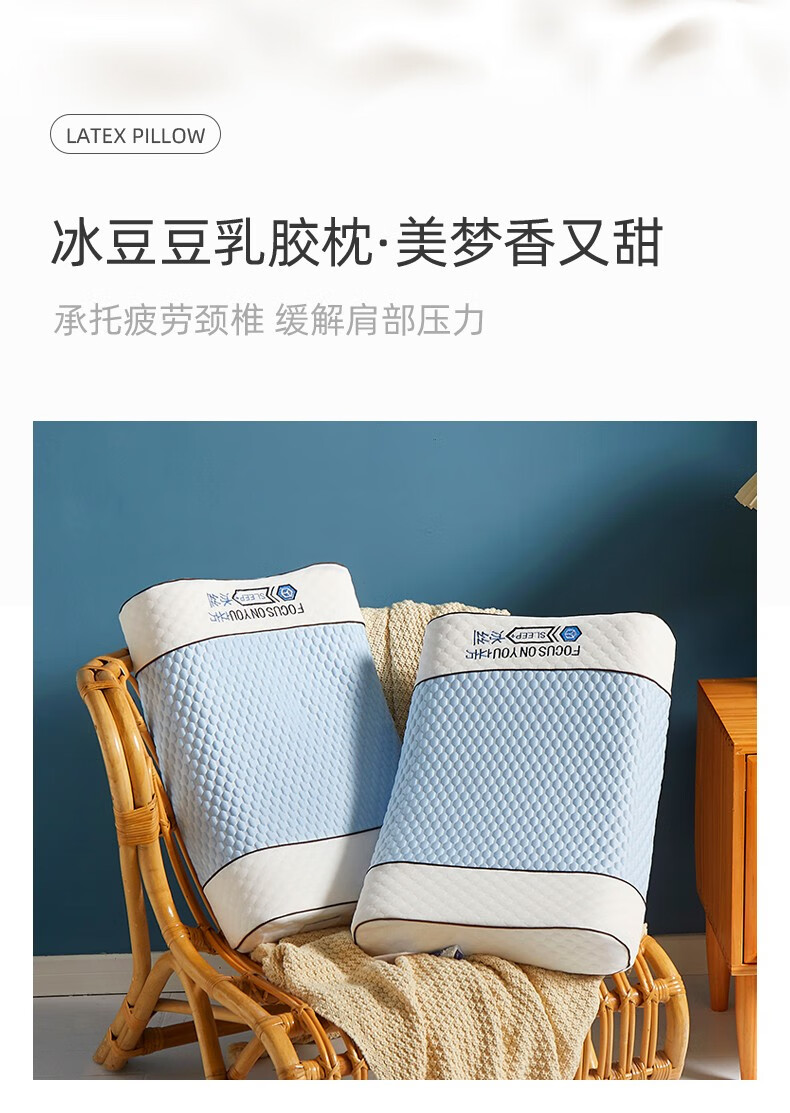 Nanjiren (Nanjiren) Thai Latex Pillow Pair of Home Natural Rubber Pillow Pillows Soothing Cervical Sleep Silicone Low Pillow Core Blue-Wave Low Pillow [2 Pack + Inner Jacket]