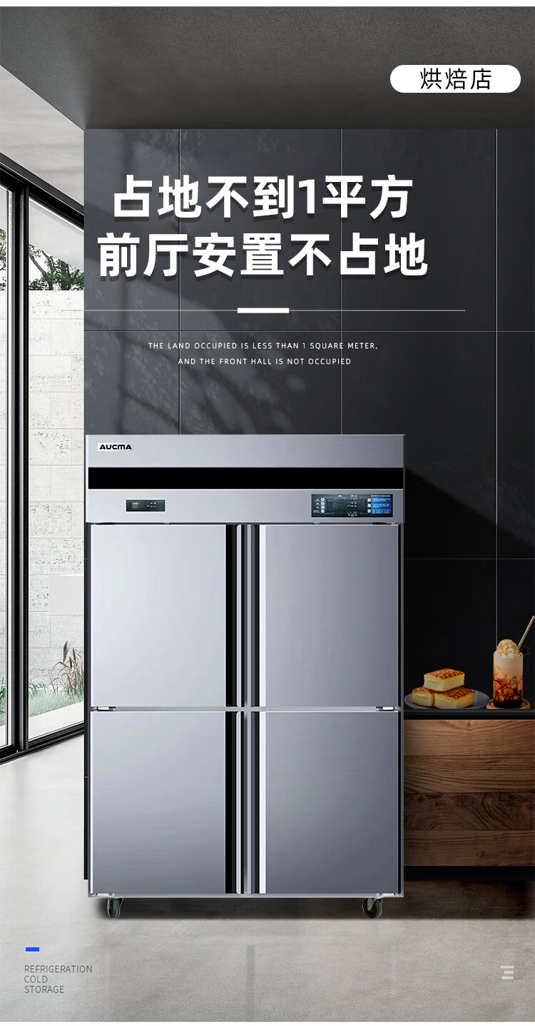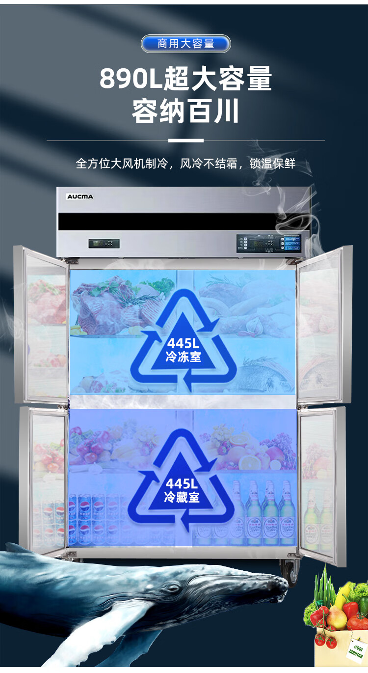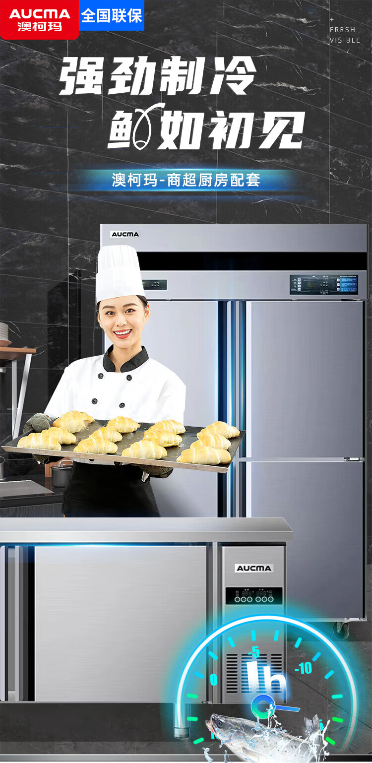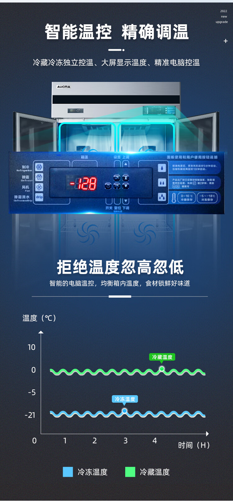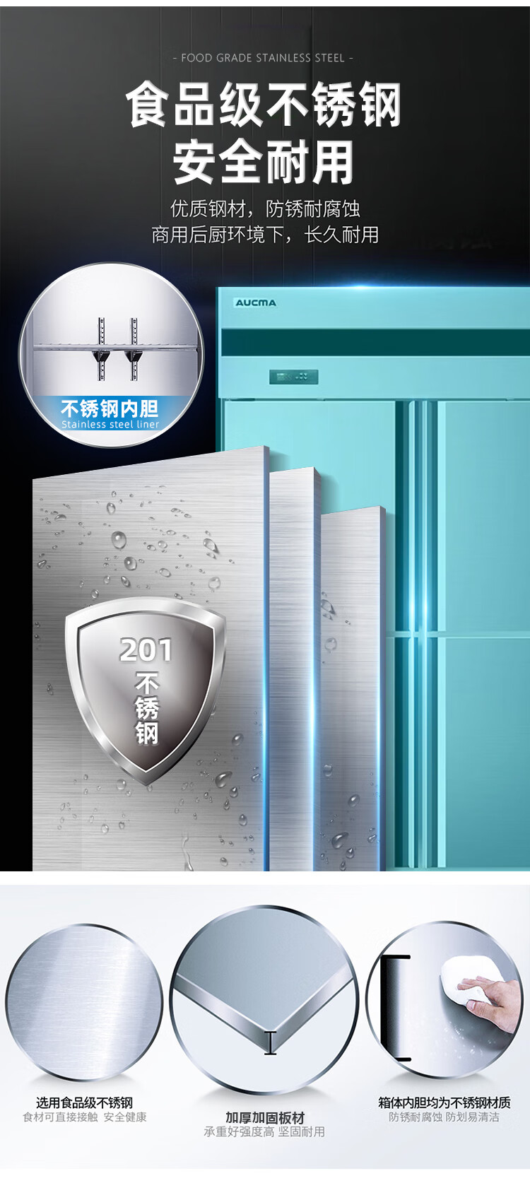澳柯玛【风冷无霜】商用四门冰柜立式大容量双温速冻冷藏柜酒店饭店厨房不锈钢高身雪柜保鲜柜 1390升 六门冷冻【风冷无霜】