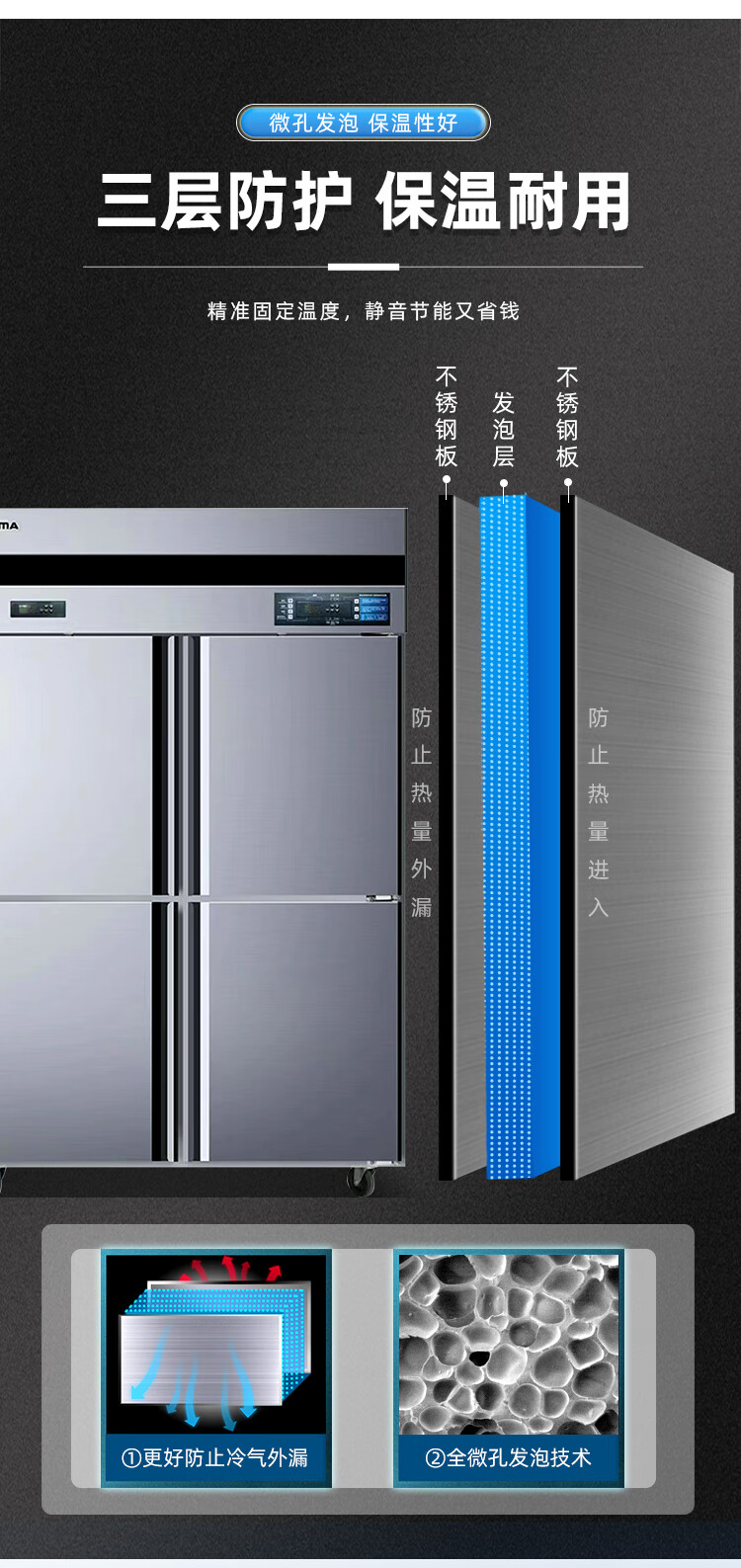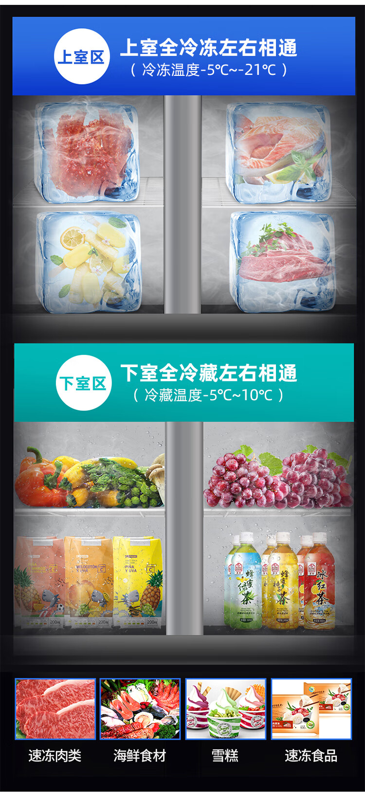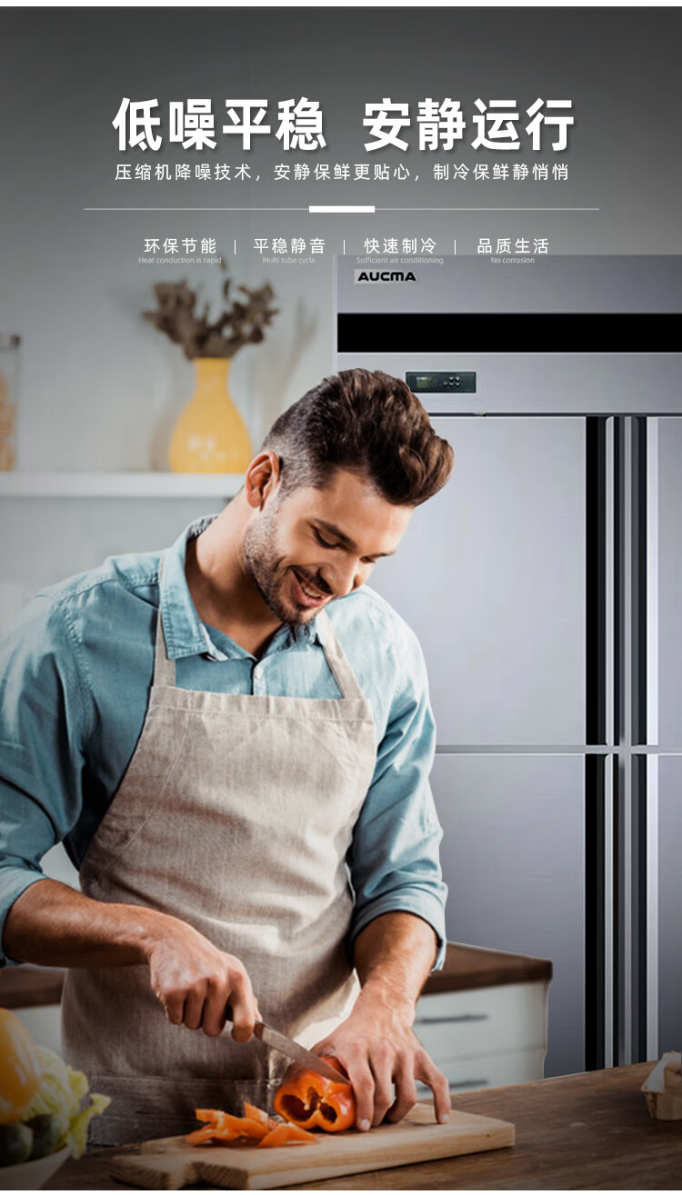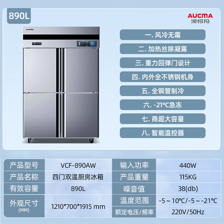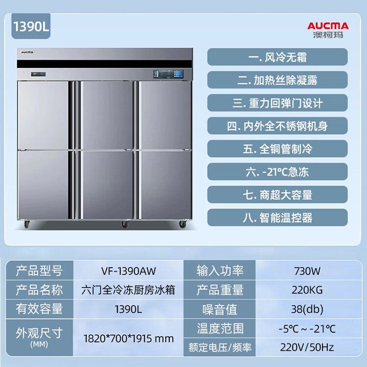 澳柯玛【风冷无霜】商用四门冰柜立式大容量双温速冻冷藏柜酒店饭店厨房不锈钢高身雪柜保鲜柜 1390升 六门冷冻【风冷无霜】