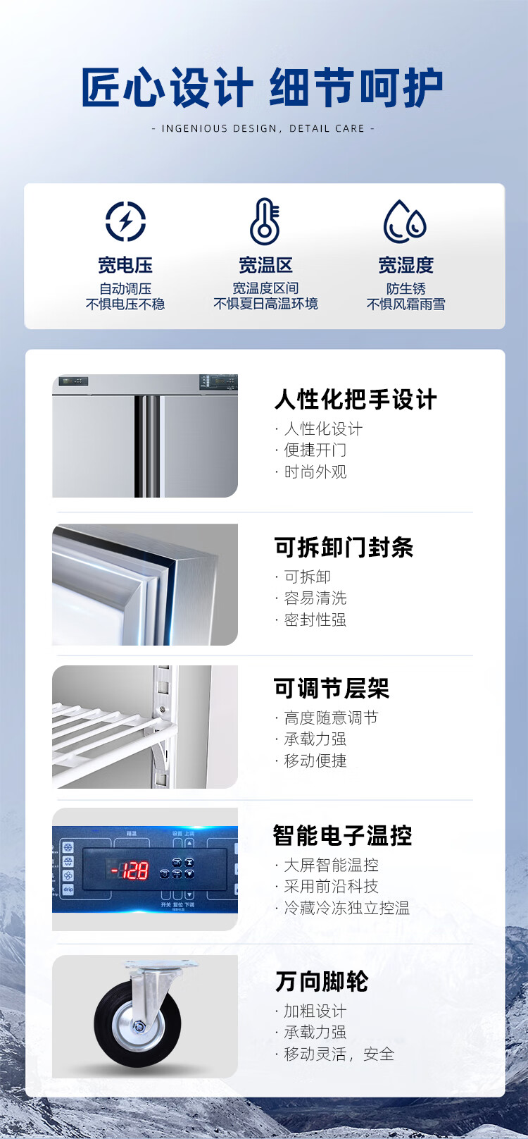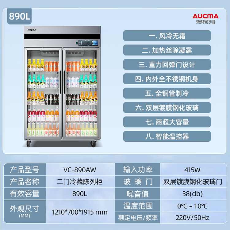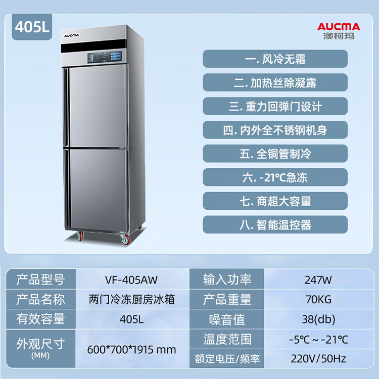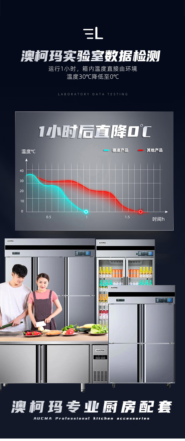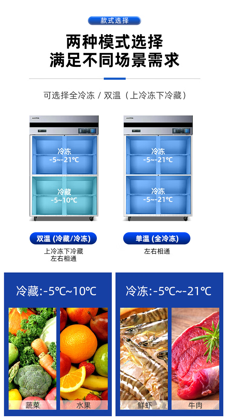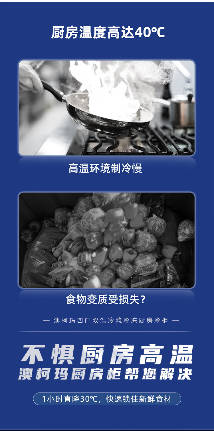 澳柯玛【风冷无霜】商用四门冰柜立式大容量双温速冻冷藏柜酒店饭店厨房不锈钢高身雪柜保鲜柜 1390升 六门冷冻【风冷无霜】