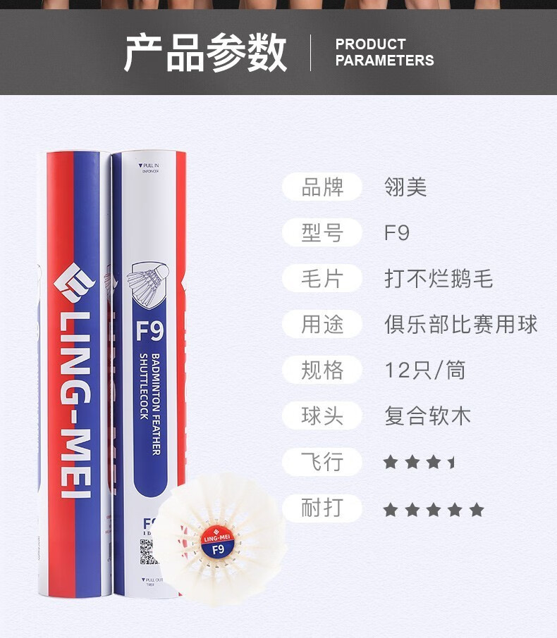 LINGMEI LINGMEI badminton F9 high-end goose feather ball F1 F2 F3 F4 F5 F1 speed 77