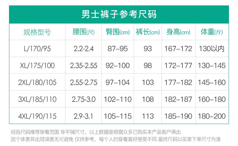China (cm) 165 / 88-90 170 / 96-98 175 / 108-110 180 / 118-122 185 / 126-130