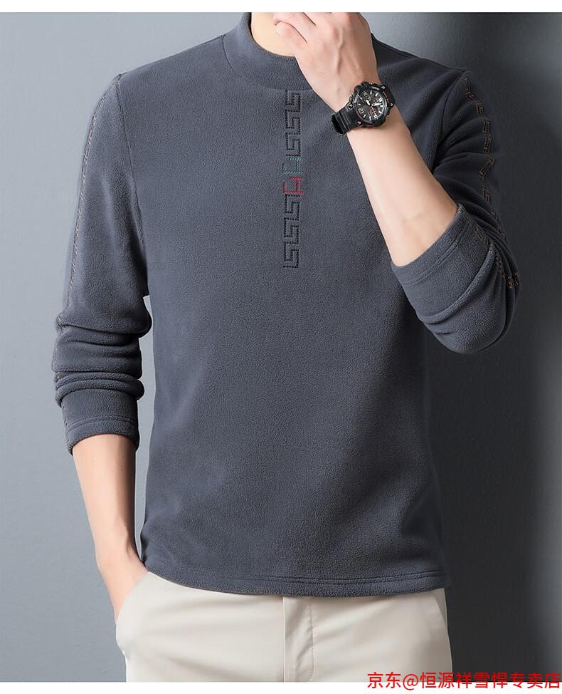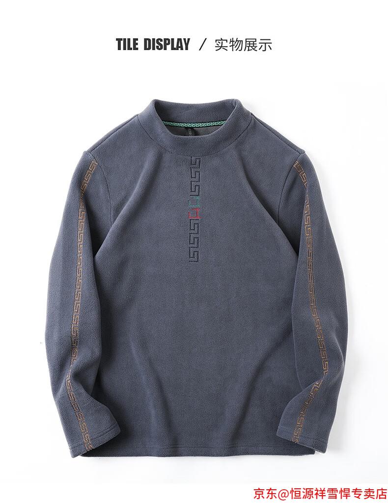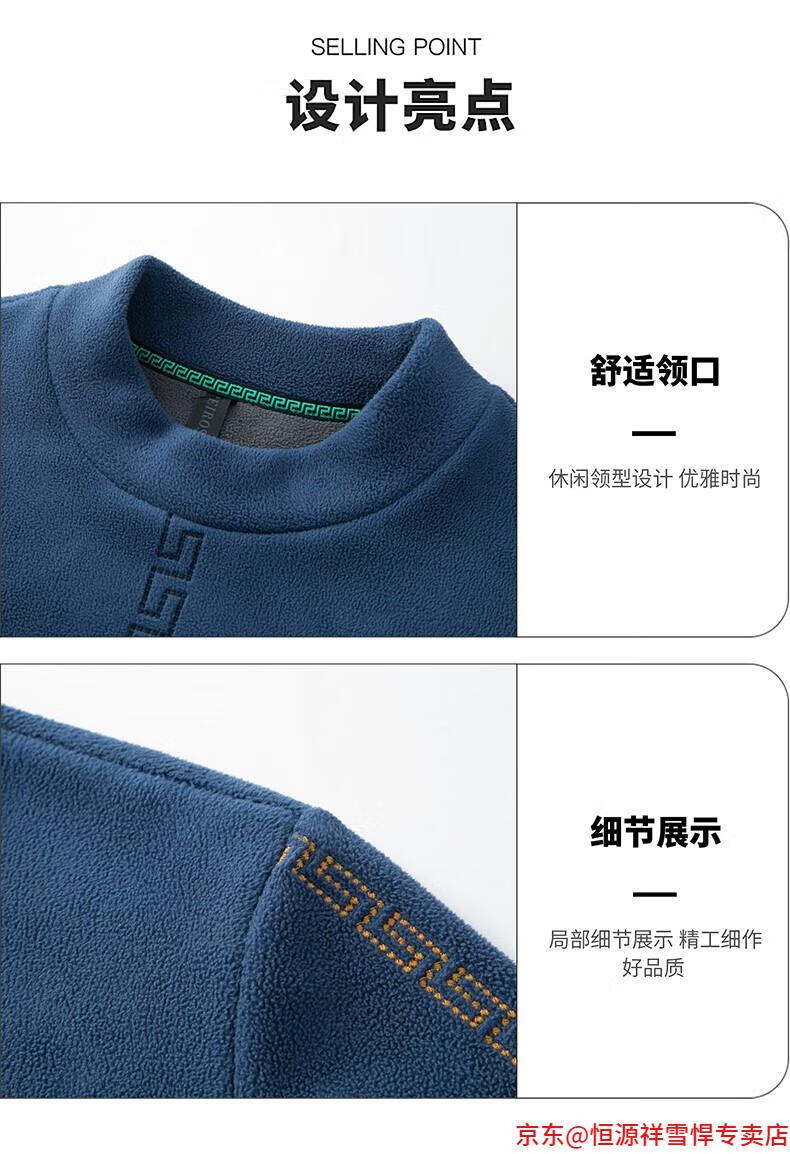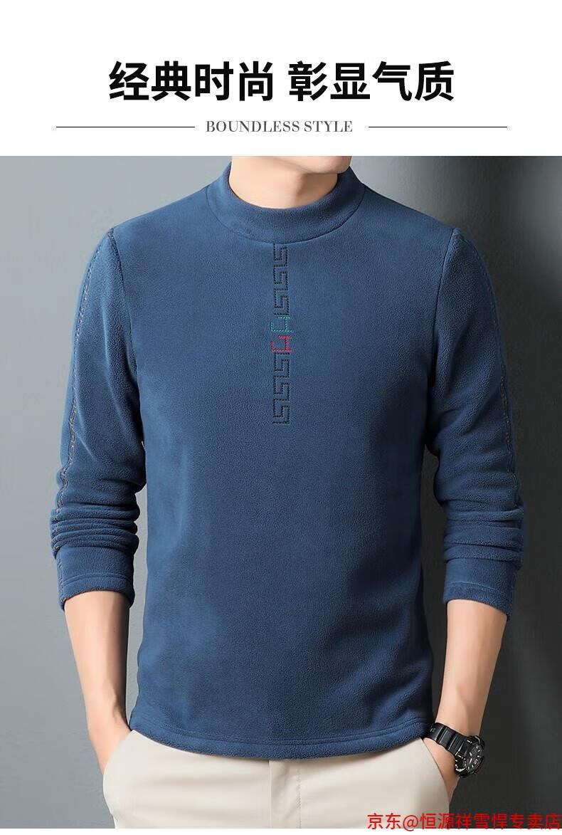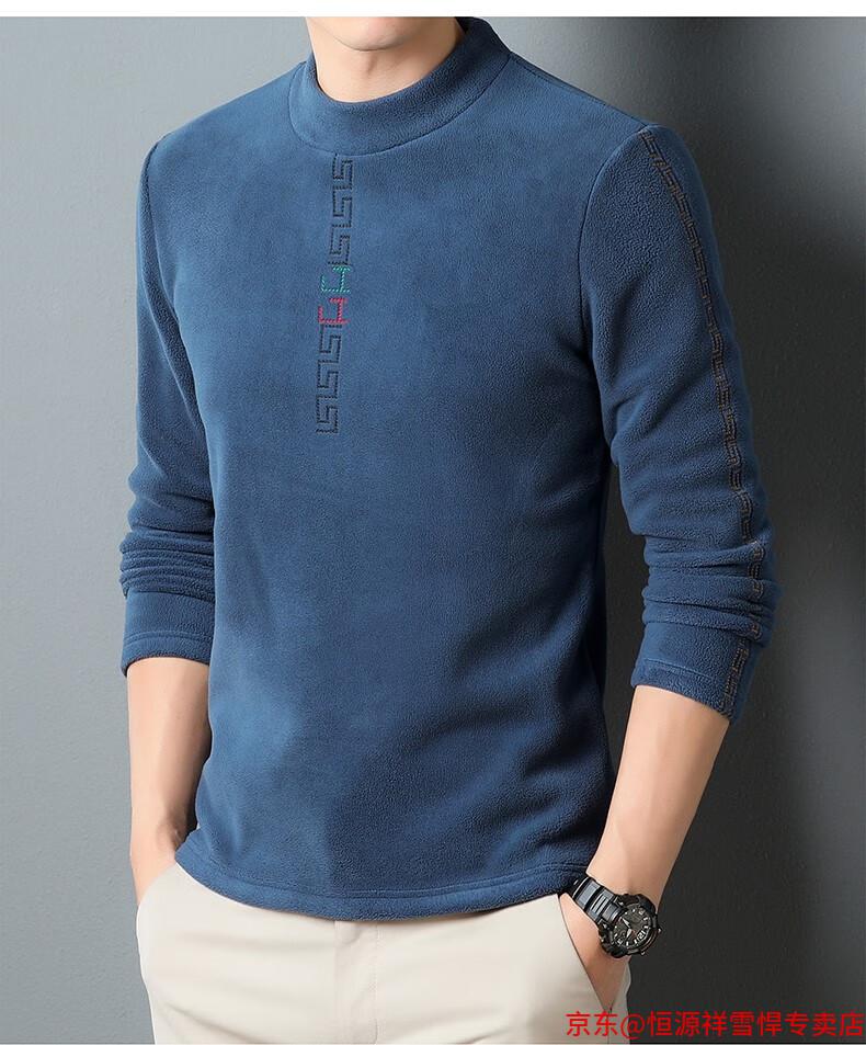恒源祥秋冬季长袖t恤男卫衣加绒加厚中年休闲半高领德绒打底衫保暖上衣 7030蓝色 L