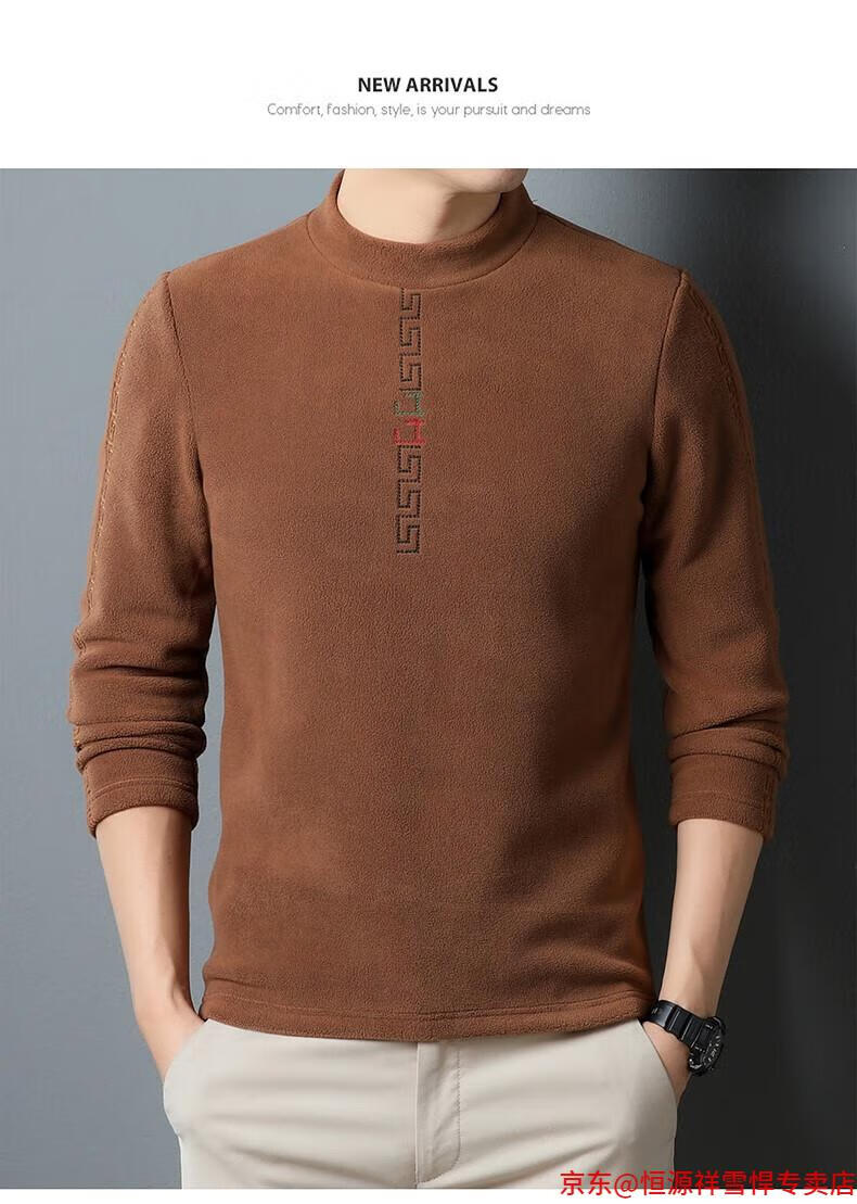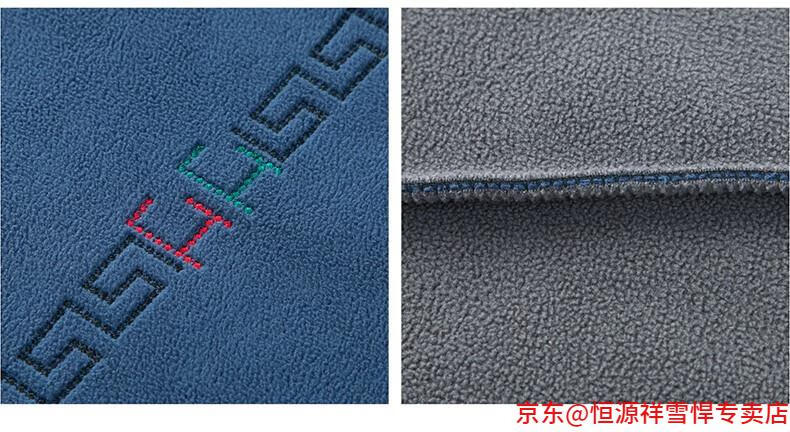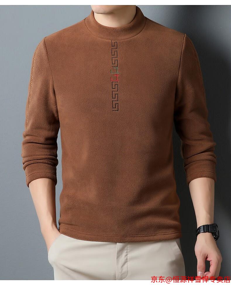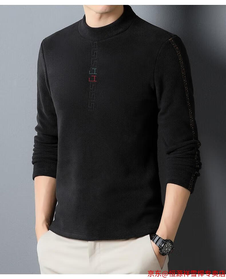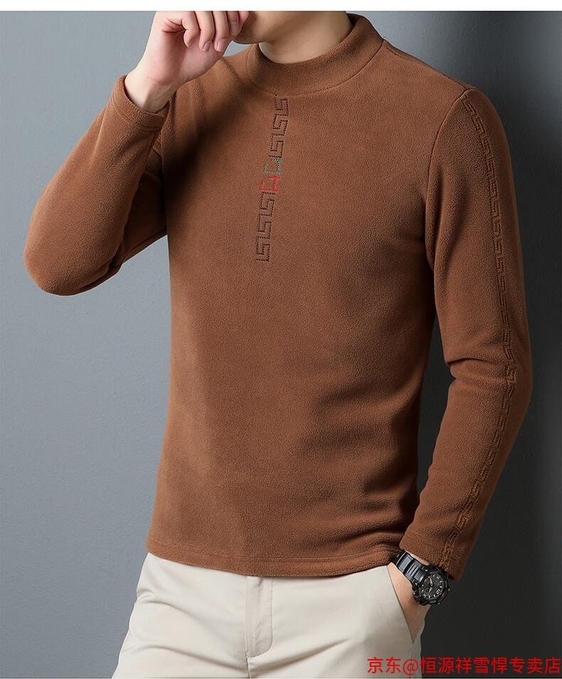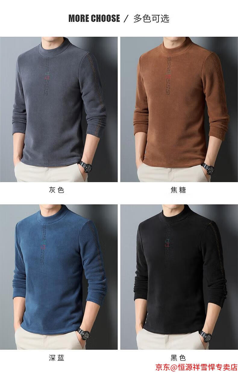 恒源祥秋冬季长袖t恤男卫衣加绒加厚中年休闲半高领德绒打底衫保暖上衣 7030蓝色 L