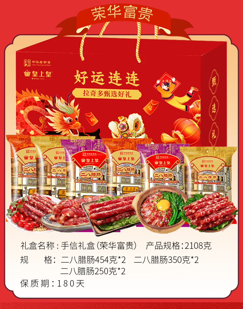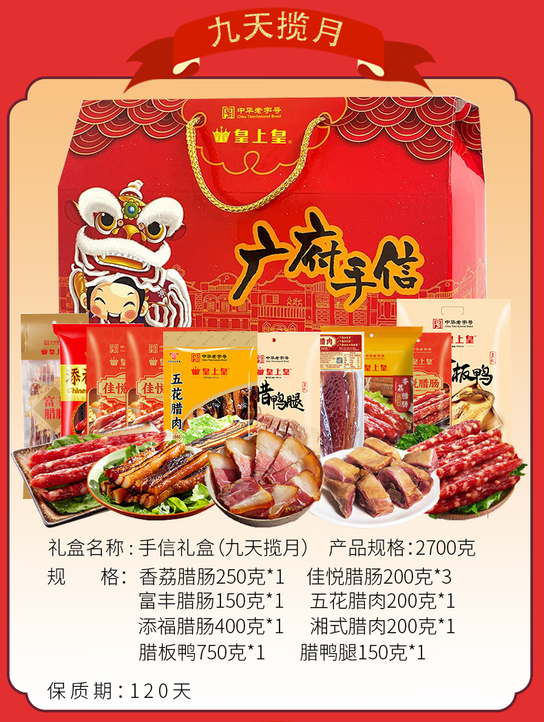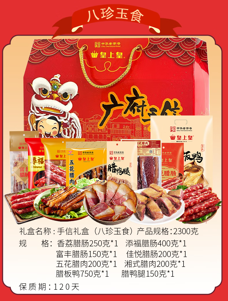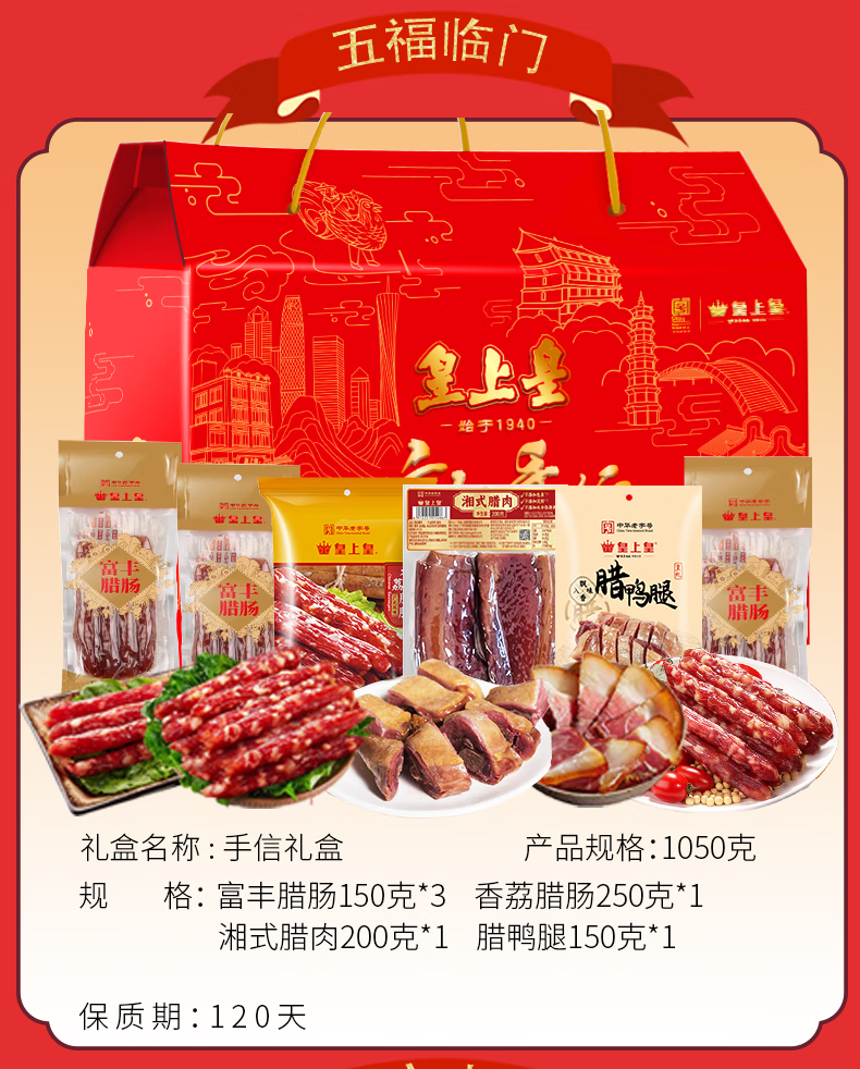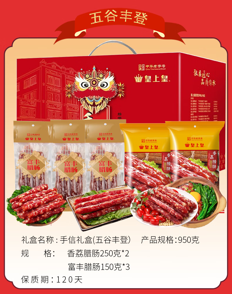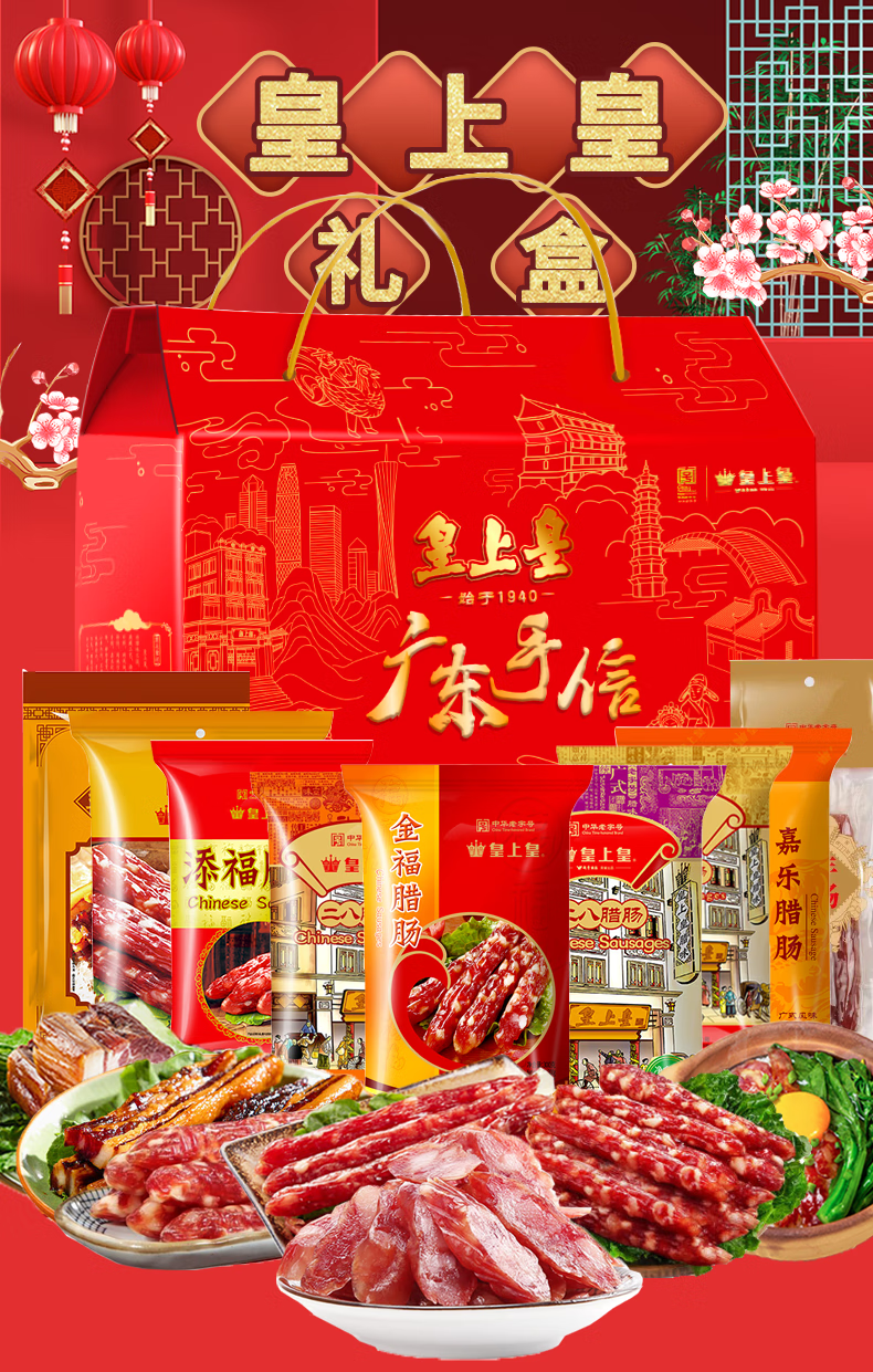 Kaiserwurst Neujahrsgeschenkbox Guangdong Guangzhou Spezialitäten Souvenirs Festival High-End-Geschenkbox Kantonesische Delikatessen Wurstwaren 1050g Fünf Segens-Geschenkbox