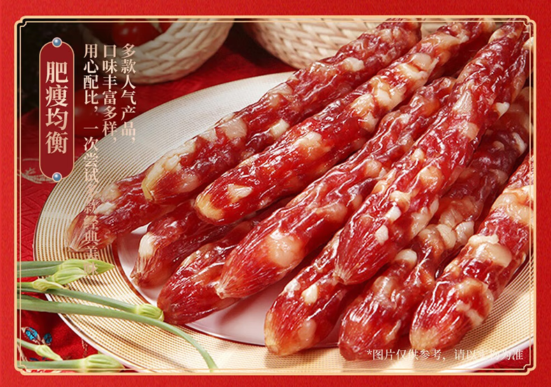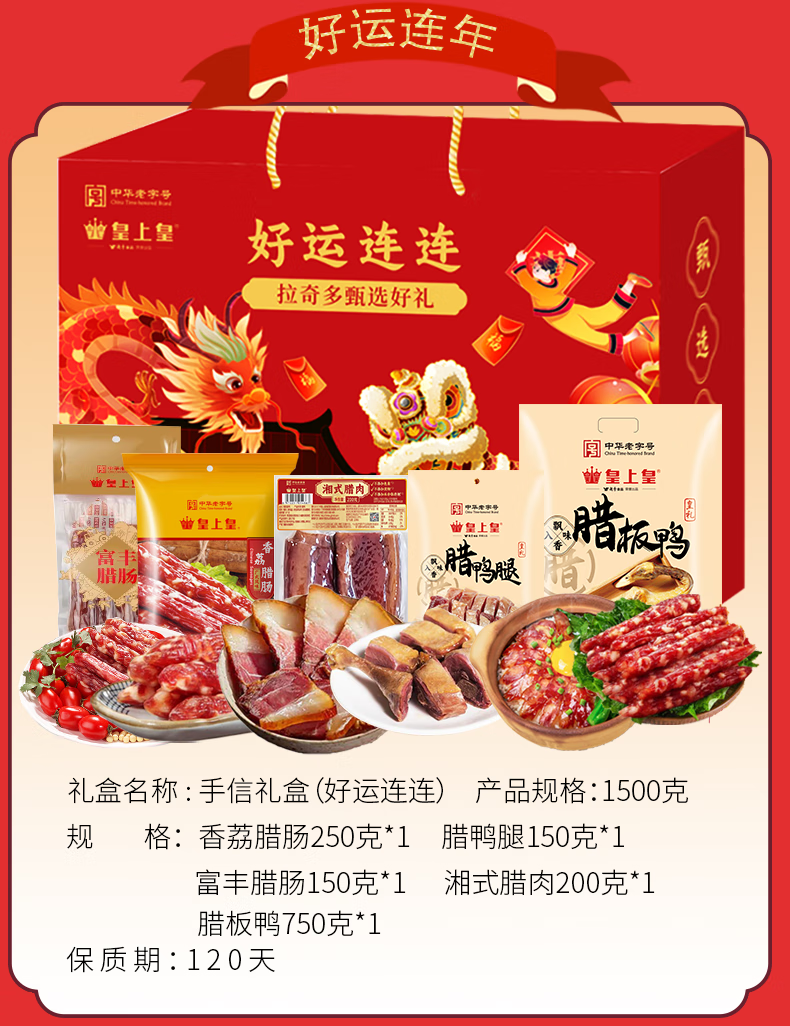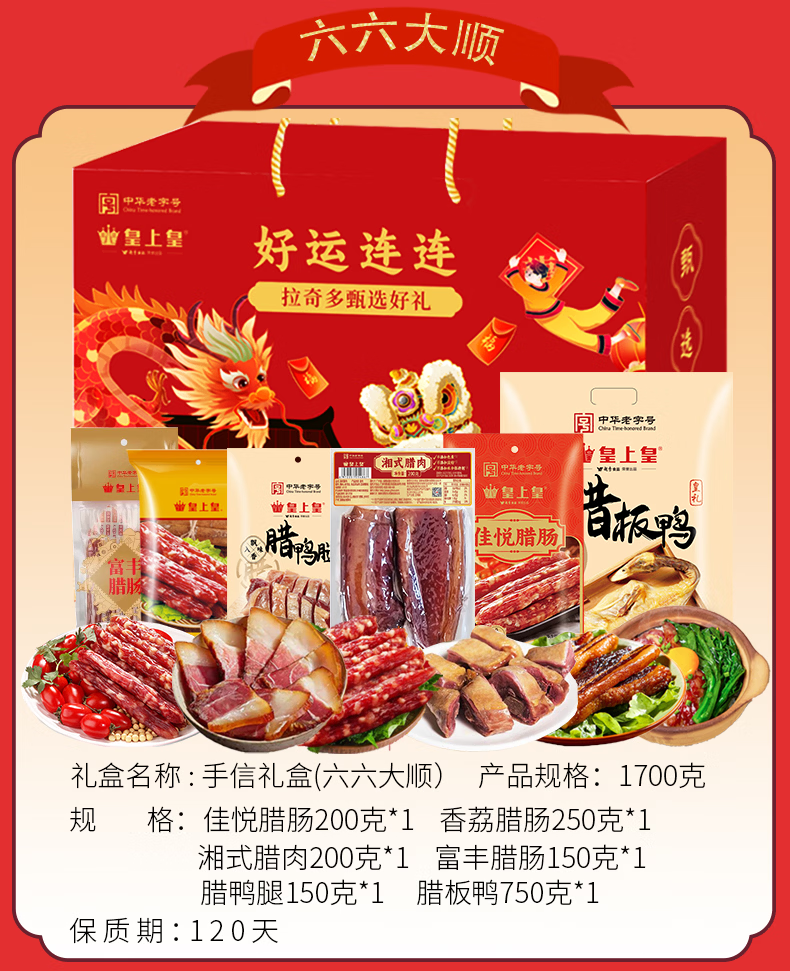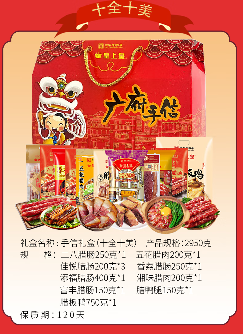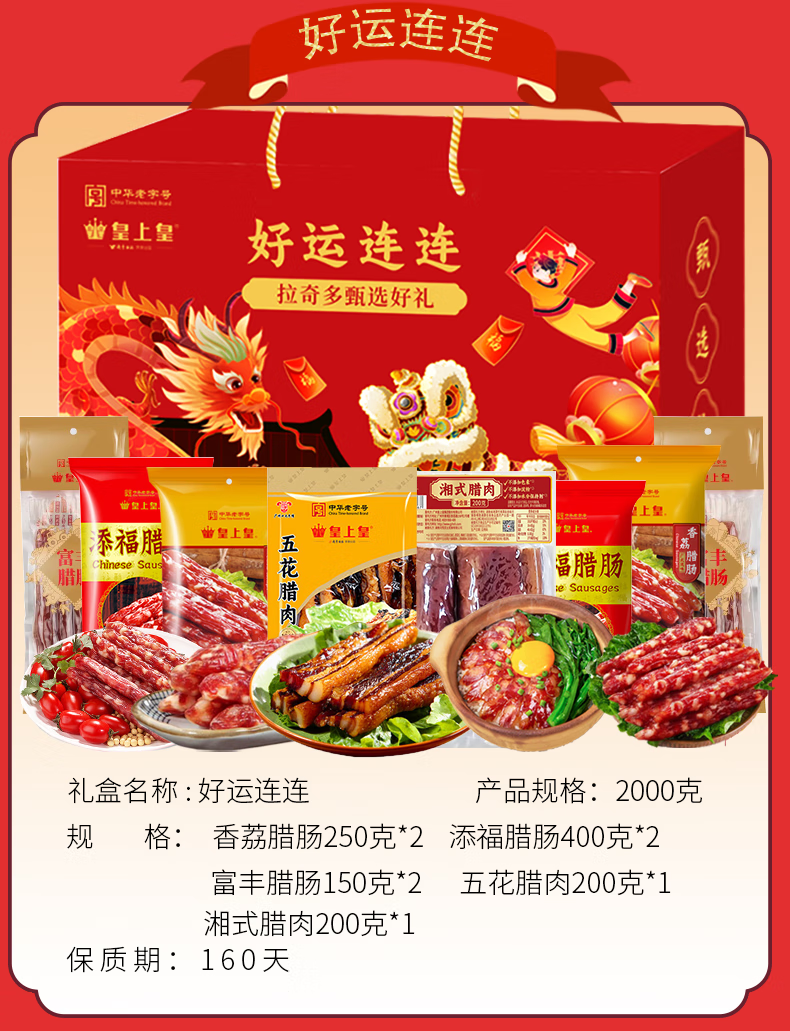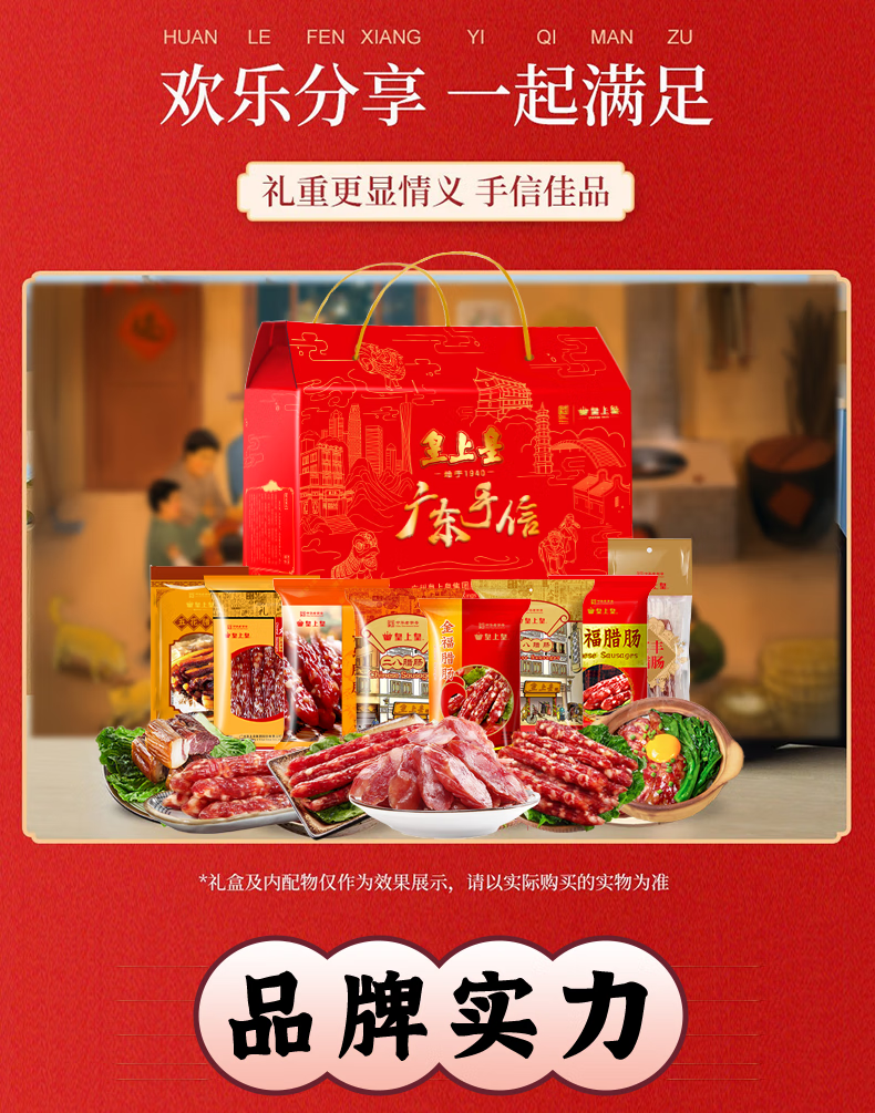 Kaiserwurst Neujahrsgeschenkbox Guangdong Guangzhou Spezialitäten Souvenirs Festival High-End-Geschenkbox Kantonesische Delikatessen Wurstwaren 1050g Fünf Segens-Geschenkbox