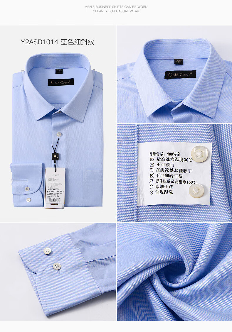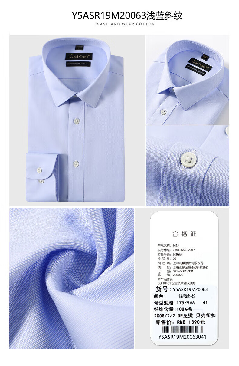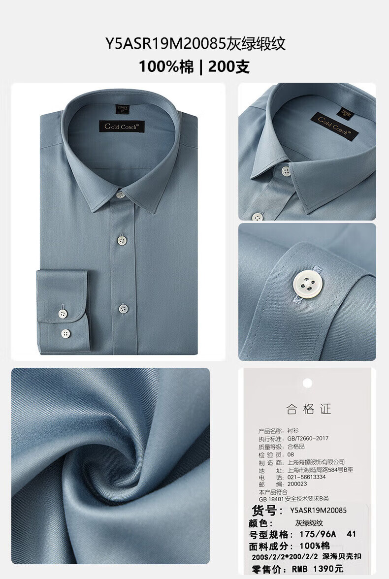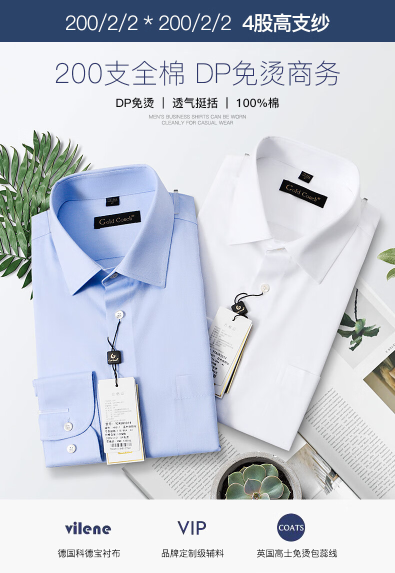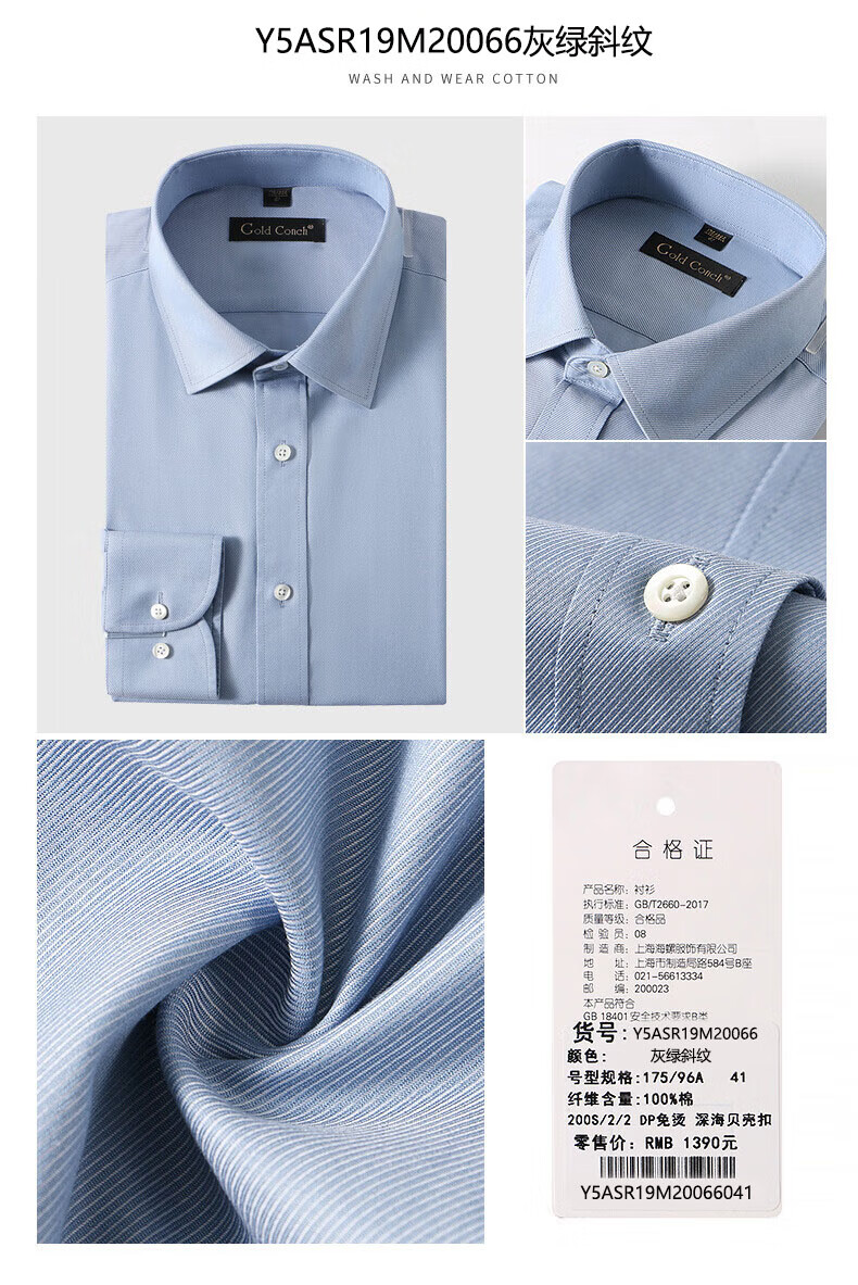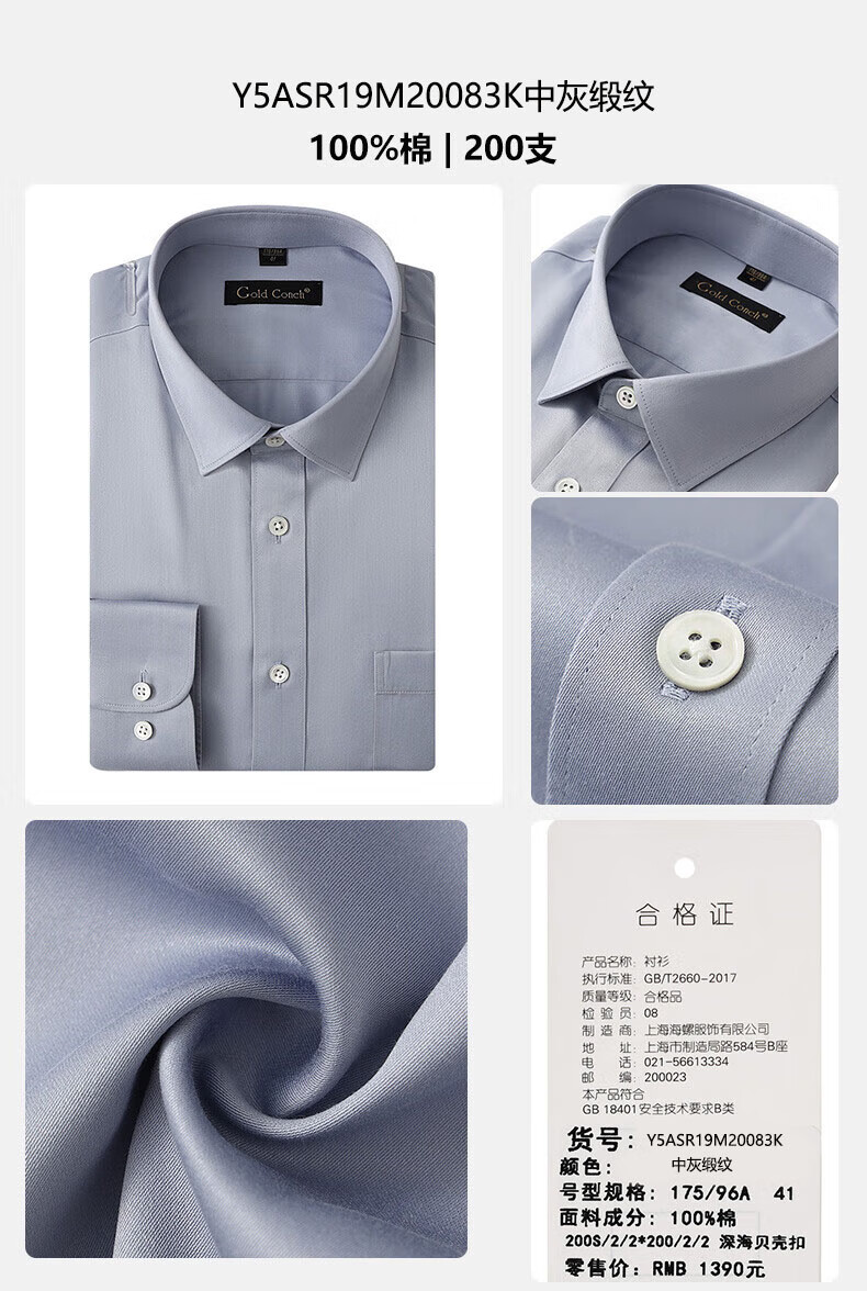 Gold conch gold conch shirt men's long-sleeved shirt 200 count high-count pure cotton DP non-iron anti-wrinkle business casual formal wear high-end 19M20083K ​​medium gray satin 200 count with bag 40